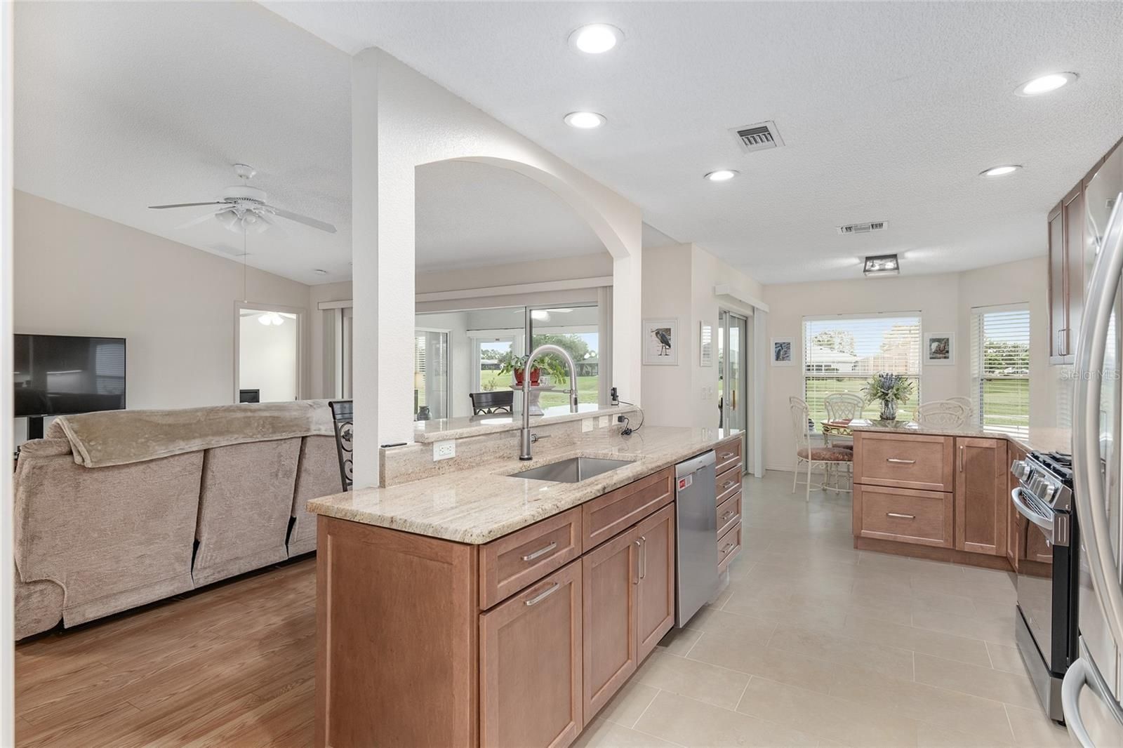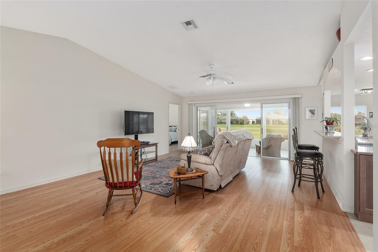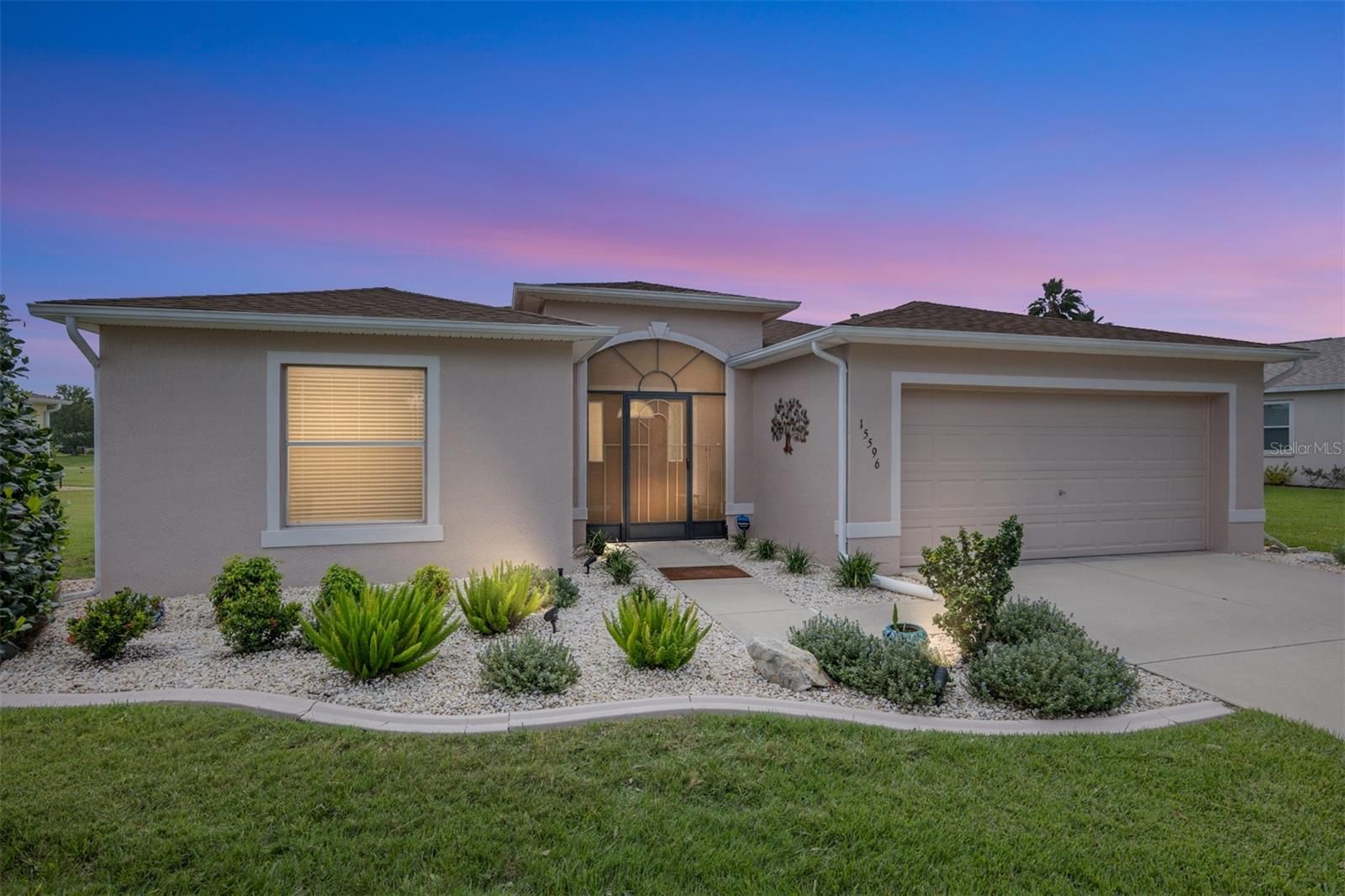 Beautiful 3/2/2 home on the golf course in the popular Summerglen 55+ gated golf course community with FREE GOLF FOR A YEAR! BETTER THAN NEW with so many upgrades! New roof, HVAC, water heater, KITCHEN REMODEL, appliances, PRIMARY SHOWER, irrigation, landscaping, screened front porch, garage door opener, windows, and more! With the GOLF COURSE in front and back of the home, you have great views from every window! Immaculate ~ move-in ready! NO CARPET. OPEN FLOOR PLAN. Living room is spacious with vaulted ceilings and has a dining area too! Florida room has new custom shades and new door with great views of the golf course. Gorgeous NEW KITCHEN has an eat-in area, plenty of upgraded cabinets and granite counters, SS appliances including gas range, breakfast bar, and pantry. Split bedrooms. Primary suite has Florida room access, walk-in closet, dual sinks, linen closet, and NEW ceramic tile walk-in shower. Inside laundry includes washer/dryer and extra storage matching the kitchen cabinets. The back patio is a great spot to grill or enjoy the view/sunsets. The HOA includes lawn care, Xumo Spectrum cable/internet with 3 boxes, trash, guarded entrance, and wonderful amenities (golf course, pool and spa, fitness center, tennis courts, dog park, pickleball, softball, sports/recreation fields, and more). Retirement living at its best! Furniture may be purchased separately. FREE GOLF FOR A YEAR (ANNUAL SINGLE MEMBERSHIP)!