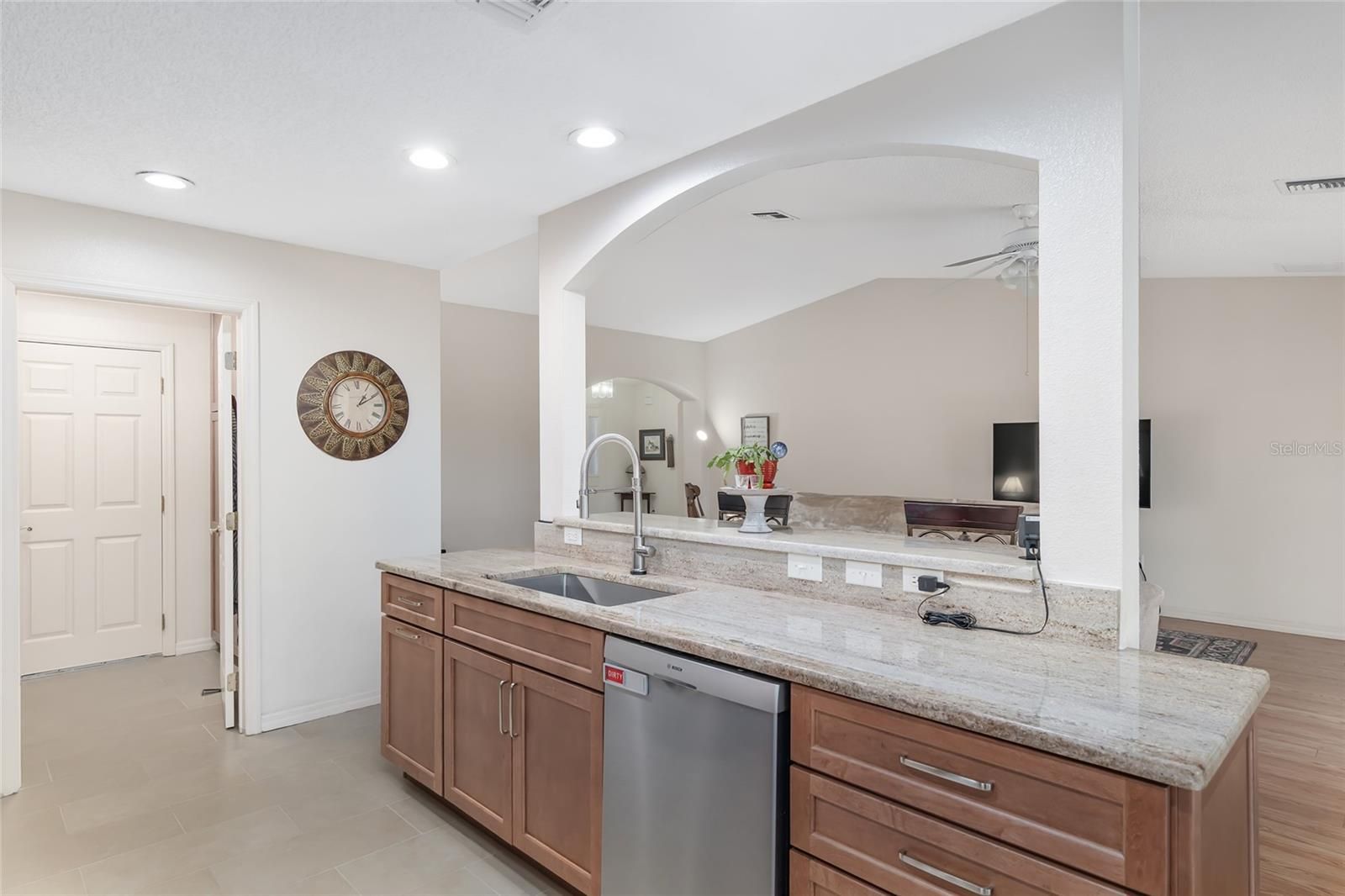 - Ceiling Fan(s), Eat-in Kitchen, Open Floorplan, Split Bedrooms, Stone Counters, Vaulted Ceiling(s), Walk-In Closet(s), Window Treatments