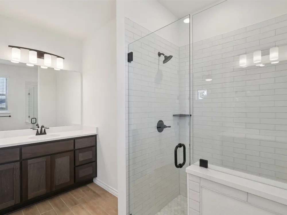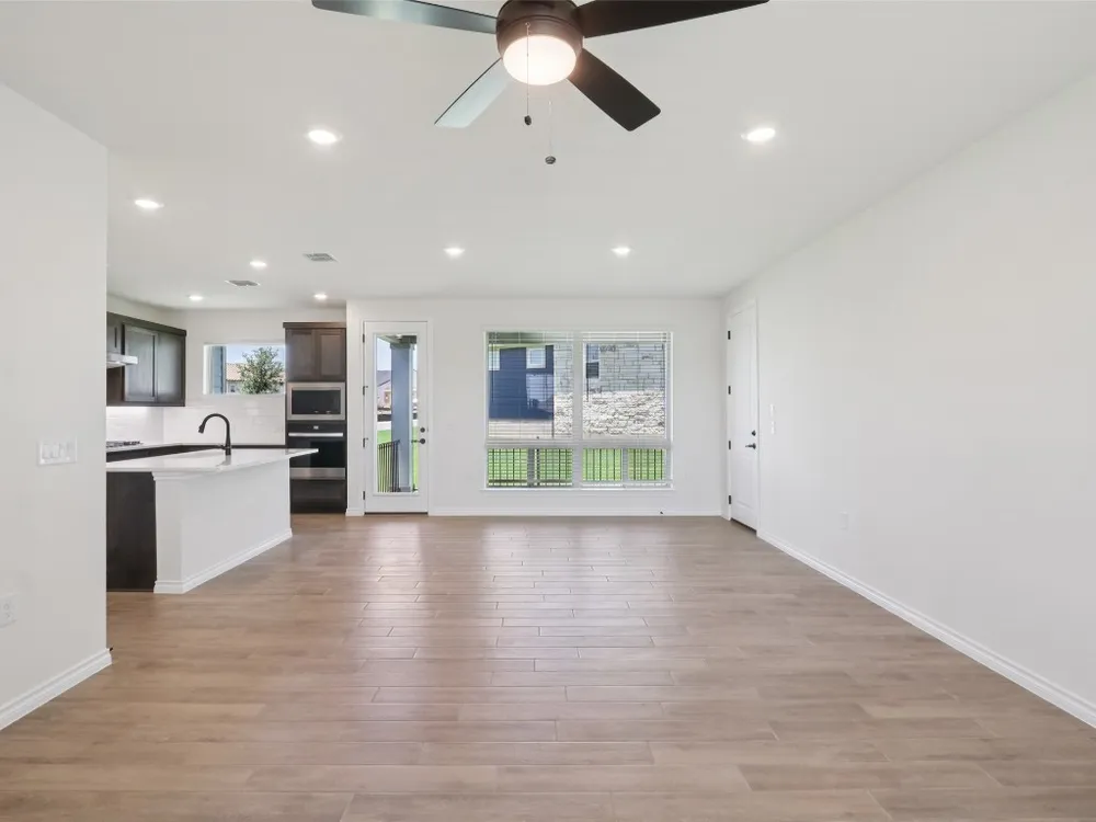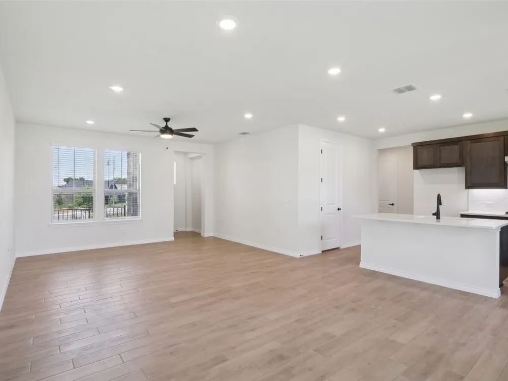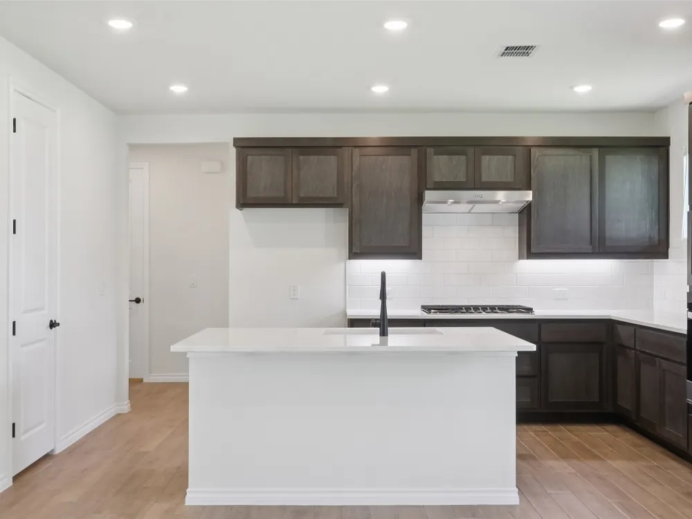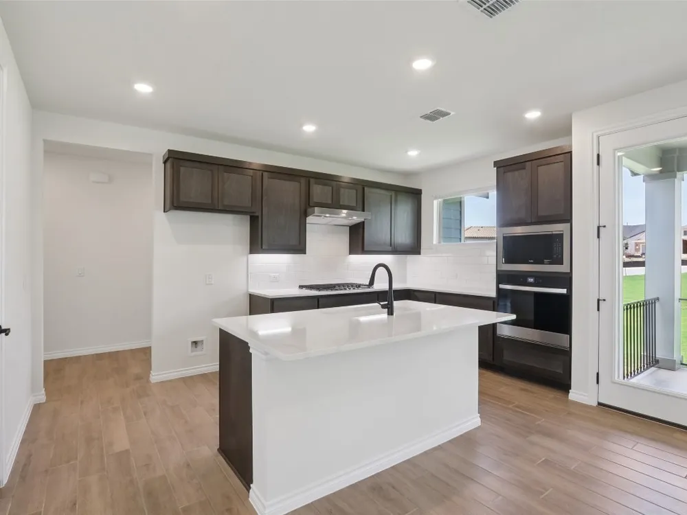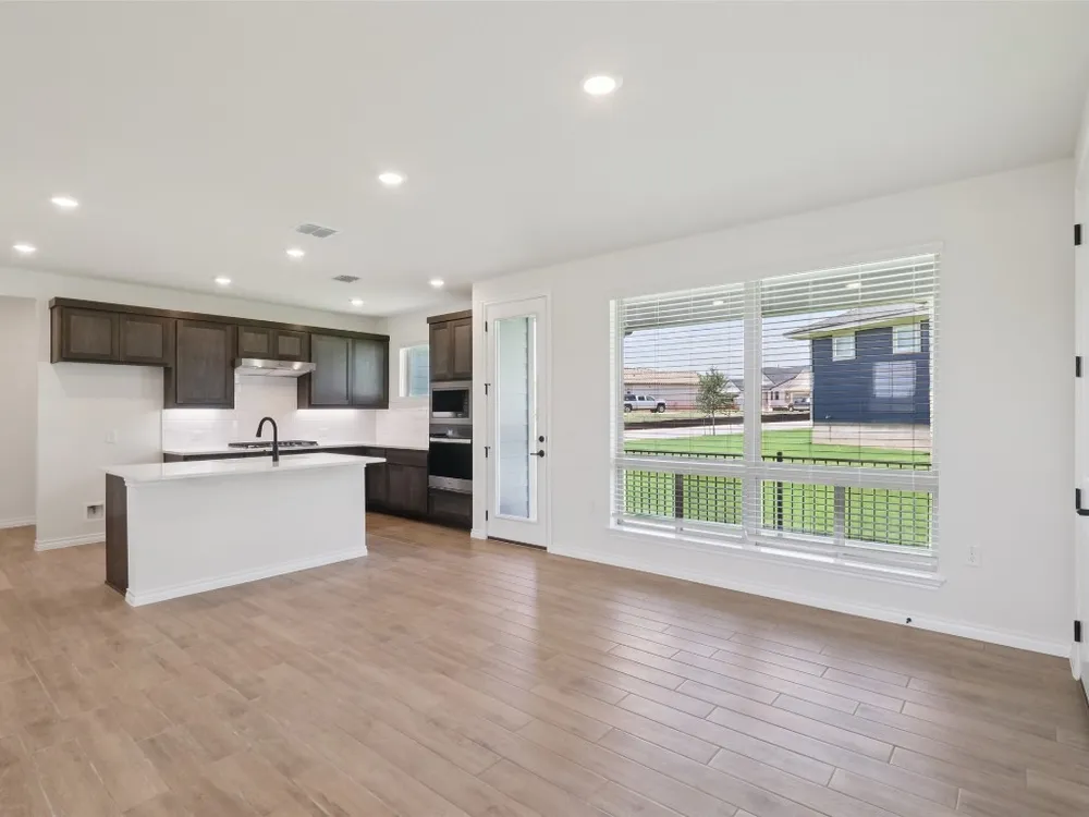 Spieth plan with upgraded kitchen, quartz countertops, upgraded SHORE flooring, 8' doors throughout, optional 2 car garage, Express cordless blinds