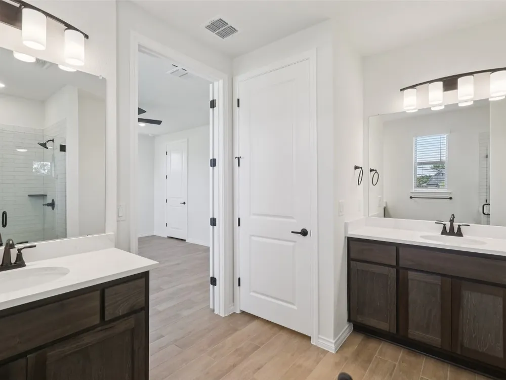 - Ceiling Fan(s), Double Vanity, Main Level Primary, Pantry, Quartz Countertops, Walk-In Closet(s)