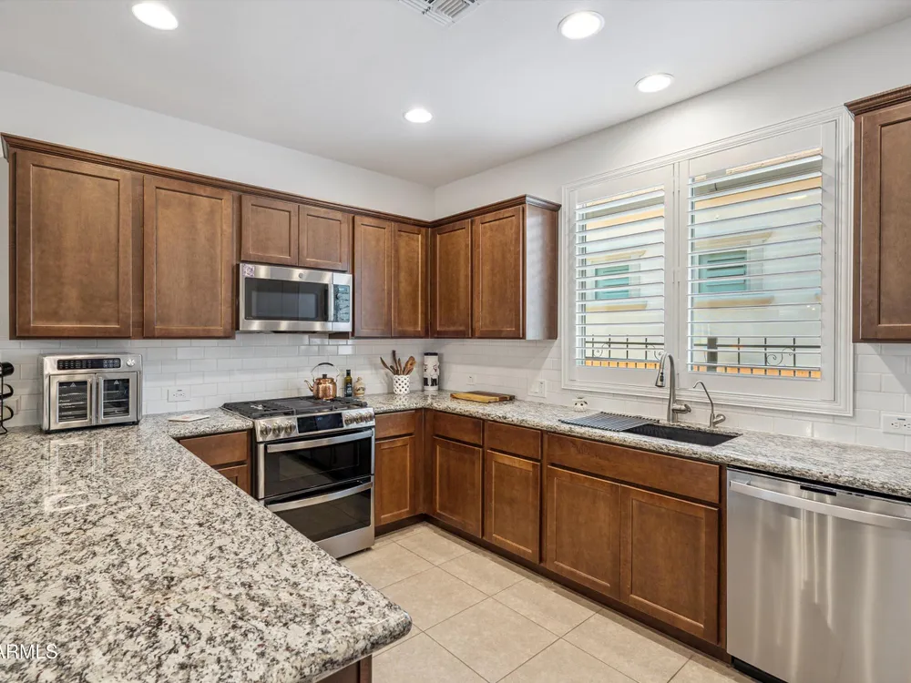Experience comfort, convenience, and resort-style living in this beautiful home nestled within a gated community. Residents enjoy exclusive access to two private clubs, sparkling pools, on-site dining, a championship golf course, and a full calendar of activities, from fitness classes to social gatherings. Inside, the spacious kitchen makes both everyday cooking and entertaining a breeze, with plenty of prep space and granite countertops that add a touch of timeless style. Just off the kitchen, the utility room offers space for laundry and storage, or even a hobby or craft area. The garage features built-in cabinetry, giving you a smart solution for keeping everything organized. Unwind on the large covered patio, an inviting space to enjoy your morning coffee or host an evening gathering.
