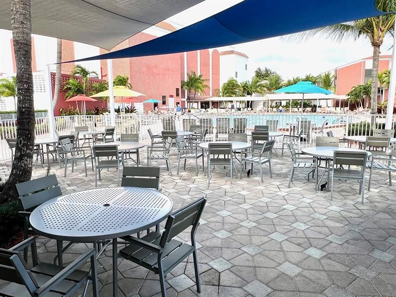 - Includes: Billiard Room, Bocce Ball, Business Center, Café/Restaurant, Clubhouse-Clubroom, Courtesy Bus, Fitness Center, Heated Pool, Hobby Room, Indoor Pool, Library, Pool, Shuffleboard, Tennis