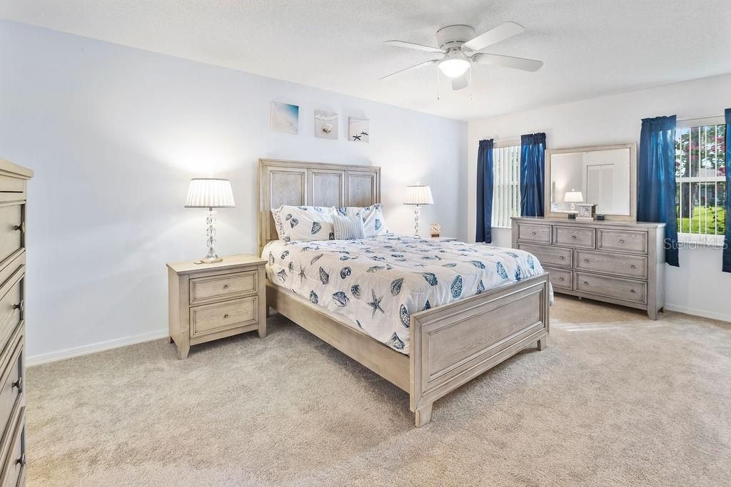 - Cathedral Ceiling(s), Ceiling Fan(s), Eat-in Kitchen, Open Floorplan, Main Level Primary, Split Bedrooms, Walk-In Closet(s), Window Treatments