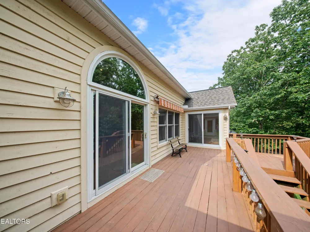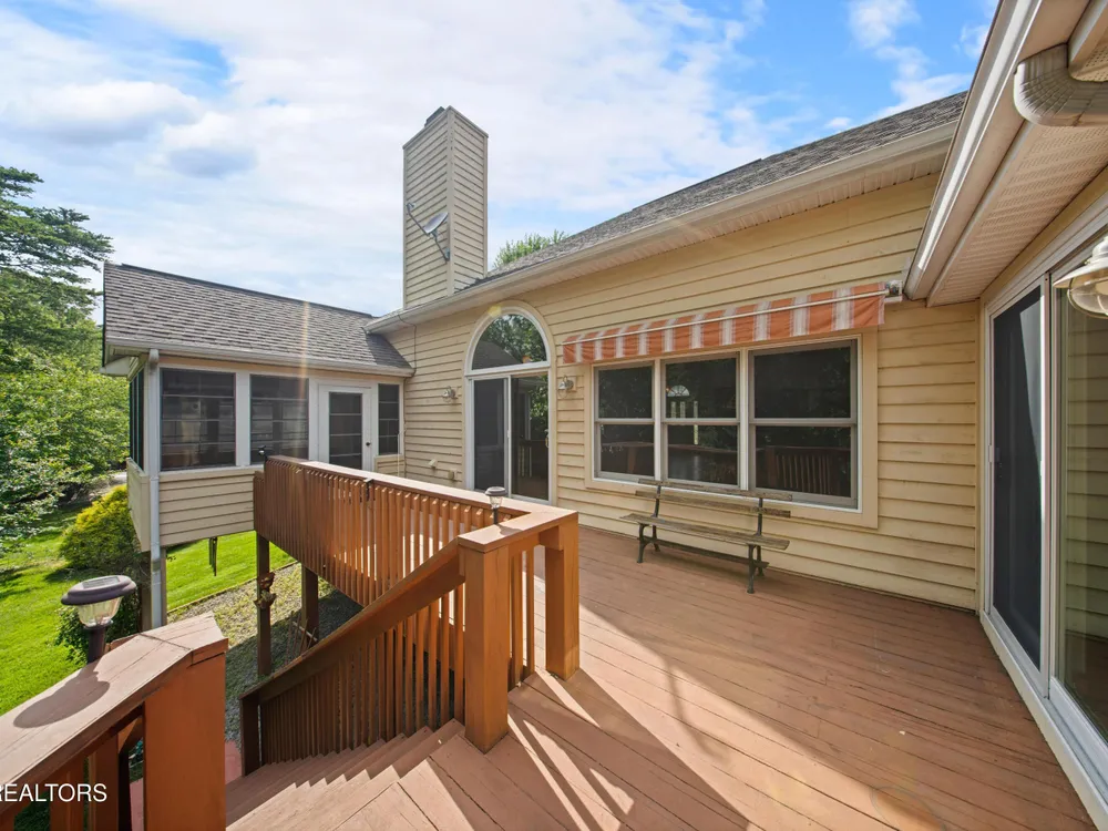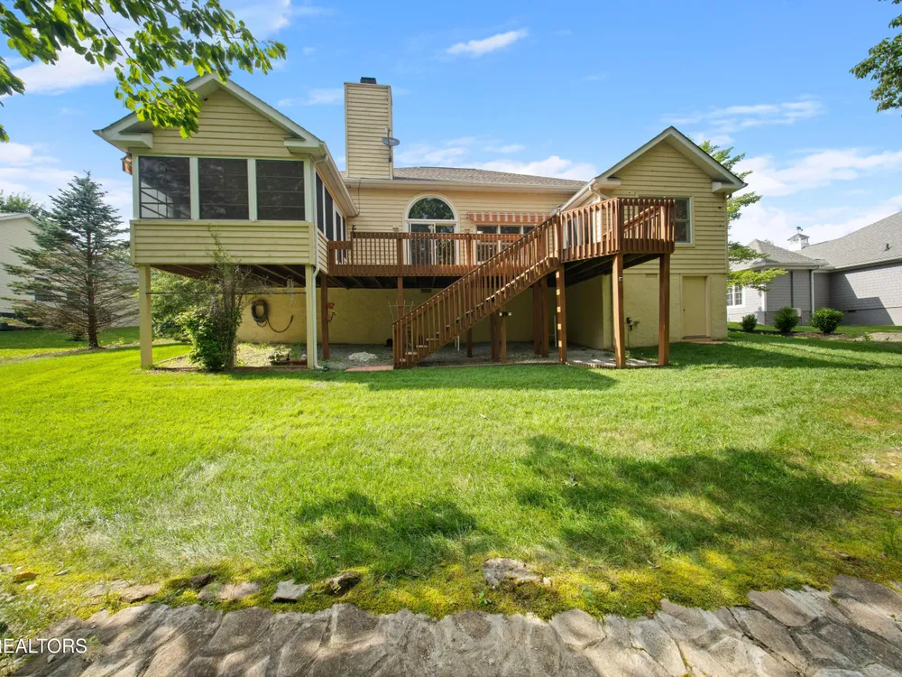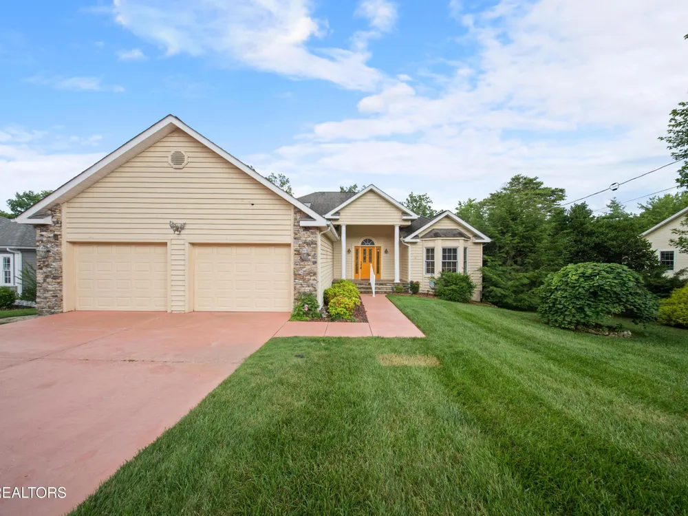 As you enter the home you're welcomed by Cathedral ceilings, and expanded wooded view ensuring privacy and comfort. The open layout seamlessly connects the living, dining, and kitchen areas, creating a perfect space for entertaining and relaxation. The kitchen features beautiful granite countertops, providing both style and functionality. While the gas fireplace offers warmth and ambiance for cozy evenings. This well though out floorplan built by Fairfield Homes and is a split plan with a large primary bedroom, his-and-hers closets, and a spa-like bathroom for your ultimate retreat. The opposing side of the home hosts the 2 additional bedrooms, a full bath, den or office space and a 3 seasons room. The expansive open back porch can be accessed by the primary, the living space, and the sun room. All of this and more is available for your viewing pleasure. Make your appointment to view it today. Located in the desirable Stonehenge Subdivision in the Fairfield Glade community where you'll enjoy access to 5 golf courses, indoor/outdoor pickleball, 20+ miles of walking trails, 11 lakes and more. Buyer to verify all information before making an informed offer. A one time additional payment of $5,000. will be collected at closing and payed to Fairfield Glade Community Club for The Amenity Reserve Fee.