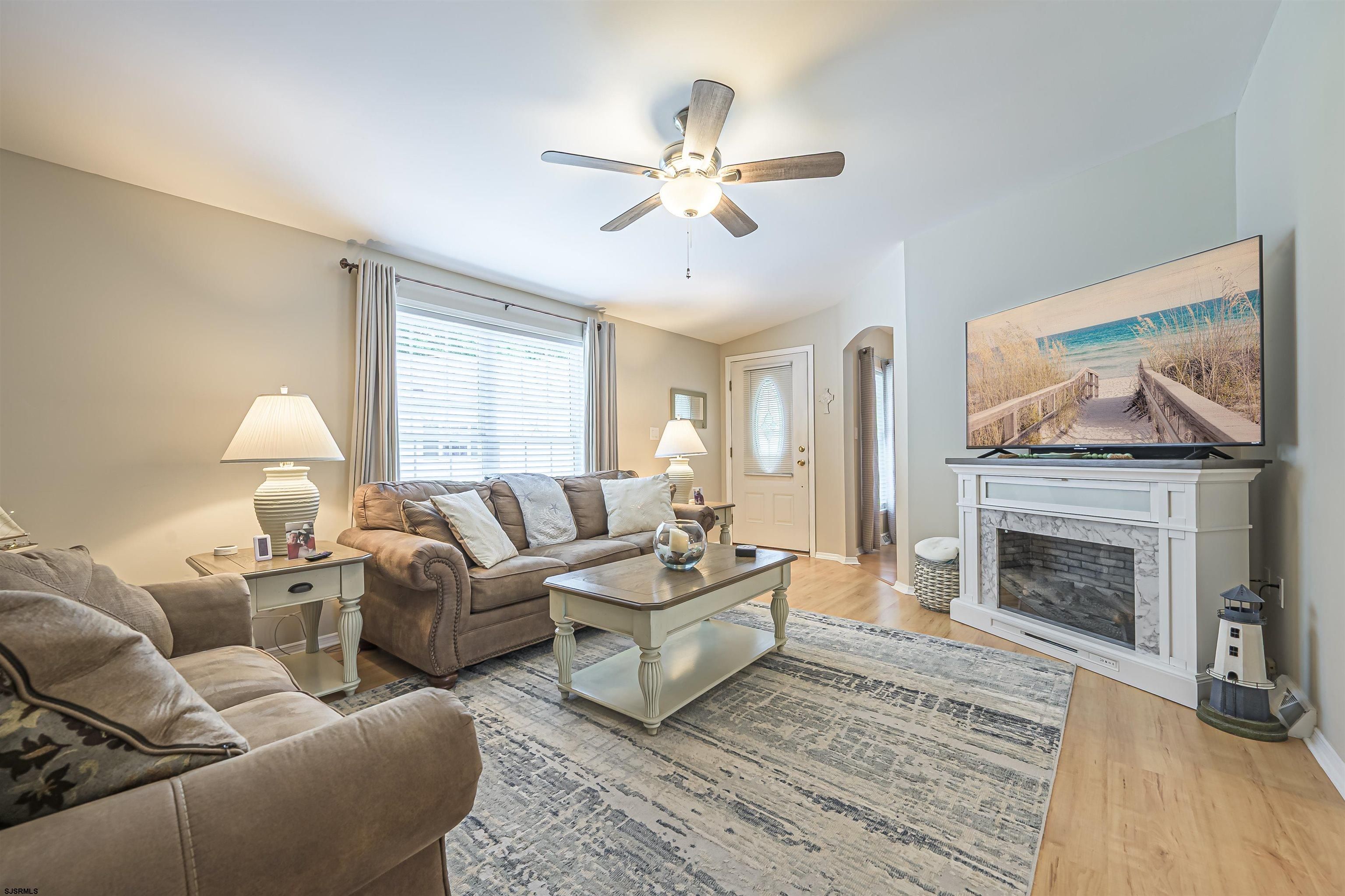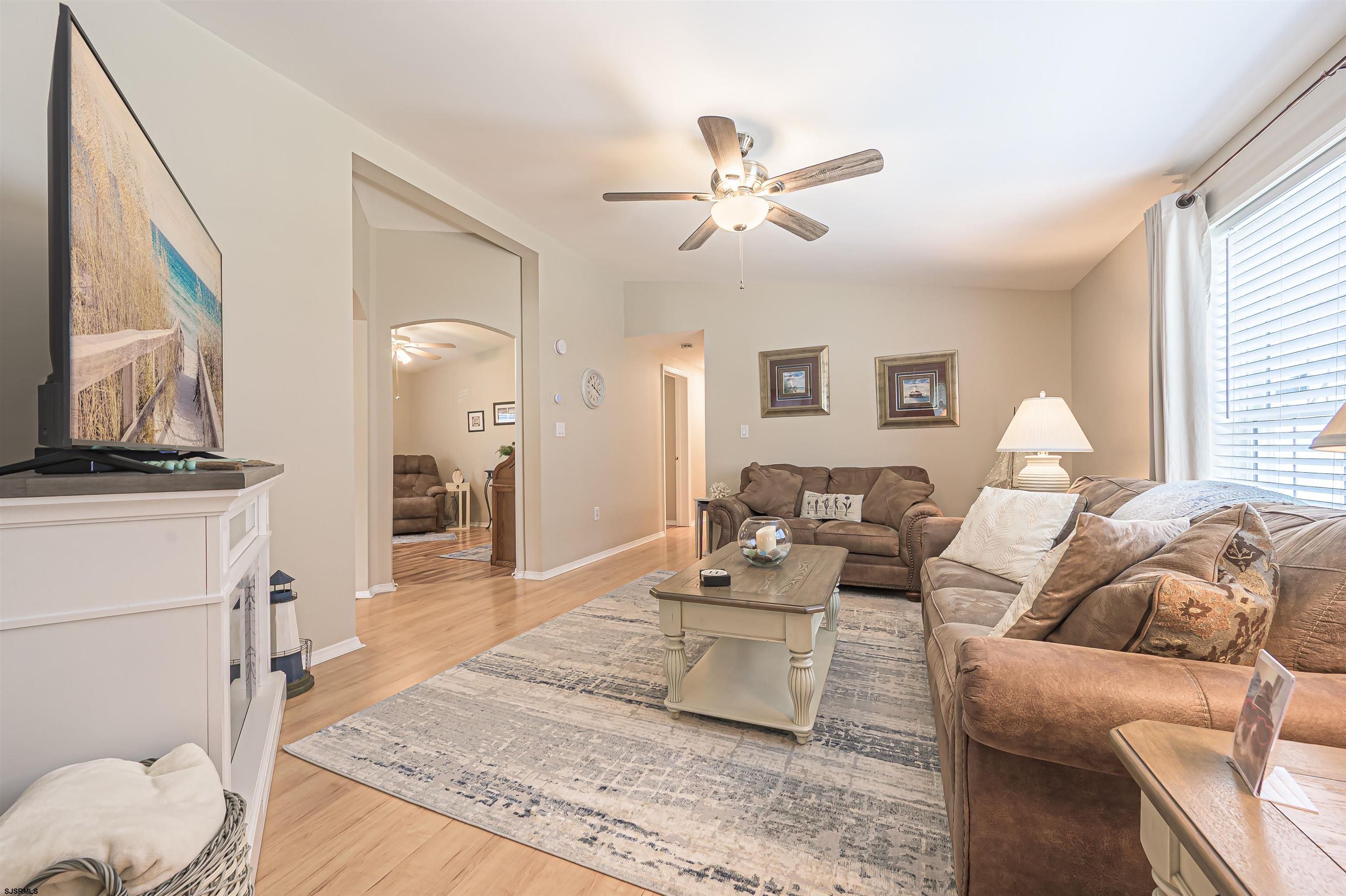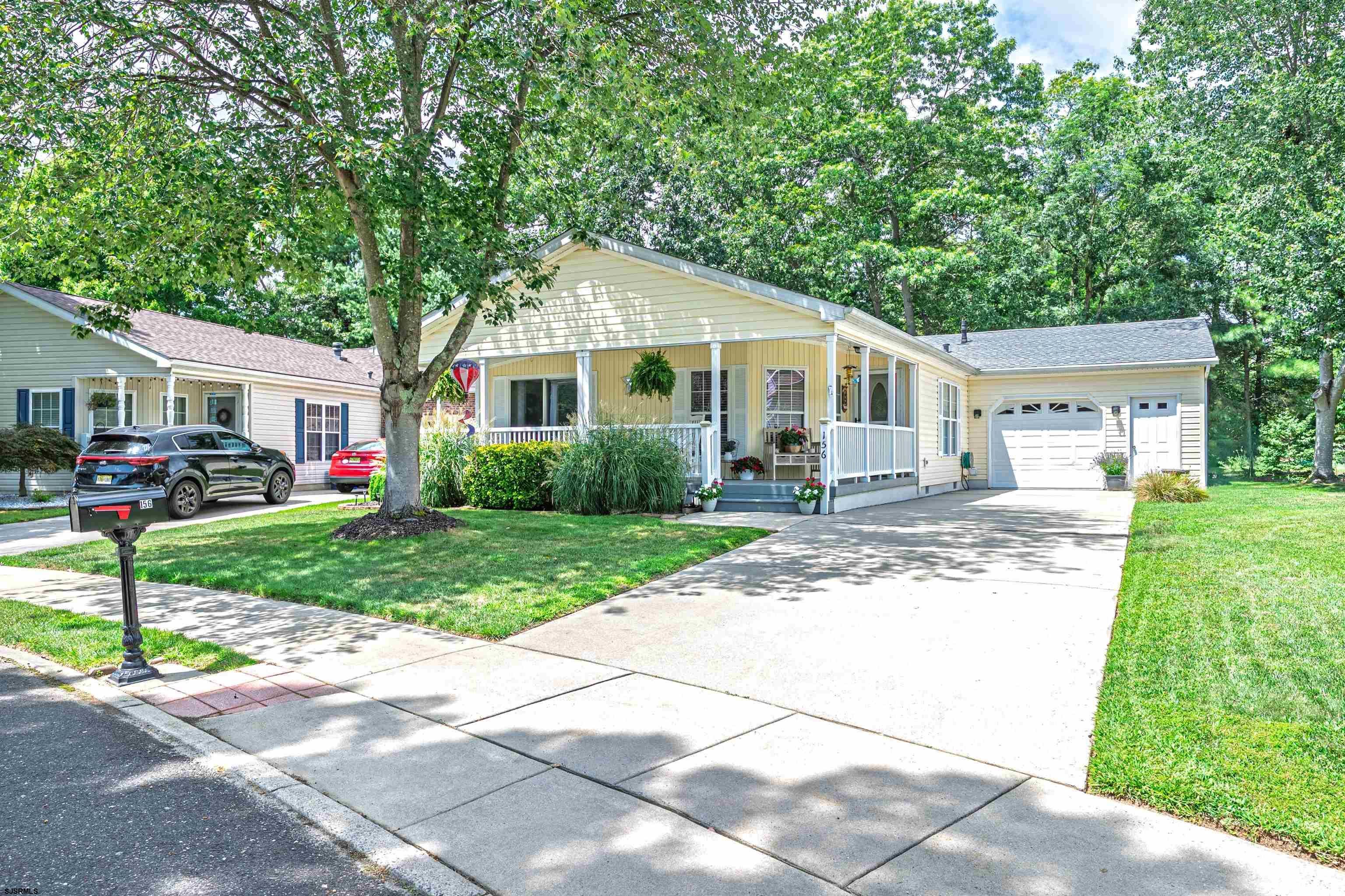 Welcome to 156 Muirfield Ct, located in the highly sought-after community of The Fairways at Mays Landing! Tucked away on a quiet cul-de-sac and situated along the 2nd tee, this meticulously maintained, and beautifully decorated home is a true gem that exudes pride of ownership from the moment you arrive. The charming front porch invites you to sit back and relax for hours, perfect for rocking chairs and enjoying the peaceful surroundings. Inside, you'll find a freshly painted interior featuring a spacious living room with soaring ceilings and abundant natural light. The sun-filled kitchen offers direct access to the porch through sliding glass doors, making indoor-outdoor living seamless. The elegant dining room is ideal for hosting gatherings and holiday dinners. The primary suite is a luxurious retreat with a large walk-in closet and a beautifully updated ensuite bath. The second bedroom is generously sized and fit for a queen, while the versatile den can easily function as a third bedroom, home office, or cozy reading nook. A one-and-a-half-car garage adds extra value—fully sheet rocked, painted, and offering excellent storage or potential for a hobby or fitness space. Step outside to the custom-designed backyard—perfect for entertaining, hosting BBQs, or simply enjoying the tranquility of nature and views of the golfers passing by. Newer roof, Newer tankless hot water heater! Residents of The Fairways enjoy fantastic amenities including a community pool, billiards room, library, gym, and great room—all complemented by a calendar full of social activities. The location is unbeatable—close to shopping, the bike path, and just a short drive to the beautiful Jersey Shore beaches. Don’t miss your chance to own this stunning home in one of Mays Landing’s premier communities. Schedule your private tour today and fall in love with where you live!
