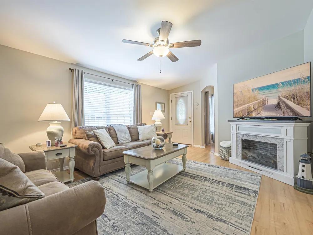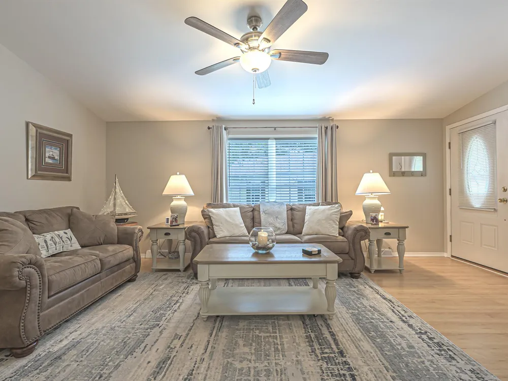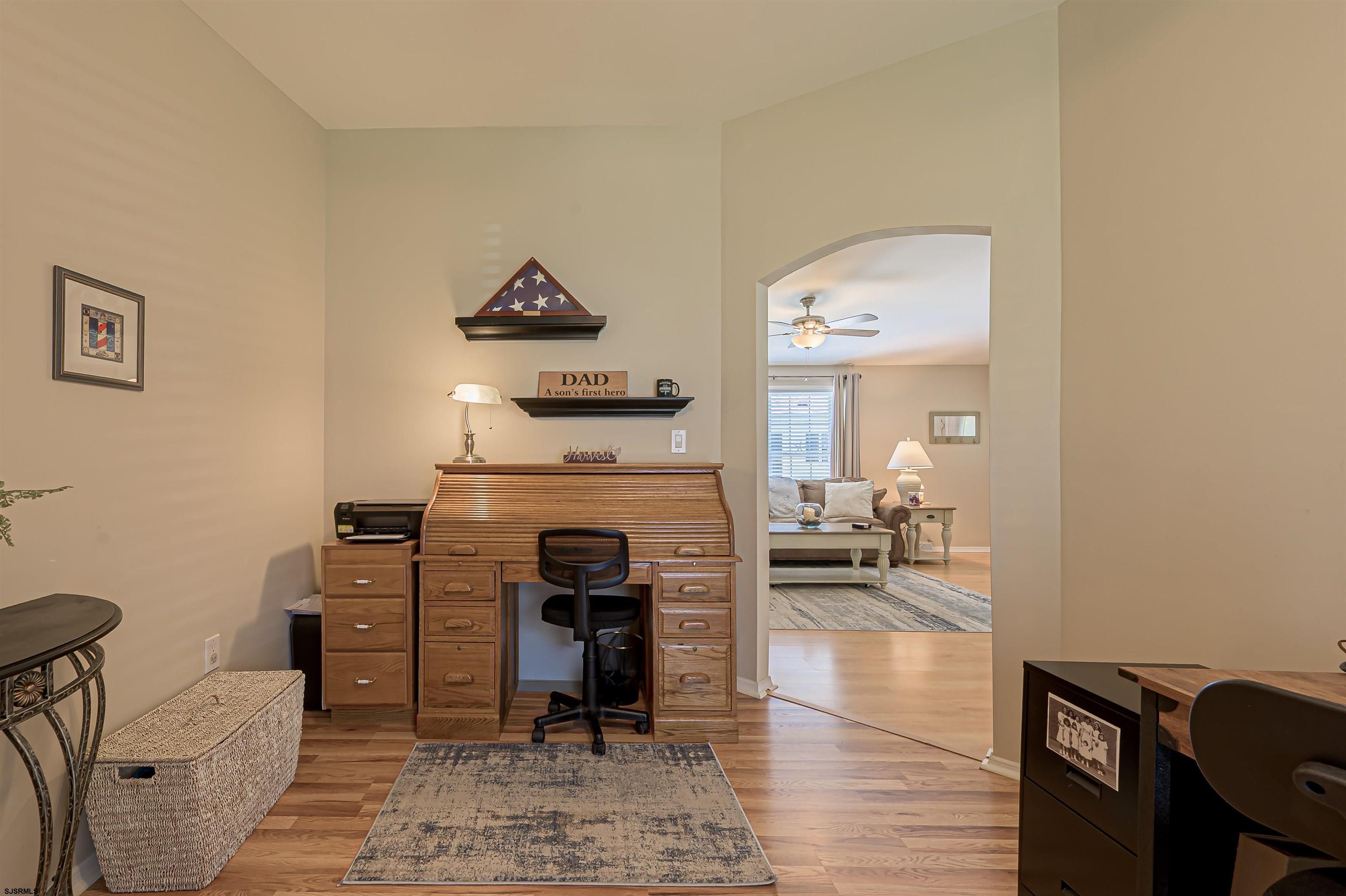 Welcome to 156 Muirfield Ct, located in the highly sought-after community of The Fairways at Mays Landing! Tucked away on a quiet cul-de-sac and situated along the 2nd tee, this meticulously maintained, and beautifully decorated home is a true gem that exudes pride of ownership from the moment you arrive. The charming front porch invites you to sit back and relax for hours, perfect for rocking chairs and enjoying the peaceful surroundings. Inside, you'll find a freshly painted interior featuring a spacious living room with soaring ceilings and abundant natural light. The sun-filled kitchen offers direct access to the porch through sliding glass doors, making indoor-outdoor living seamless. The elegant dining room is ideal for hosting gatherings and holiday dinners. The primary suite is a luxurious retreat with a large walk-in closet and a beautifully updated ensuite bath. The second bedroom is generously sized and fit for a queen, while the versatile den can easily function as a third bedroom, home office, or cozy reading nook. A one-and-a-half-car garage adds extra value—fully sheet rocked, painted, and offering excellent storage or potential for a hobby or fitness space. Step outside to the custom-designed backyard—perfect for entertaining, hosting BBQs, or simply enjoying the tranquility of nature and views of the golfers passing by. Newer roof, Newer tankless hot water heater! Residents of The Fairways enjoy fantastic amenities including a community pool, billiards room, library, gym, and great room—all complemented by a calendar full of social activities. The location is unbeatable—close to shopping, the bike path, and just a short drive to the beautiful Jersey Shore beaches. Don’t miss your chance to own this stunning home in one of Mays Landing’s premier communities. Schedule your private tour today and fall in love with where you live!