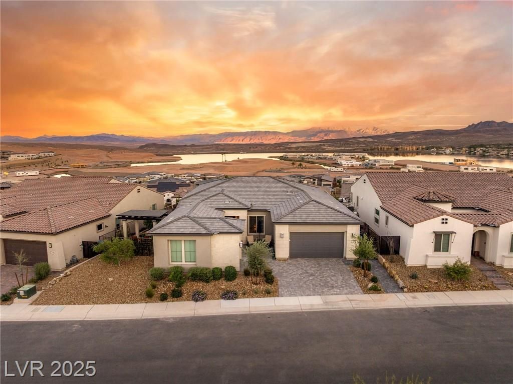 Enjoy unparalleled luxury with this extremely rare Serenity floorplan. Perched 60 ft. higher than the homes below, this oversized homesite offers breathtaking lake and mountain views! A well appointed courtyard welcomes you inside to a massive open concept living area flooded with natural light. You will love the 12 ft. ceilings in the great room, hardwood flooring, designer cabinetry with custom glass panes, 48-inch gourmet gas range, slab quartz countertops w/full height backsplashes, pot filler, storage cabinetry and beverage center. Primary bedroom has massive spa shower, dual vanities and deco tile throughout. Step outside to an impeccably designed exterior with covered patio, pergola, garden beds and mature landscaping with spectacular lake views. 3.5 Car garage, one with it's own a/c split for tempered air, storage racks, workbench built-ins, water softener, and tankless WH. Walk to the state of the art clubhouse w/social calendar, miles of trails, pools, gym and pickleball!