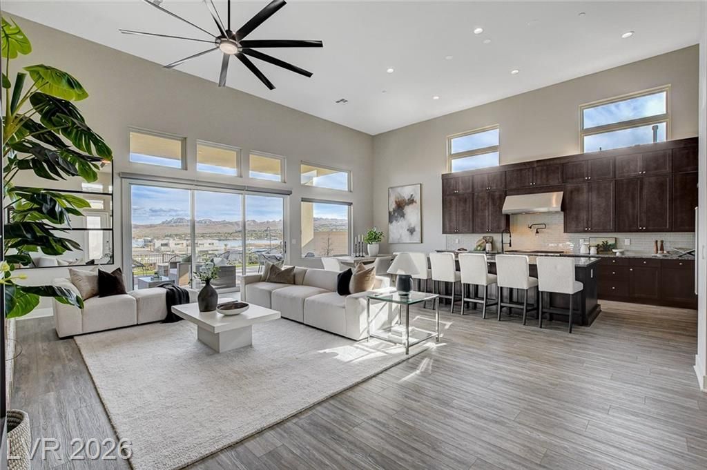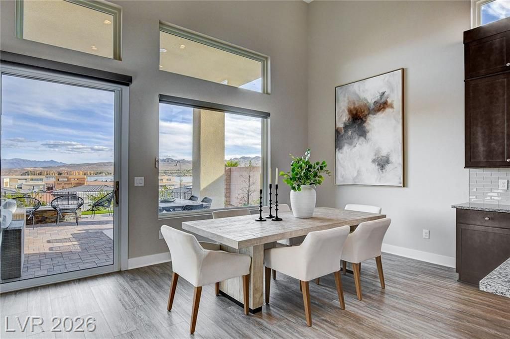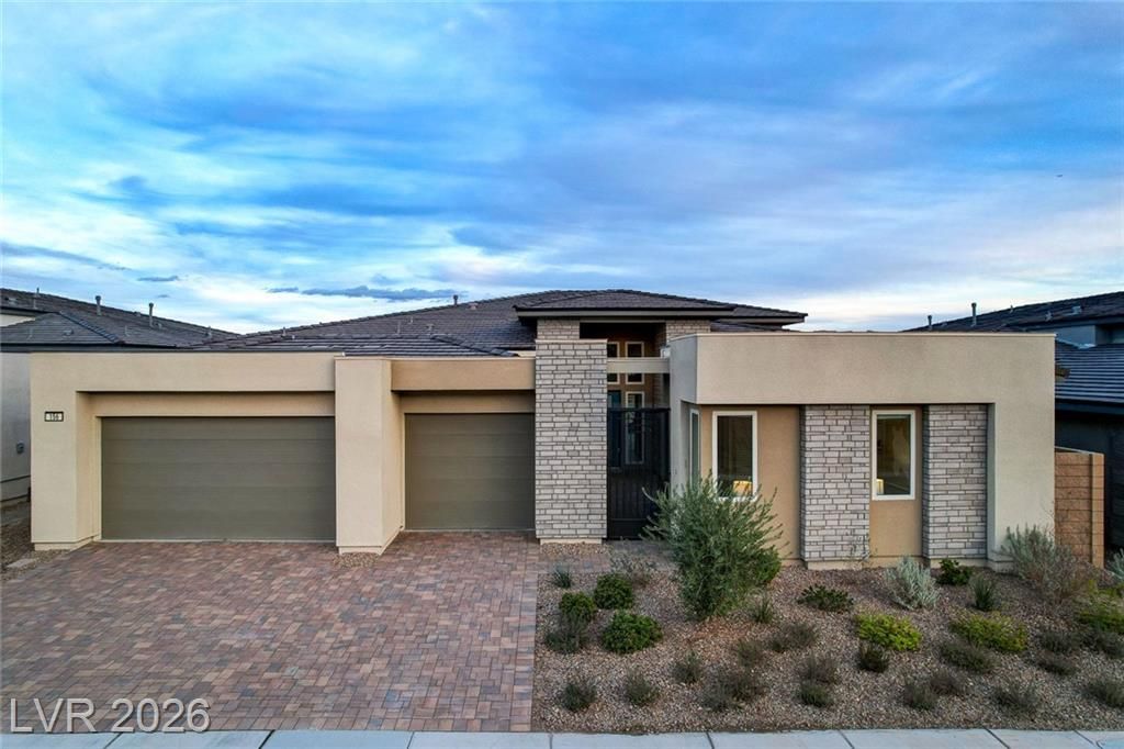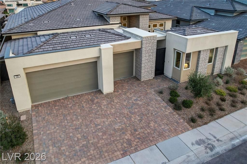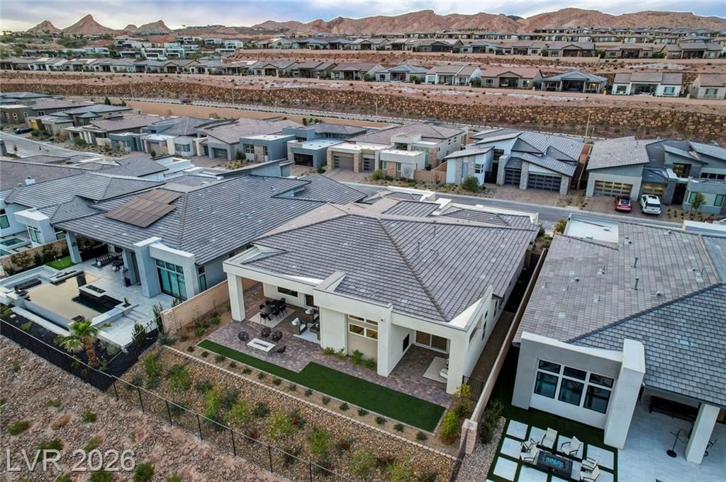 This exceptional single-story residence built in 2024 offers refined lakeside living in the guard-gated Bella Strada enclave within Lake Las Vegas and built by Toll Brothers. Perched on an elevated lot with captivating lake and mountain views, the home spans approximately 2,951 sq ft and features 4 beds and 5 baths.Step into a bright, open great room boasting soaring ceilings and an expansive 8ft glass slider that seamlessly merges indoor and outdoor living.The chef-inspired kitchen is designed for both function and connection, with a generous 10.5ft island, premium Wolf appliances, and abundant cabinetry.The primary suite includes upgraded shower features and a thoughtful layout for comfort. The home also includes a 3-car garage with added storage solutions. Outdoors has a courtyard, private patio, and backyard create inviting spaces for alfresco dining and relaxing and the property has excellent potential for adding a pool and spa to enhance the resort-like ambiance