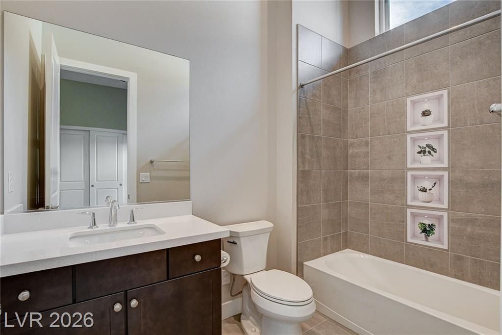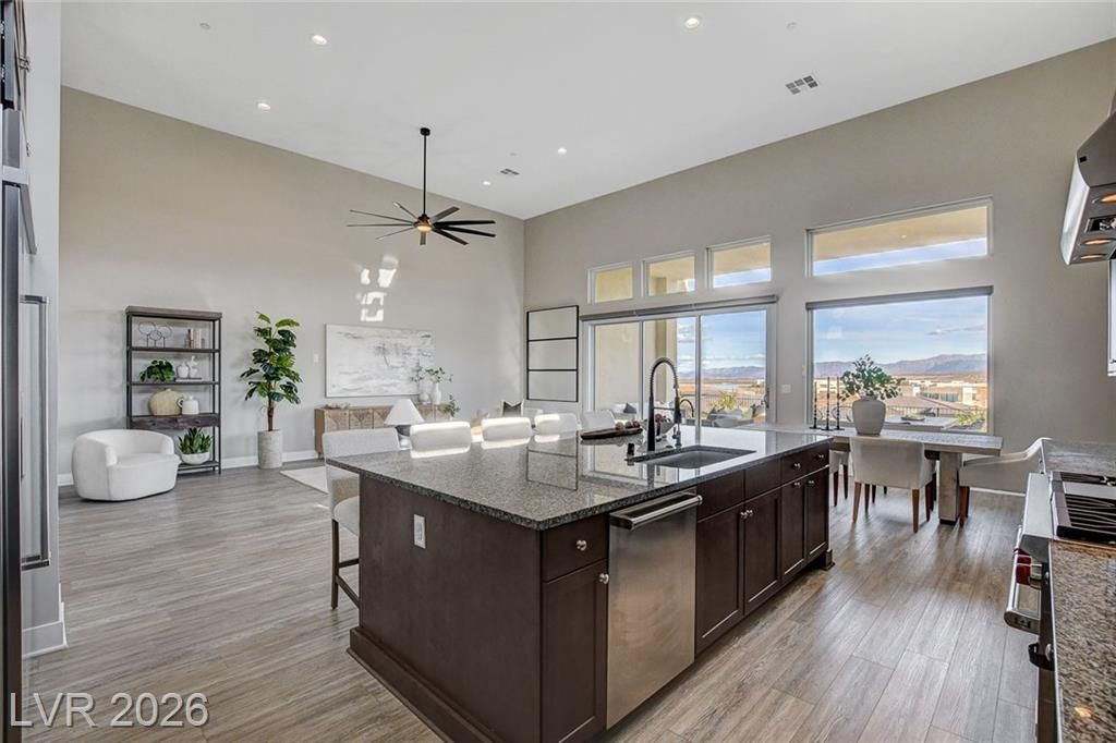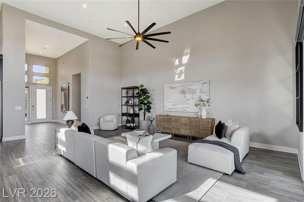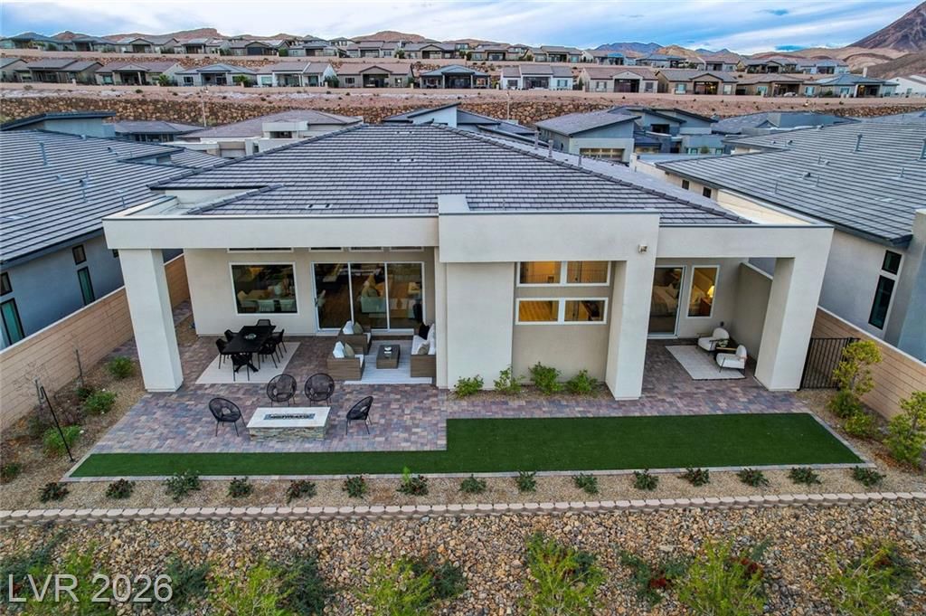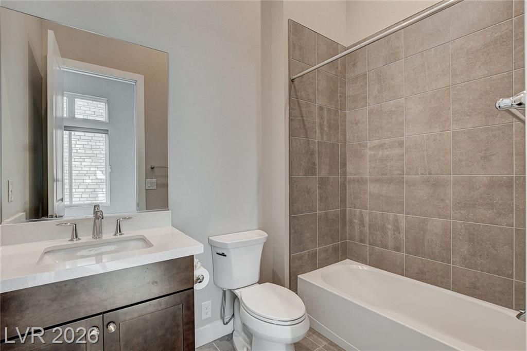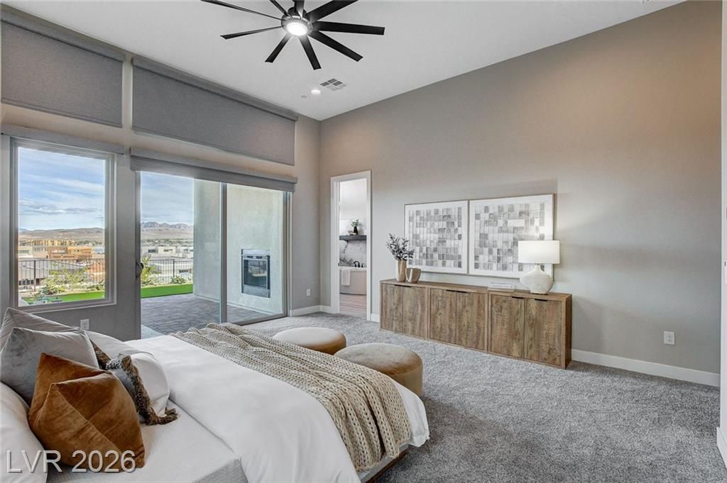 This exceptional single-story residence built in 2024 offers refined lakeside living in the guard-gated Bella Strada enclave within Lake Las Vegas and built by Toll Brothers. Perched on an elevated lot with captivating lake and mountain views, the home spans approximately 2,951 sq ft and features 4 beds and 5 baths.Step into a bright, open great room boasting soaring ceilings and an expansive 8ft glass slider that seamlessly merges indoor and outdoor living.The chef-inspired kitchen is designed for both function and connection, with a generous 10.5ft island, premium Wolf appliances, and abundant cabinetry.The primary suite includes upgraded shower features and a thoughtful layout for comfort. The home also includes a 3-car garage with added storage solutions. Outdoors has a courtyard, private patio, and backyard create inviting spaces for alfresco dining and relaxing and the property has excellent potential for adding a pool and spa to enhance the resort-like ambiance