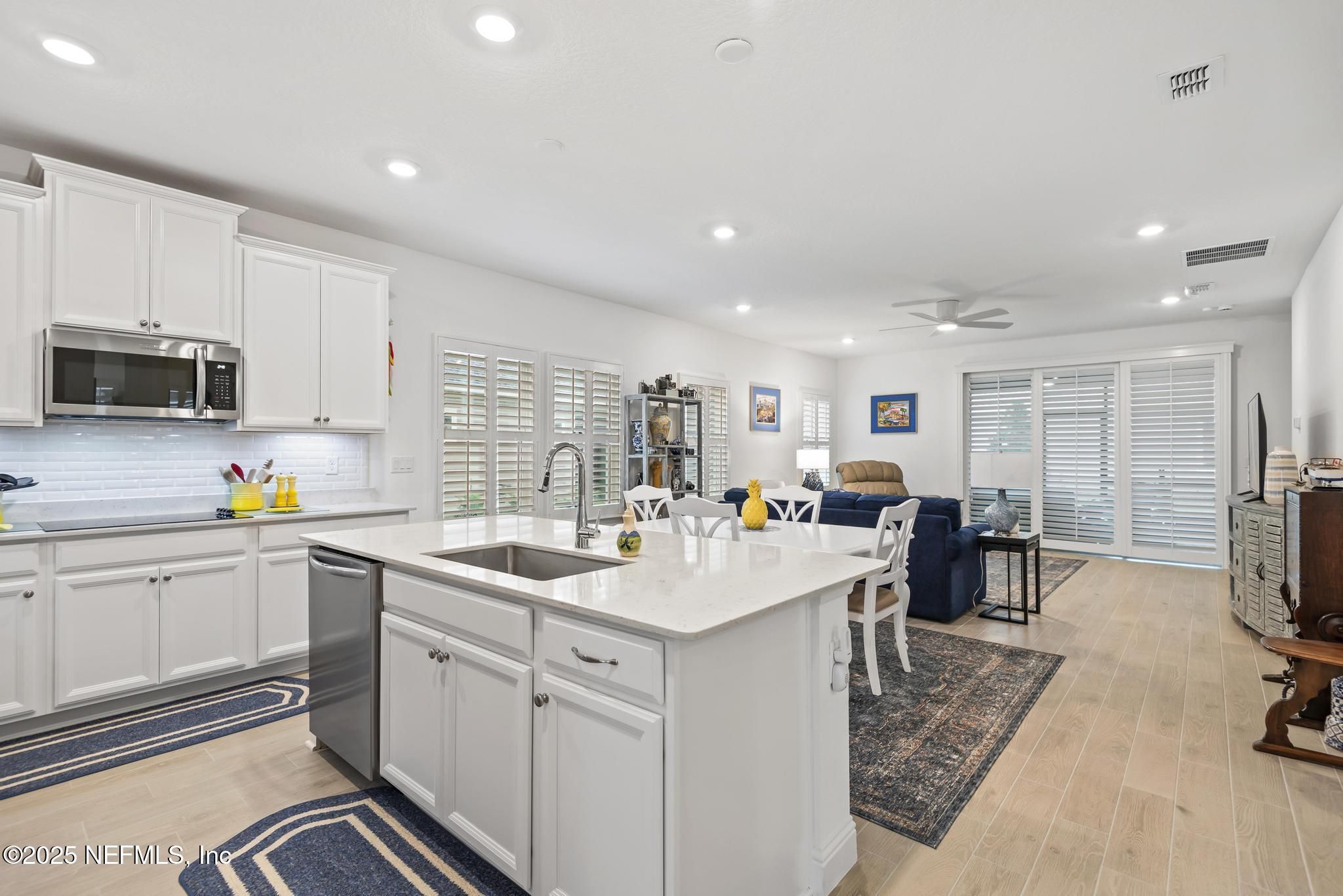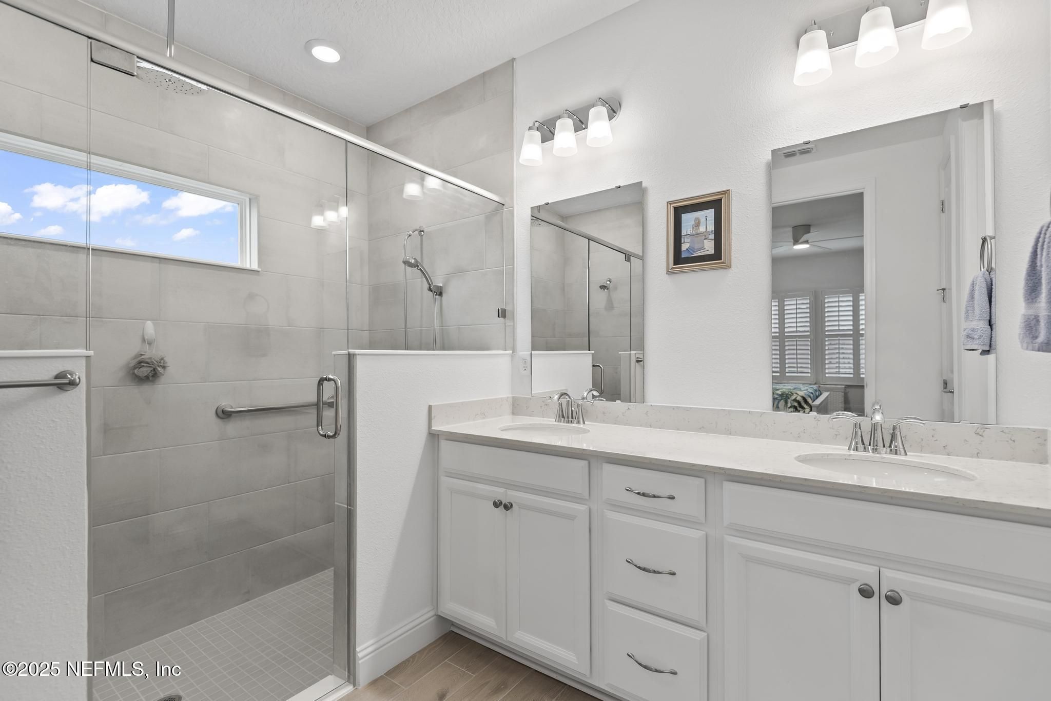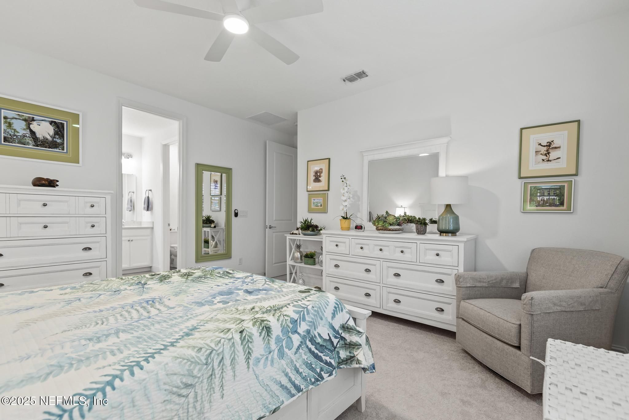 - Ceiling Fan(s), Eat-in Kitchen, Entrance Foyer, His and Hers Closets, Kitchen Island, Open Floorplan, Pantry, Primary Bathroom - Shower No Tub, Primary Downstairs, Split Bedrooms, Walk-In Closet(s)