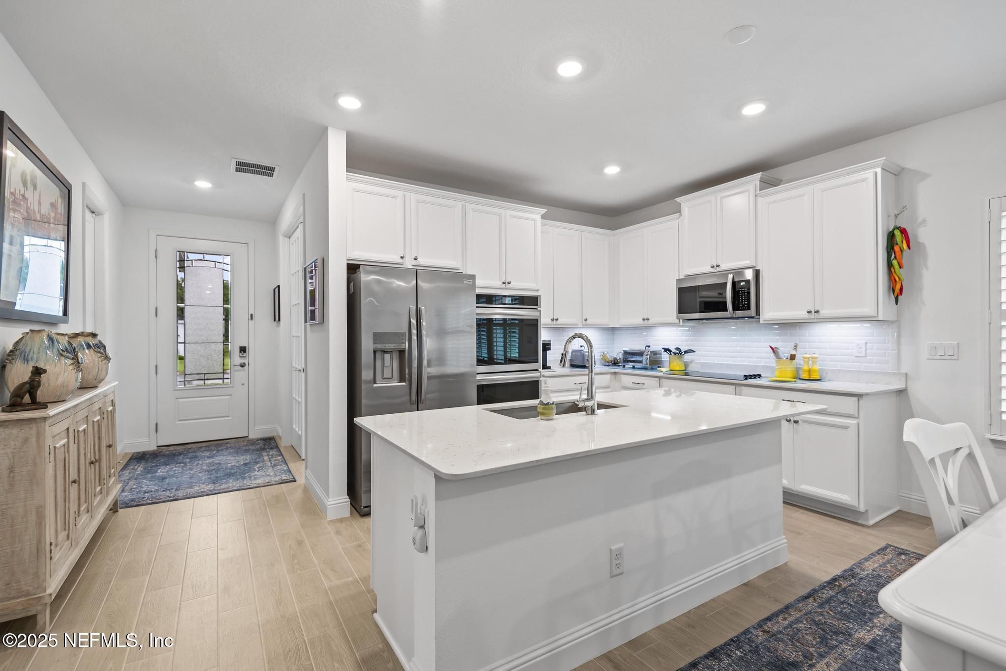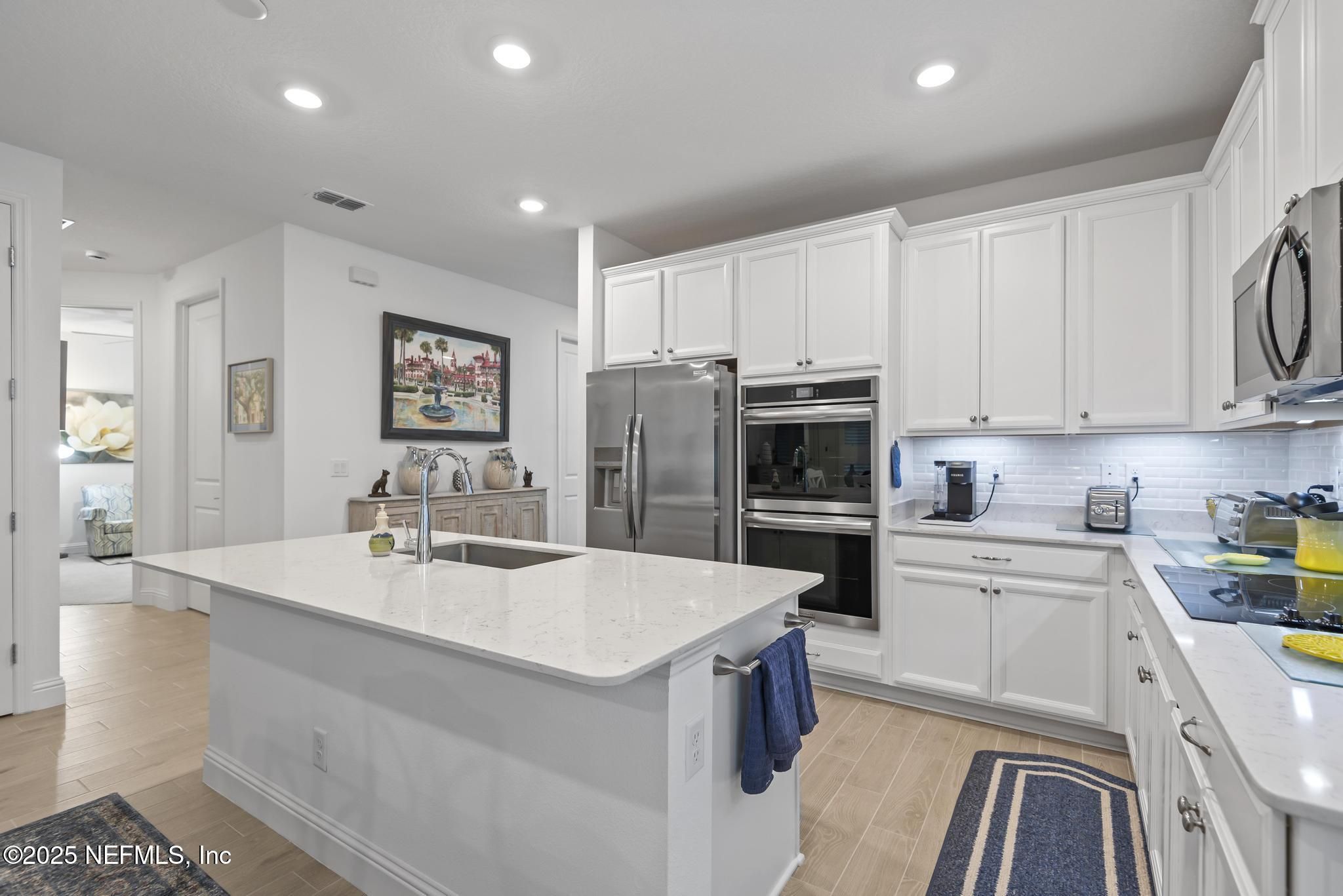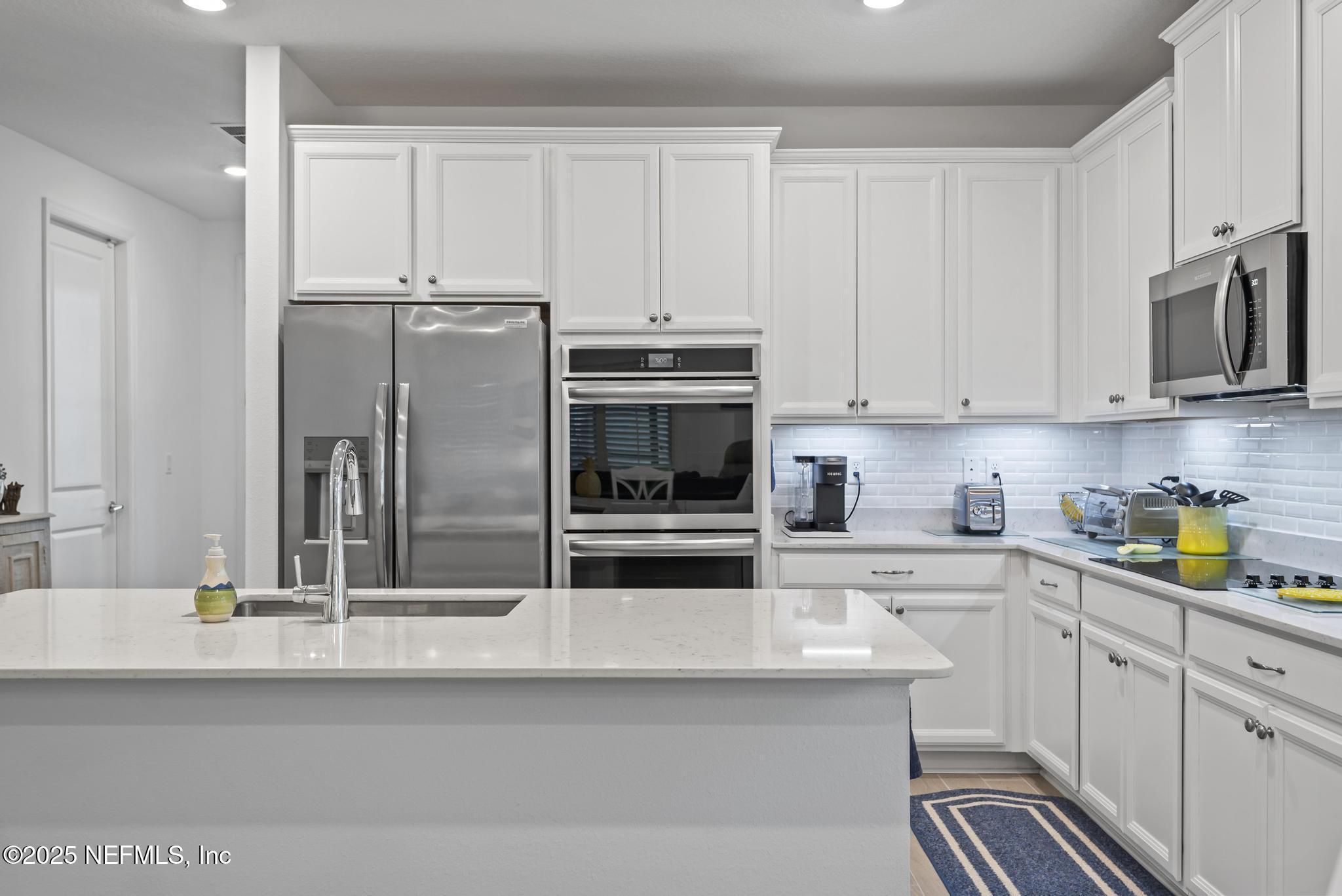 - Dishwasher, Disposal, Double Oven, Dryer, Electric Cooktop, Gas Water Heater, Microwave, Refrigerator, Tankless Water Heater, Washer, Water Softener Owned
