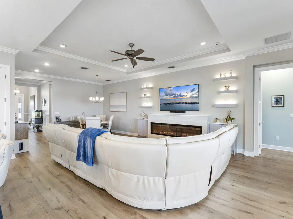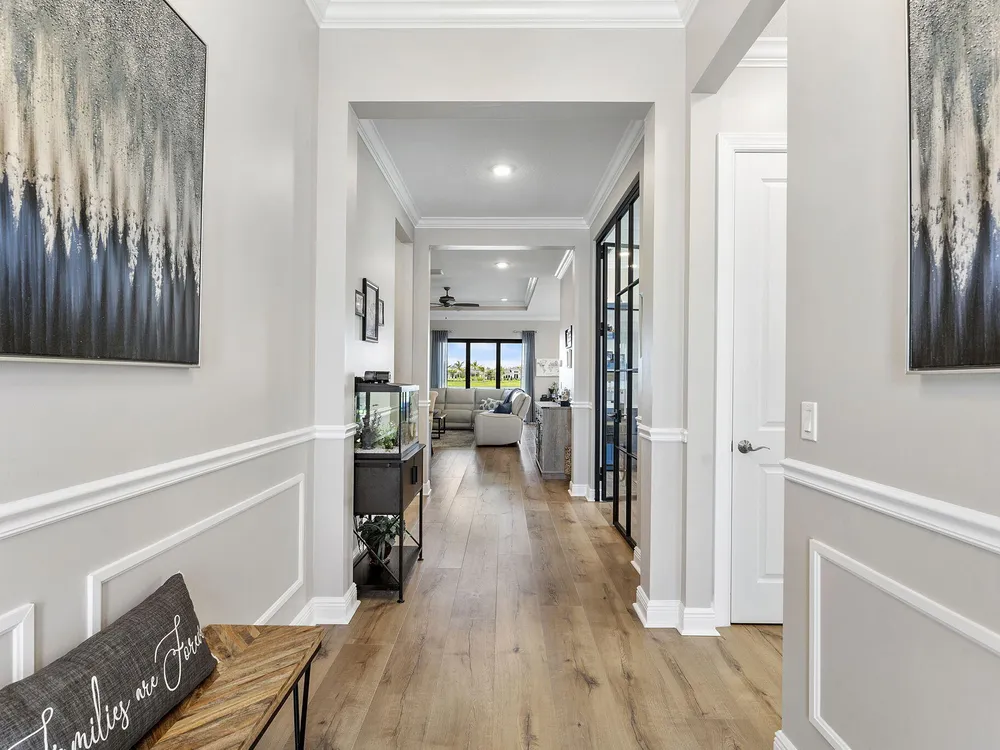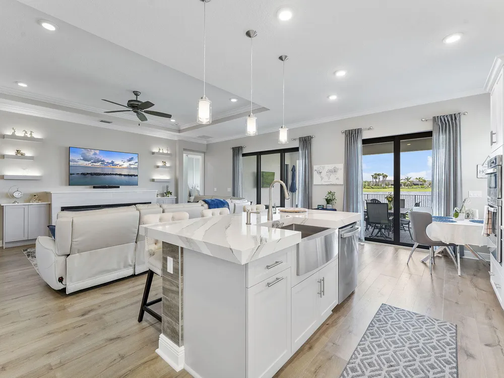 Exquisite Upgraded Home in Cresswind at Westlake!Welcome to luxury living in the sought-after 55+ community of Cresswind at Westlake! This stunning 3-bedroom, 3-bath residence with an oversized den offers the perfect blend of modern comfort, style and functionality. Nestled on a stunning piece of lakefront property, with a fenced-in yard and boasting over $150,000 in premium upgrades, every detail has been thoughtfully curated for today's discerning buyer.Step inside to discover a spacious open-concept layout with high-end finishes throughout, including designer flooring, custom lighting, upgraded cabinetry, and a gourmet chef's kitchen with natural gas range featuring top-of-the-line stainless steel appliances, quartz countertops, and an oversized island perfect for entertaining.