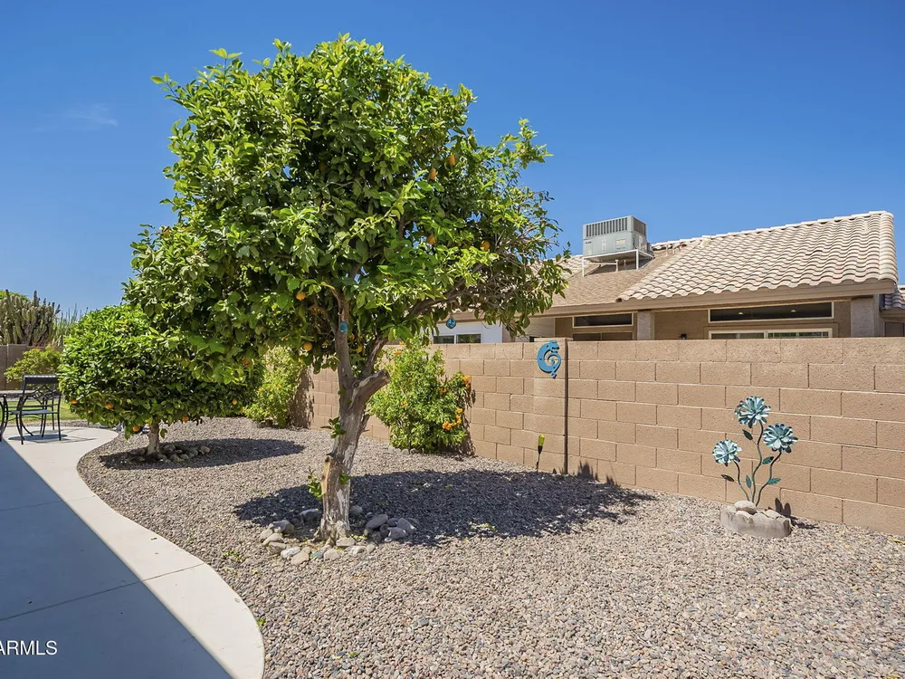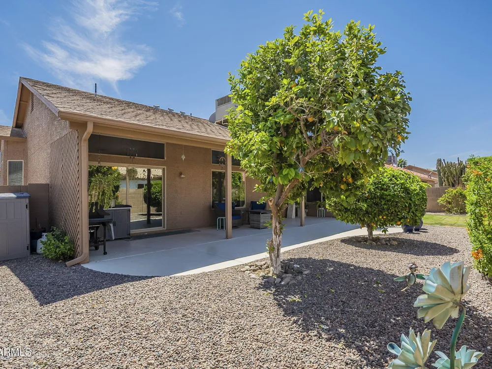 This home offers a special Buyer Incentive Program; see agent for details! You'll find comfort throughout; pack your boxes, this well maintained home is move in ready. From the spacious living room to the top-notch cook's kitchen and cozy bedrooms, you will find it enjoyable both inside and out with a lovely back outdoor space that has a generously covered patio and yard with orange and lemon trees. The garage is equipped with built in cabinets, extra shelving and room for a golf cart. Back indoors the laundry room has additional storage and pantry space. This popular 55+ gated Sunbird community offers many amenities, fitting for any lifestyle.