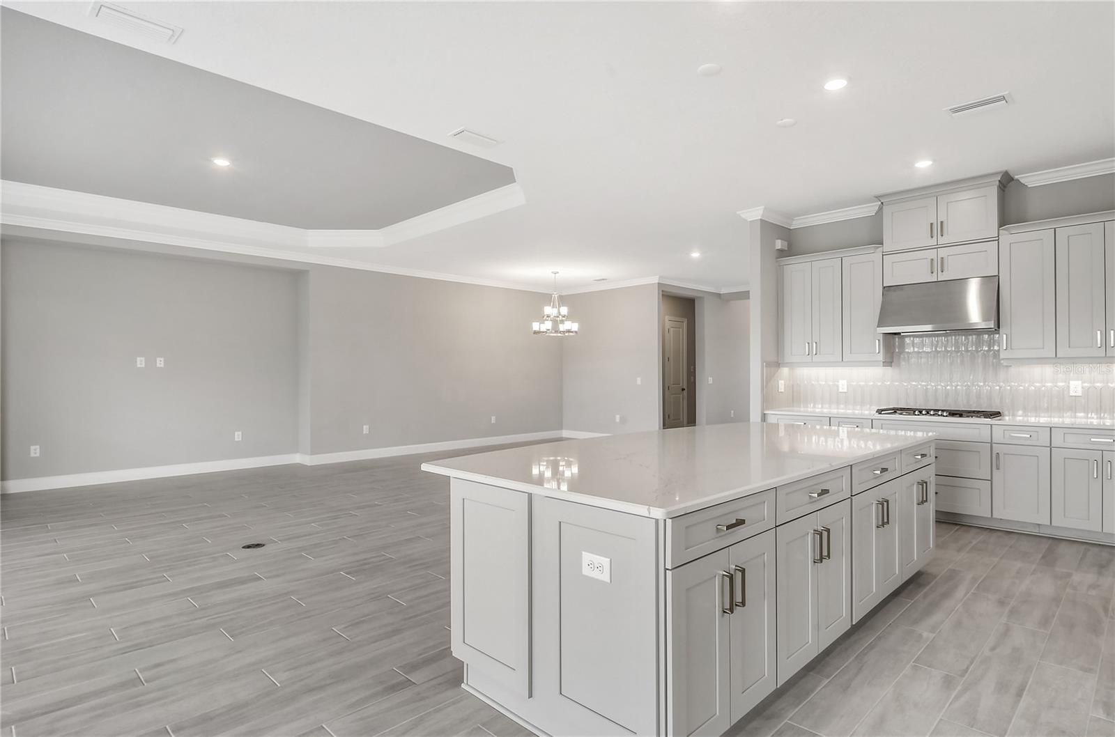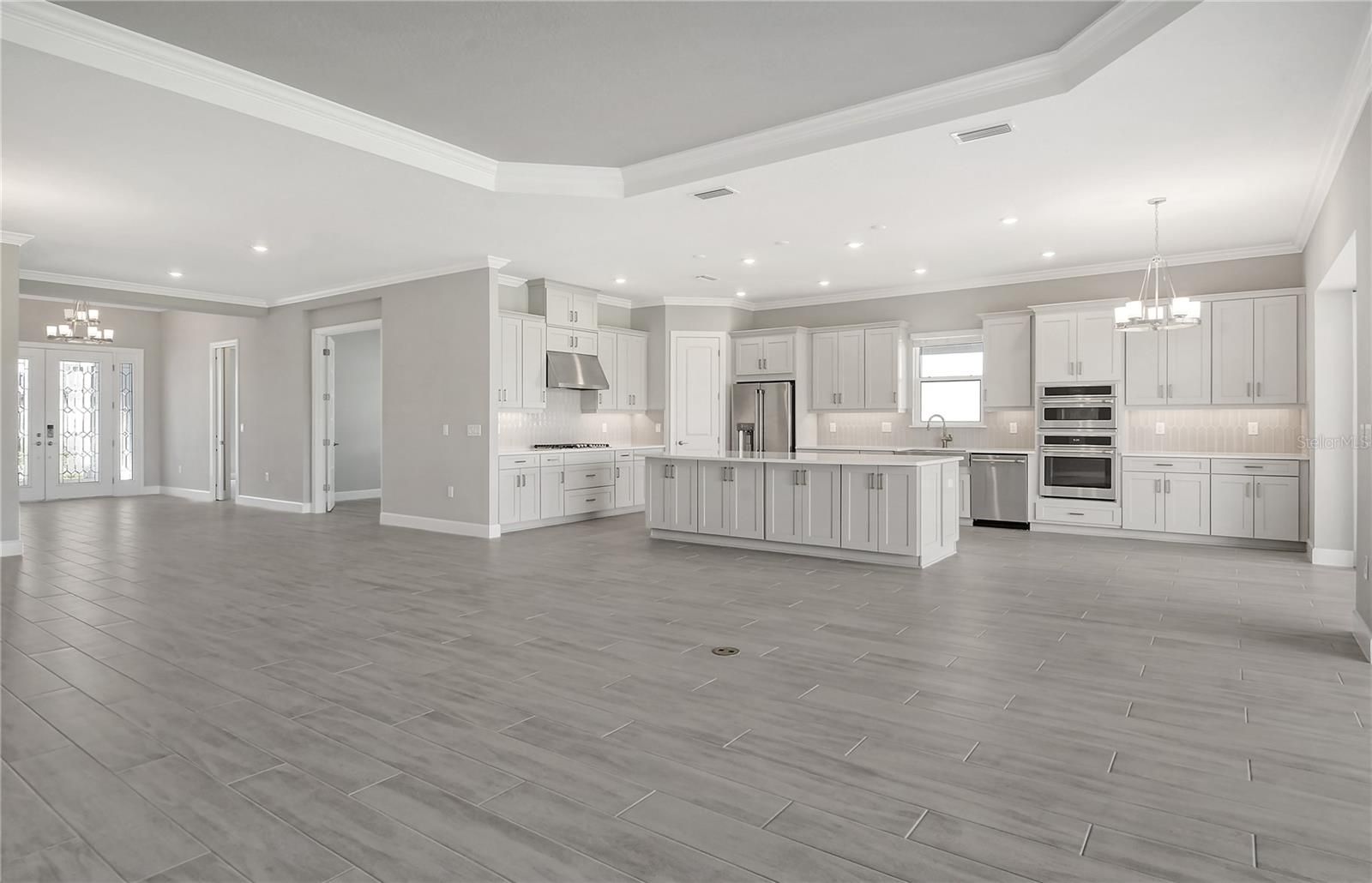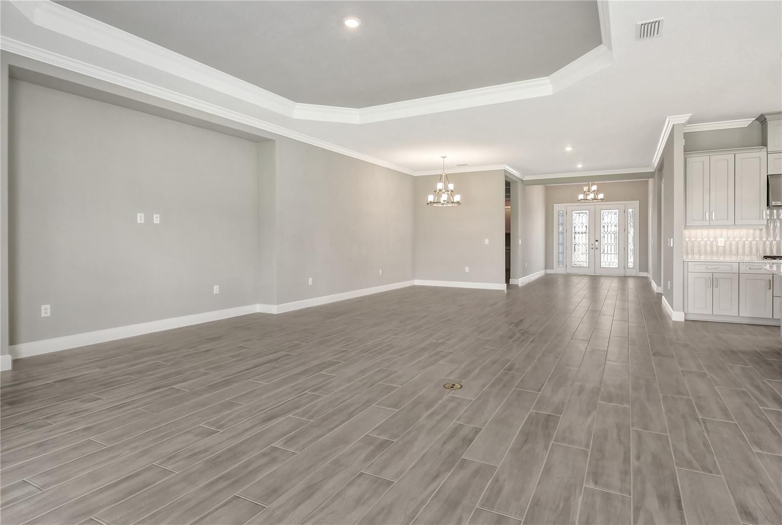 - Crown Molding, High Ceilings, Kitchen/Family Room Combo, Living/Dining Room, Open Floorplan, Tray Ceiling(s), Walk-In Closet(s), Window Treatments