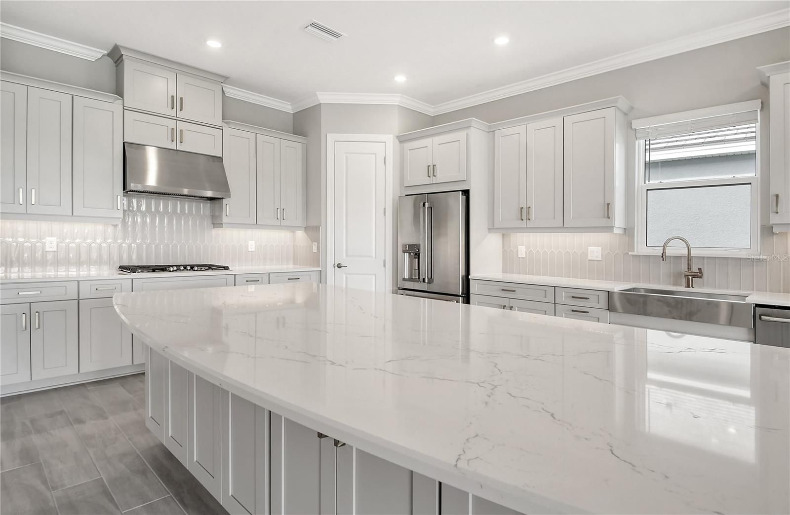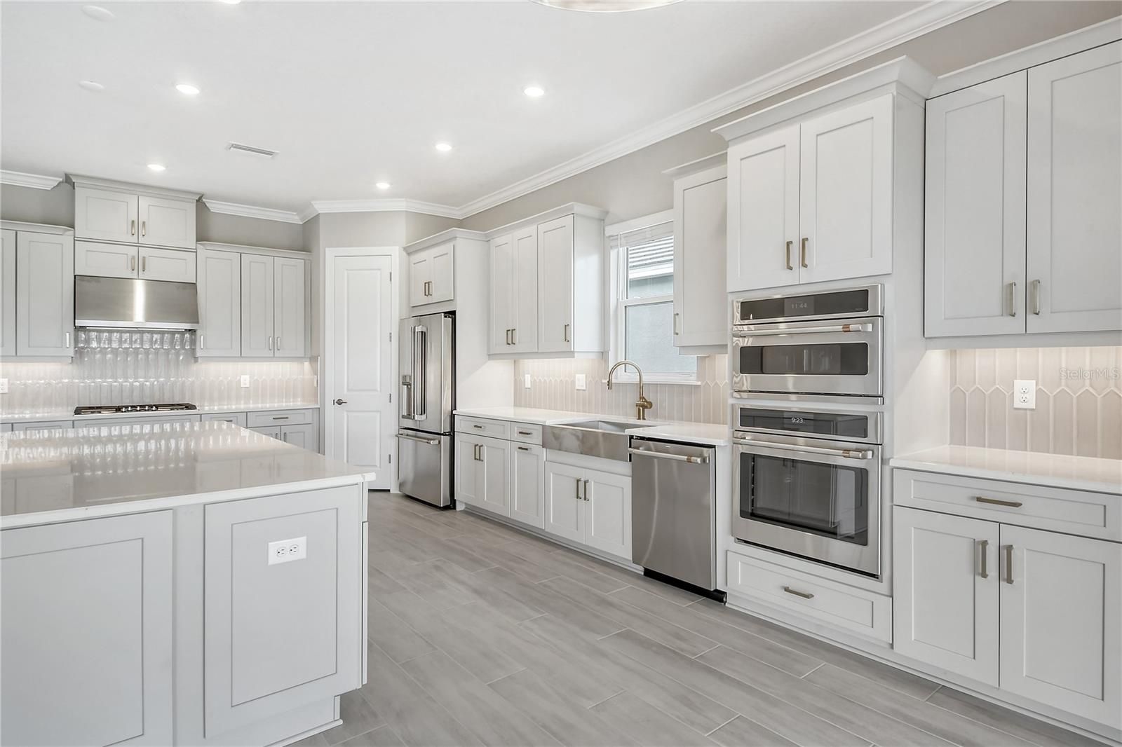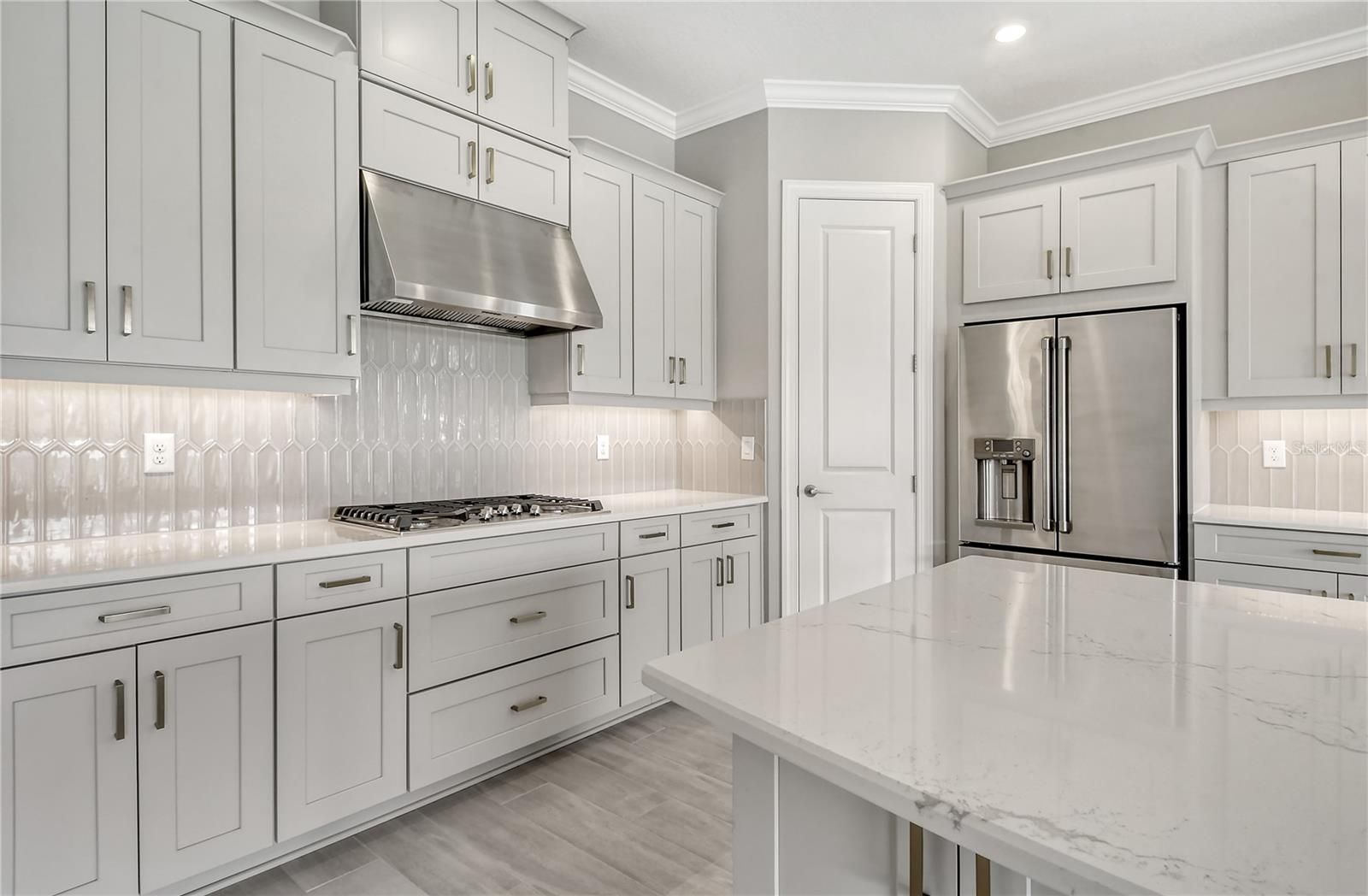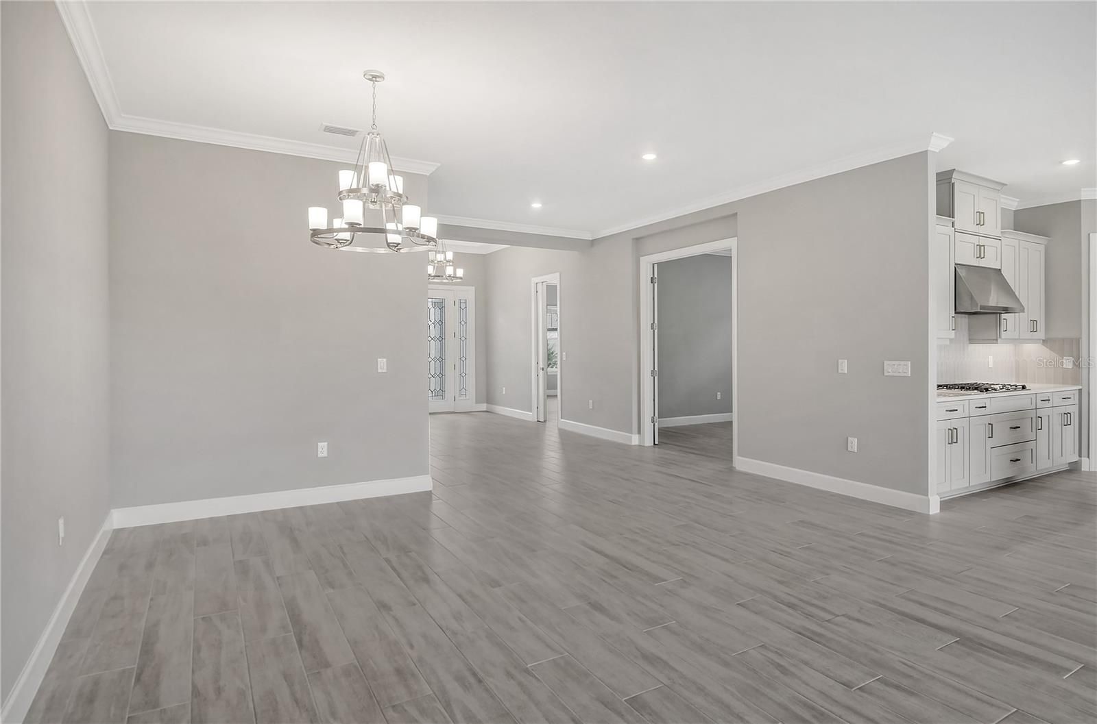 - Crown Molding, High Ceilings, Kitchen/Family Room Combo, Living/Dining Room, Open Floorplan, Tray Ceiling(s), Walk-In Closet(s), Window Treatments