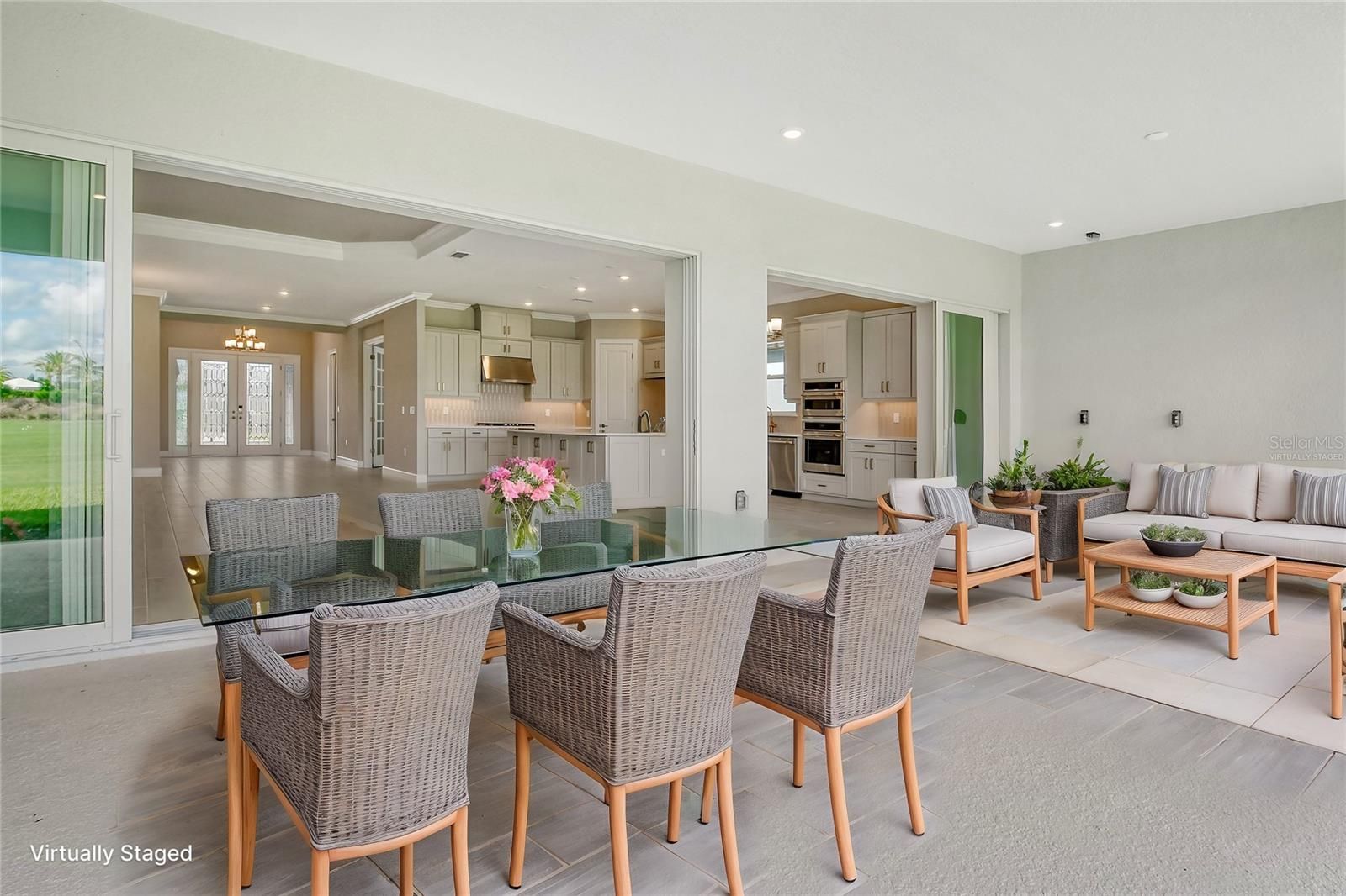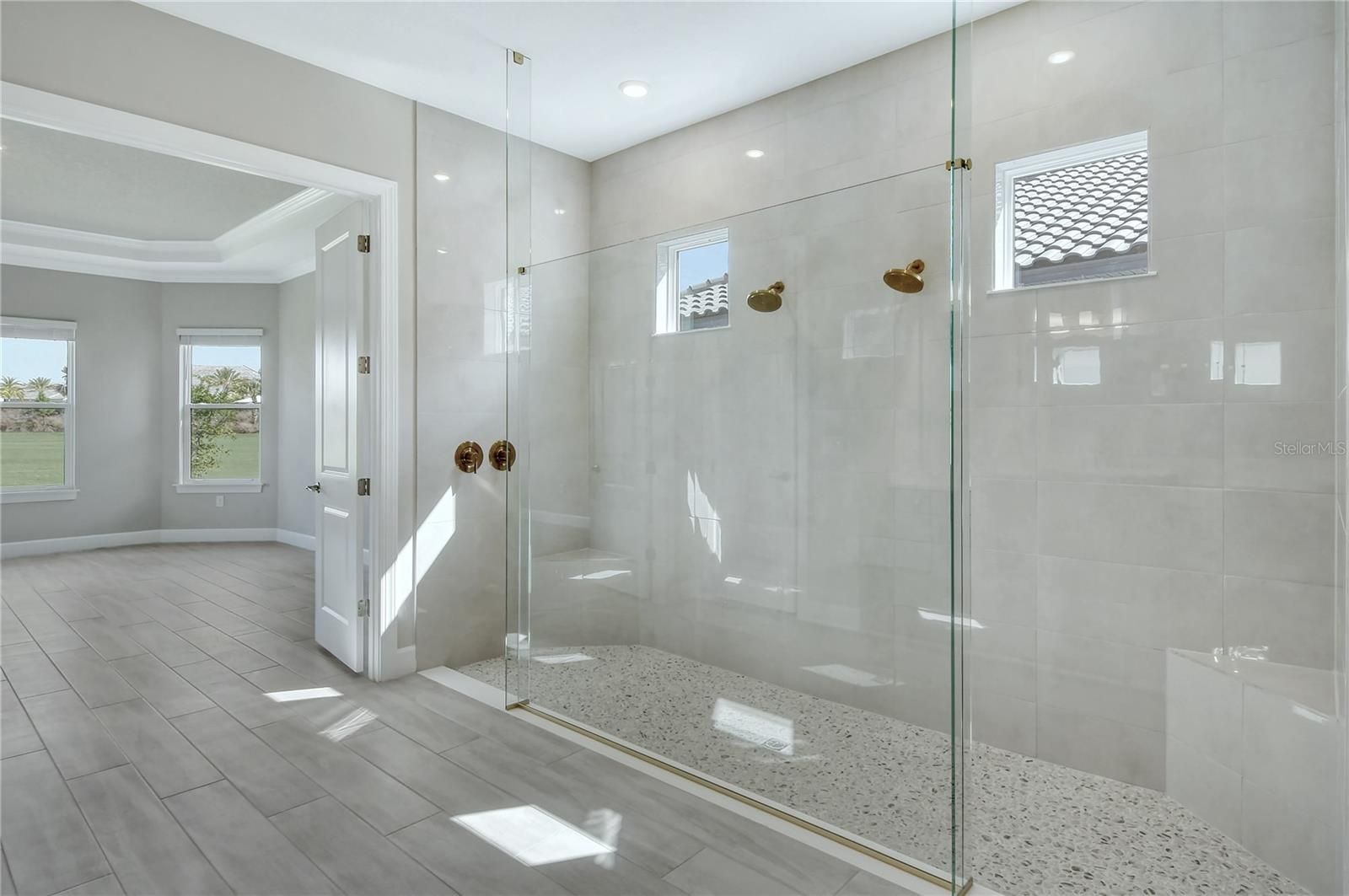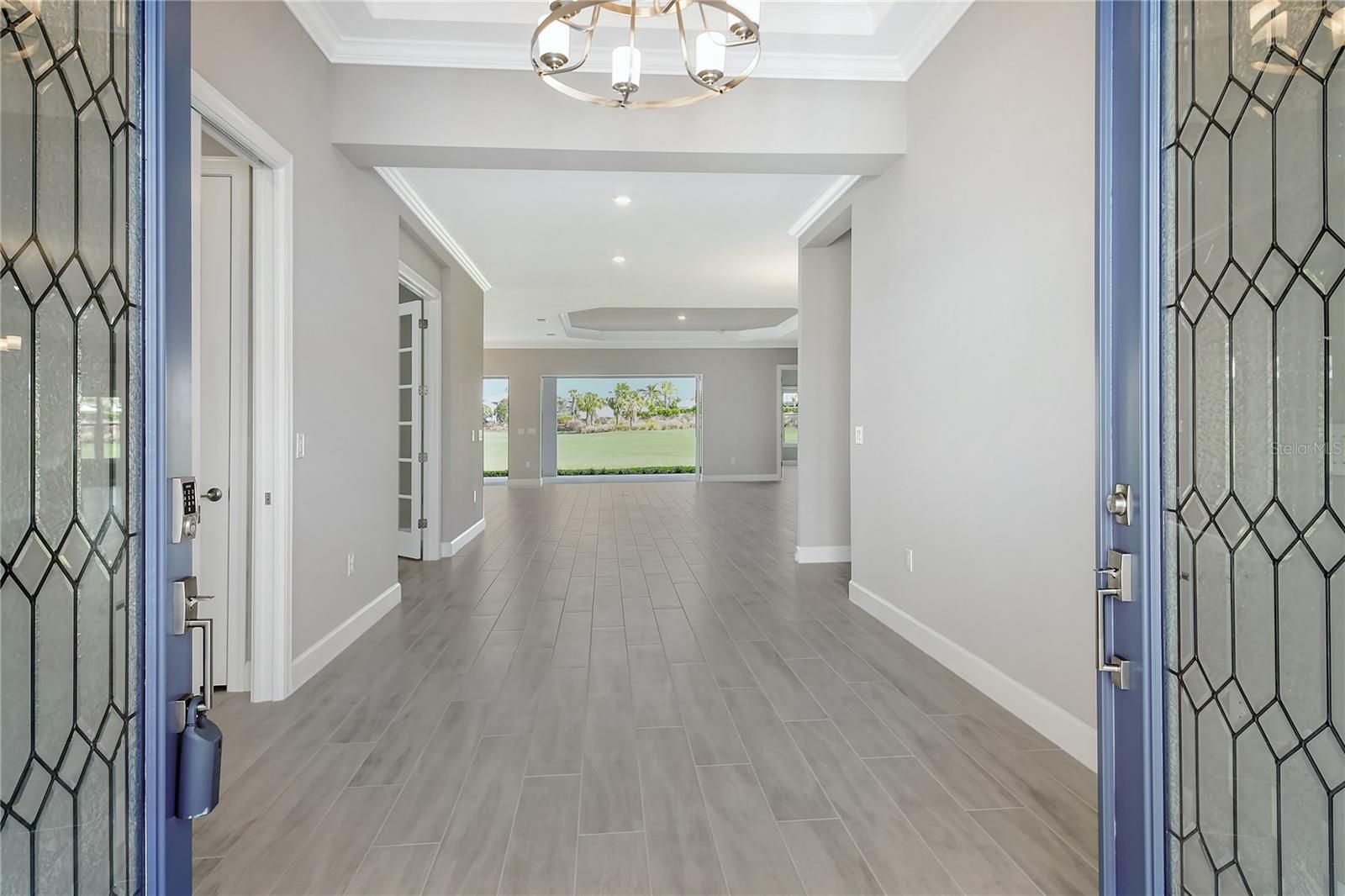 One or more photo(s) has been virtually staged. Step into unparalleled luxury of the GOLF DEEDED Palazzio floor plan offering 3-bedrooms, 3-bathrooms and den where elegance meets thoughtful functionality. Nestled in a prime location with stunning golf course views, this residence offers a serene lifestyle in a meticulously crafted space. Enter through the grand double doors and immediately be greeted by gleaming porcelain tile floors and sophisticated tray ceilings that accentuate the spacious, open floor plan. The 8-foot doors throughout enhance the airy feel, creating a seamless flow from room to room. At the heart of the home, a chef's kitchen awaits, featuring upgraded cabinetry, a GE Café appliance package, and ample counter space – perfect for both entertaining and everyday culinary adventures. Each room is bathed in natural light, thanks to hurricane-resistant windows that provide both safety and panoramic views of the lush greens beyond. The master suite is a retreat of its own, offering privacy, a luxurious en-suite bathroom, and direct access to those breathtaking golf views. Two additional bedrooms and well-appointed bathrooms ensure space and comfort for family and guests alike. With a tandem garage for added convenience and extra storage, this home is not only a sanctuary but also a masterpiece in modern luxury. Every detail has been carefully selected to offer the finest in both aesthetics and durability, promising a lifestyle of comfort, safety, and effortless elegance in Azario community with its plethora of amenities.