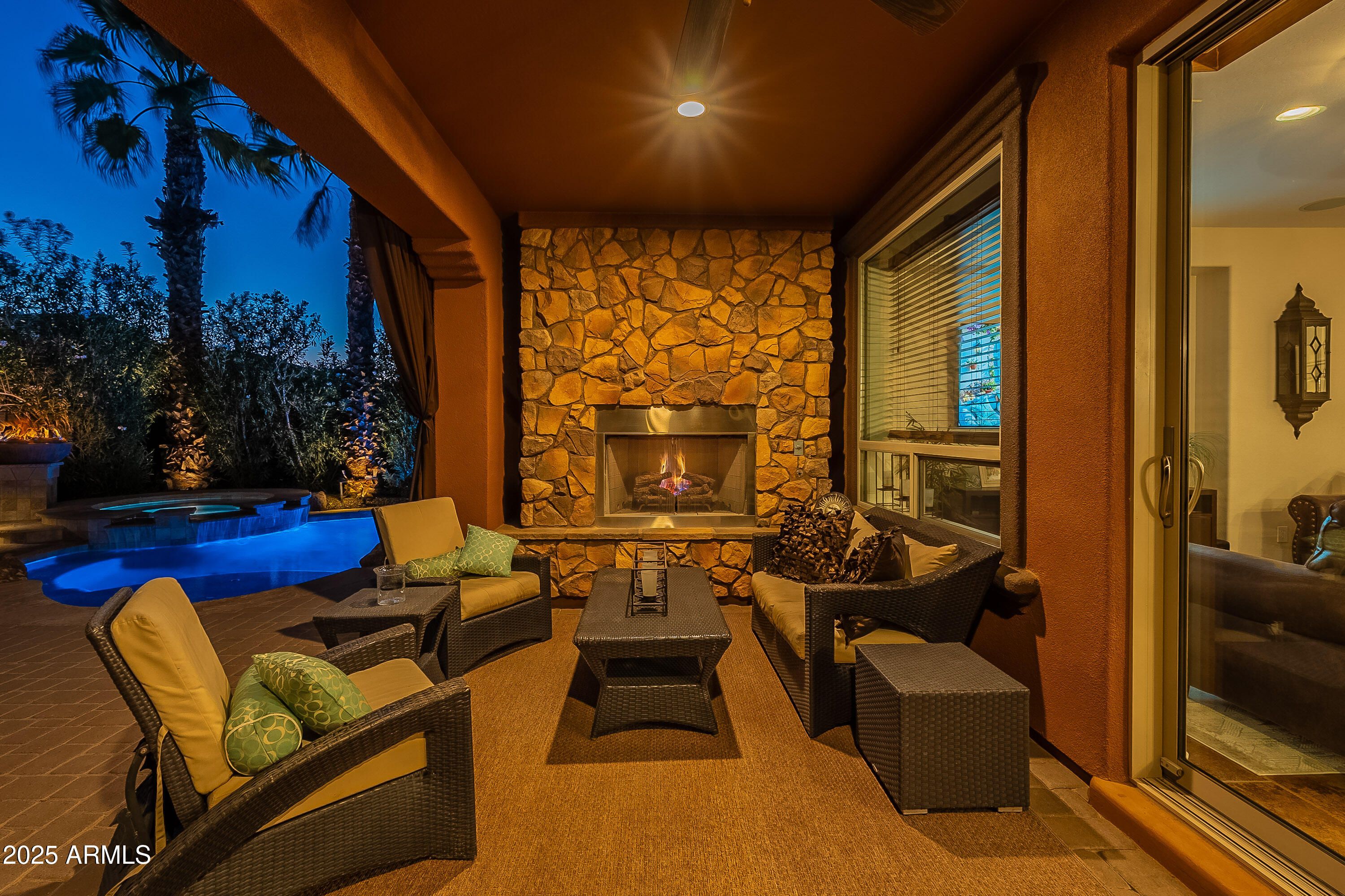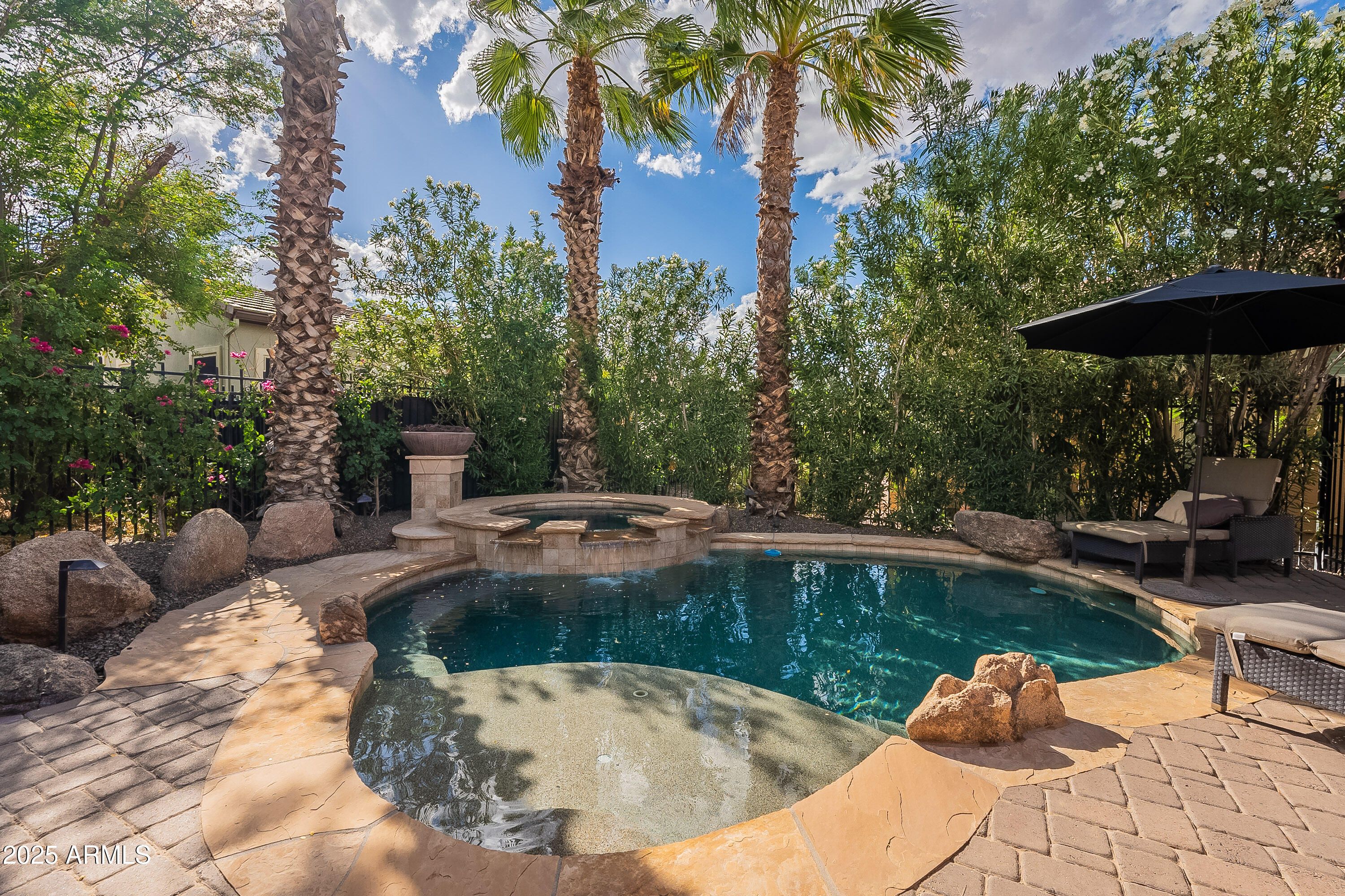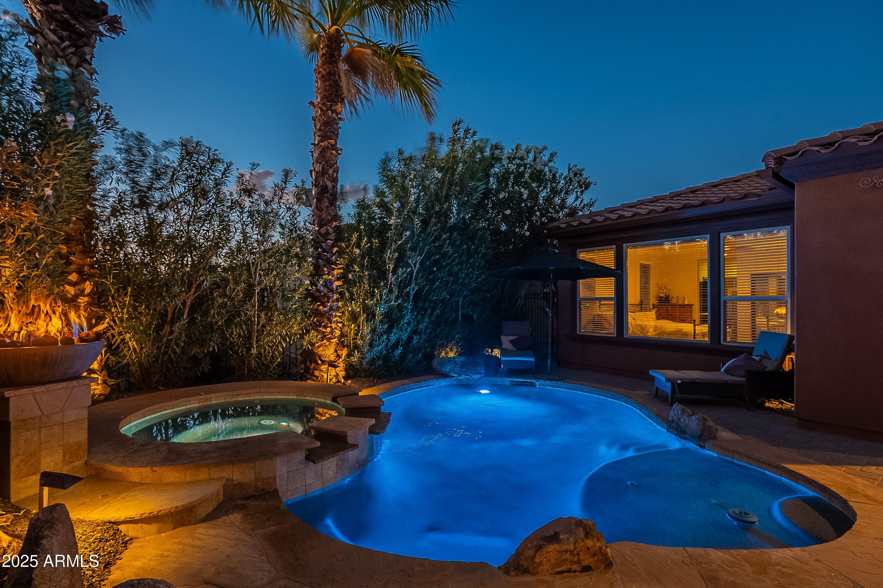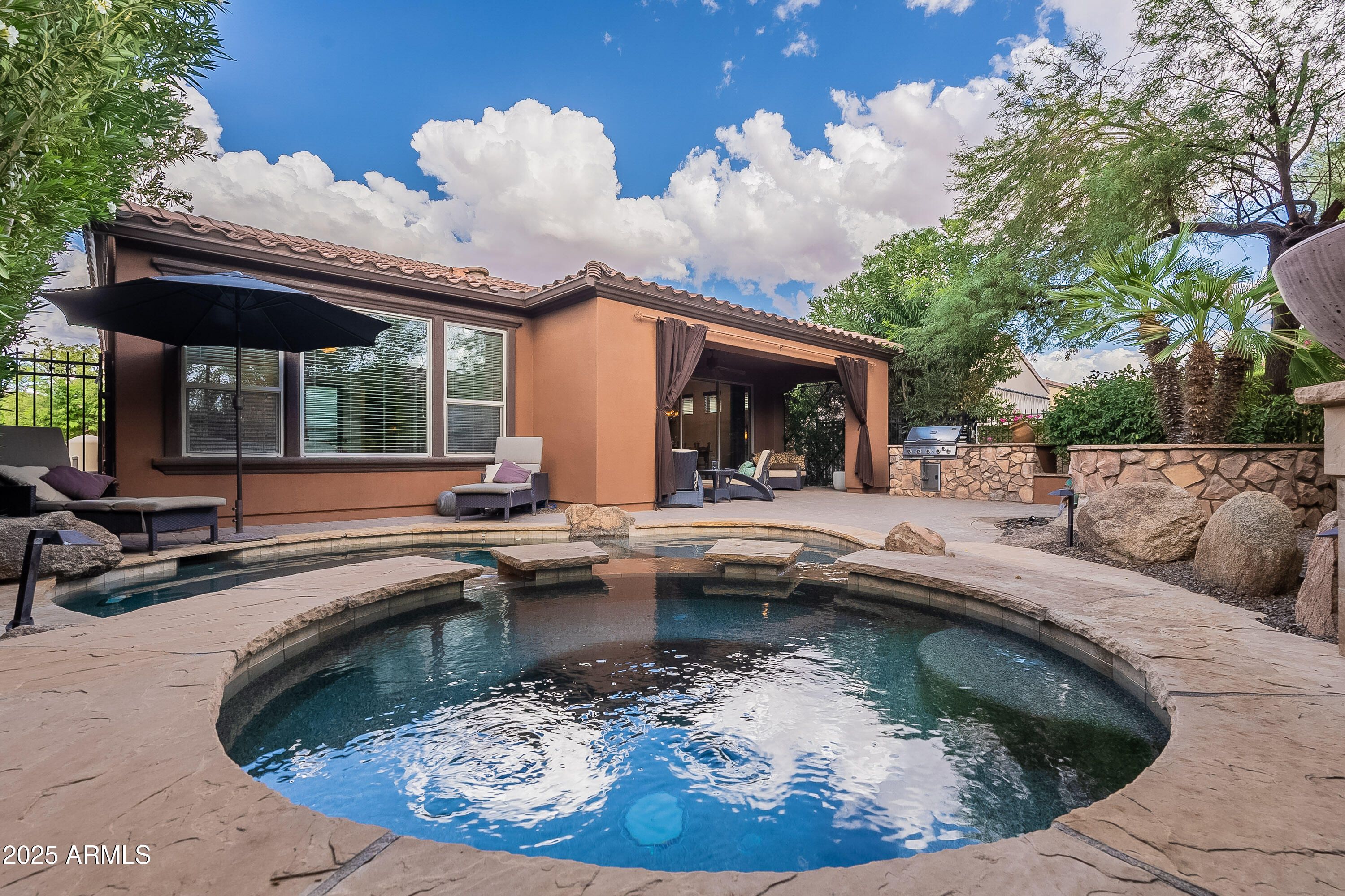 Welcome to this gorgeous San Tropez model, WITH A GOLF MEMBERSHIP (ASK FOR DETAILS) in the gated community of Encanterra® Country Club. This home features fresh paint, stylish new light fixtures, and new Samsung appliances. The kitchen is designed for entertaining with a gas cooktop, beautiful wood cabinetry, granite countertops, and an open layout. Relax in your private backyard oasis with a sparkling pool, built-in BBQ, outdoor fireplace, soothing fountain, and swaying palms. Inside and out, this home blends comfort with resort-style living. Enjoy world-class amenities including championship golf, two clubs with restaurants and bars, multiple pools, fitness center, spa, pickleball, tennis, and a vibrant calendar of social events.