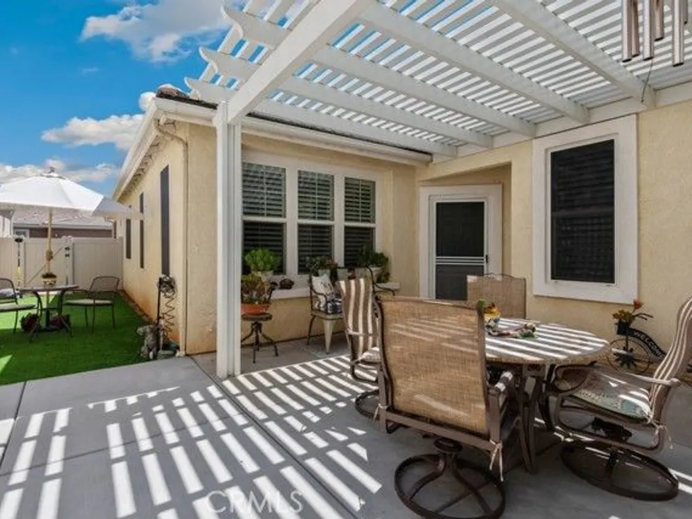 Resort-style living awaits in this beautiful home in the guard-gated 55+ community of Four Seasons by K. Hovnanian in Beaumont. Enjoy tree-lined streets, manicured landscaping, and exceptional amenities including a clubhouse, gym, pool, spa, tennis courts, and scenic walking trails. This charming home features a welcoming pergola-covered front patio, a cozy living room with fireplace, wood shutters, and laminate flooring throughout. The kitchen boasts a spacious island with bar seating, pantry, and adjoining dining area. A flexible office/den, full guest bath, and guest bedroom offer versatile living space. The private primary suite includes a walk-in closet and dual sink vanity. Attached 2-car garage completes the home. Move-in ready and designed for comfort in a serene, amenity-rich setting.