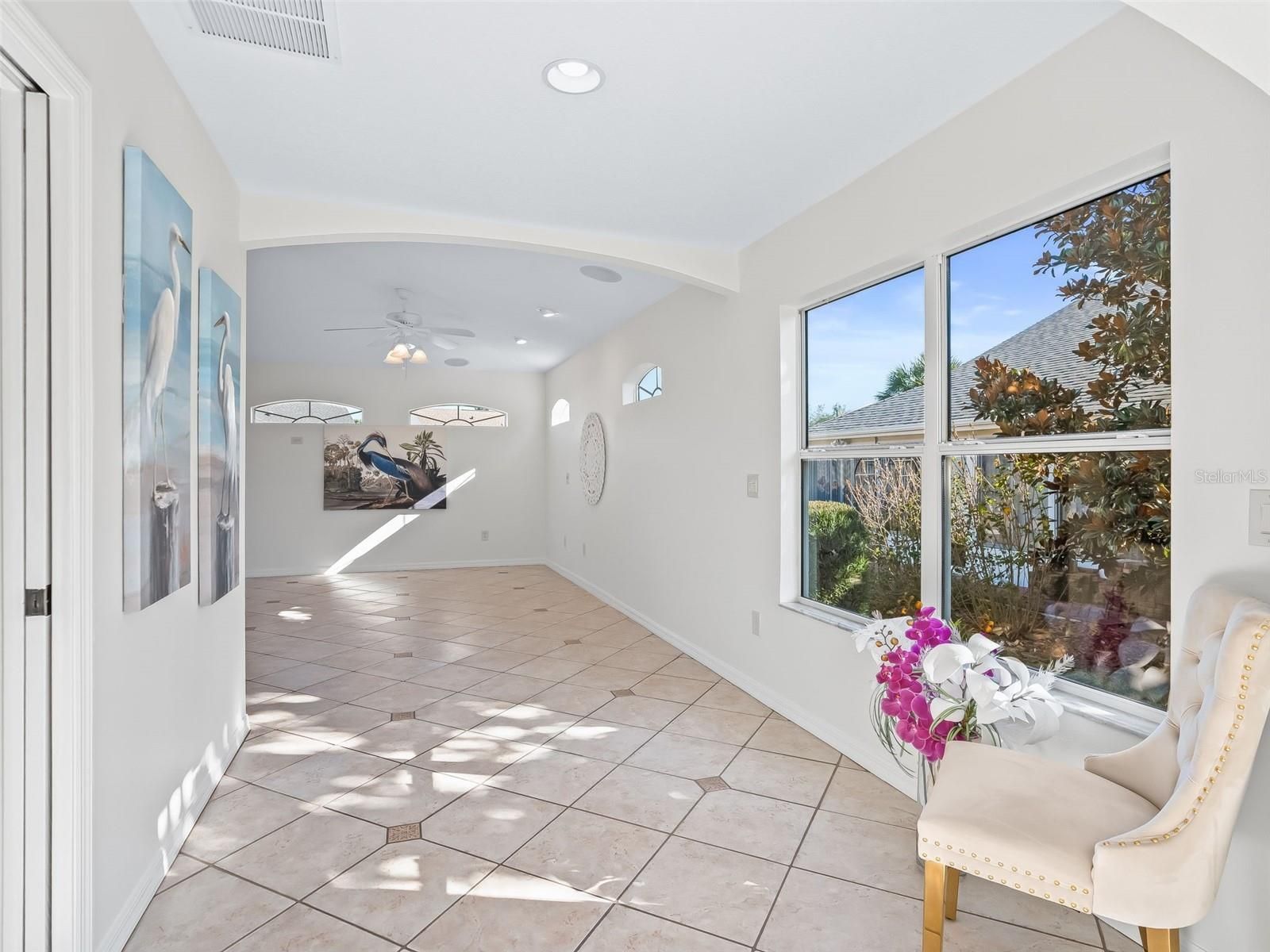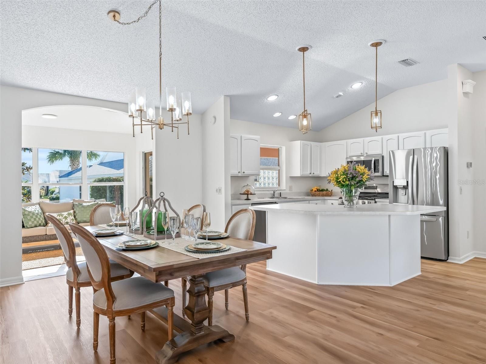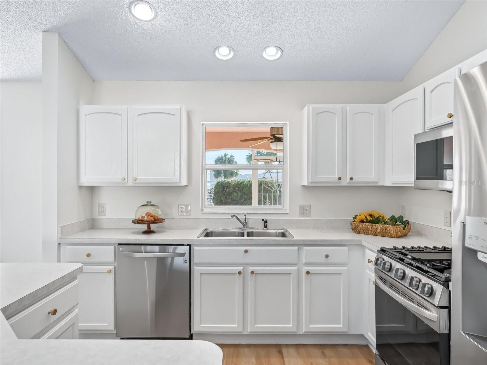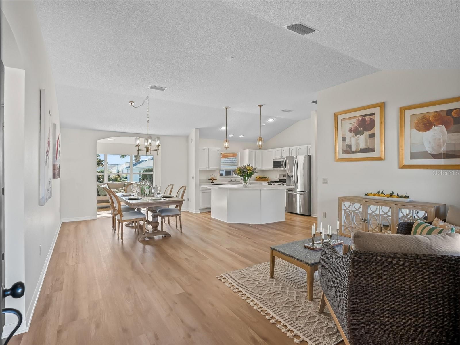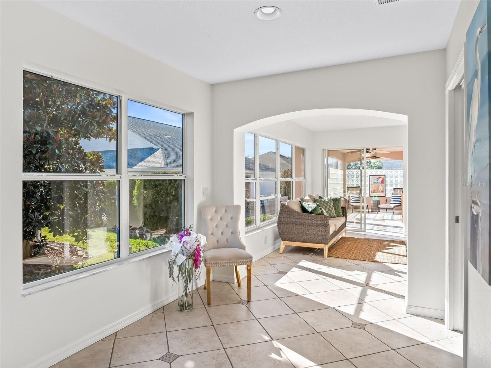 Wow! A Glenwood fully UPDATED & MOVE-IN READY MUST SEE HOME! And, a 5 minute golf cart ride to GOLF! TENNIS! PATIO DINING and spectacular Florida sunsets. NO BOND!!!! What's more, this designer Azalea/Maple model boasts over 2,000 sq ft with a custom 400 sq ft (approx) BONUS ROOM perfect for entertaining, gaming, big screen TV, quilting, art or crafting studio, music studio or grande piano!. Prime corner lot just minutes to the awarded Glenview Golf & Tennis Country Club. NEW PAINT (interior) and NEW Luxury Vinyl FLOORING (2026)! The open living/dining/kitchen combo is bright with vaulted ceilings, and large windows in the Florida room bring in the sunshine. No carpet! Guests will enjoy added privacy of the split floor plan. A large lanai offers Florida living at its best. The owner's ensuite offers 2 master closets and double sinks. Ensuite opens to the lanai with sliding glass door. Other upgrades: NEWER ROOF (2021) NEWER KITCHEN APPLIANCES (2021) gas oven, NEWER A/C (2022) NEWER exterior paint (2023) NEWER gutters (2021). NEWER HOT WATER HEATER (2023). Extra cabinetry in laundry room & garage and solar tube. Home is centrally located between vibrant Spanish Springs Square and the serene Lake Sumter Landing Market Square. Minutes away from the Savannah Entertainment Center and near First Responders Rec Center, VA Clinic and convenient to retail shopping, banking and medical offices at Southern Trace Shopping Plaza. Enjoy live music, cocktails, patio dining, driving range, golf & tennis minutes from your front door at Glenview Country Club! Enjoy The Villages lifestyle at nearby squares and recreation centers! This custom home has it all! All measurements are approximate and to be verified by buyer.