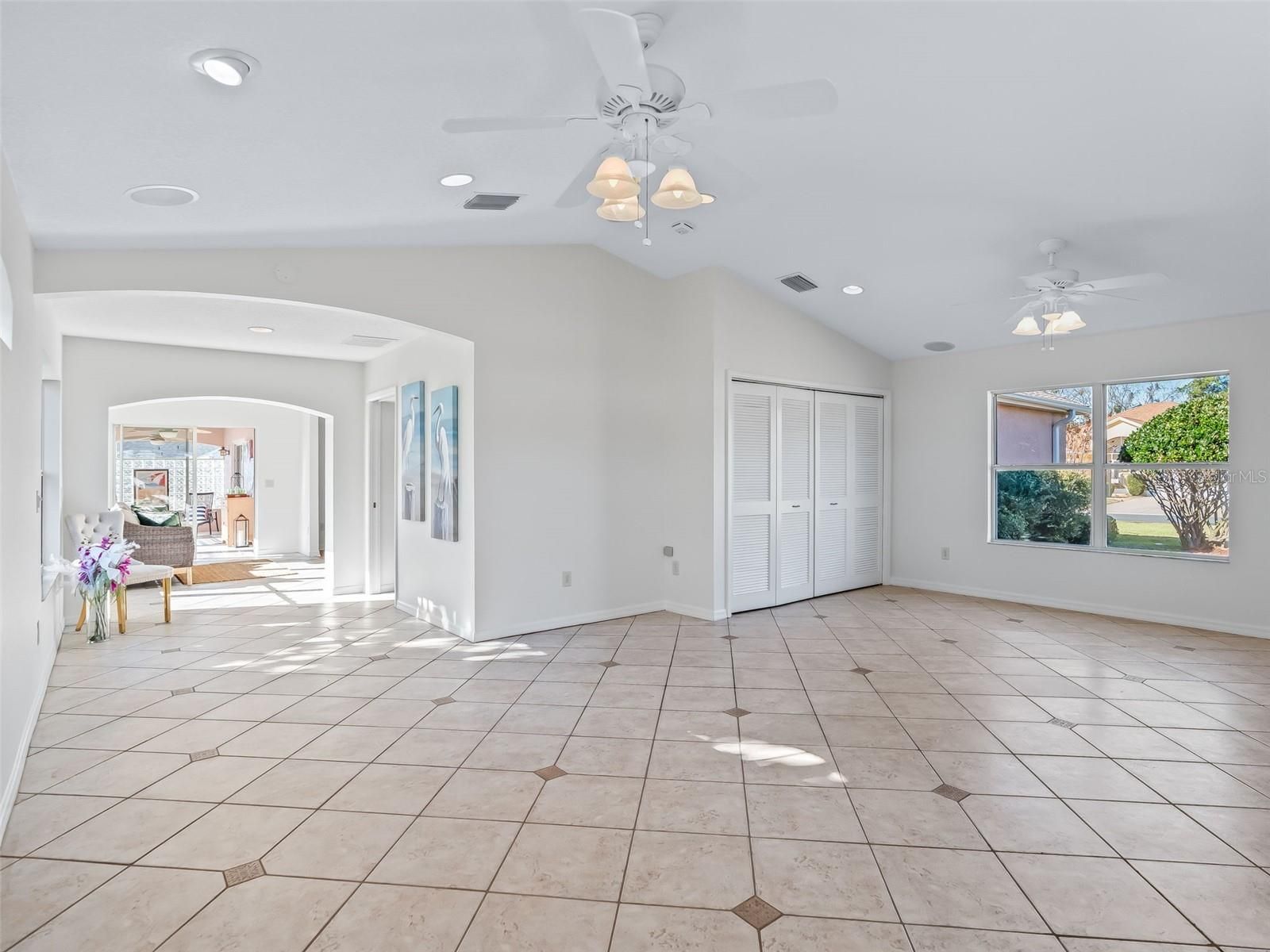 - Ceiling Fan(s), Central Vacuum, Living/Dining Room, Open Floorplan, Main Level Primary, Thermostat, Vaulted Ceiling(s), Walk-In Closet(s)