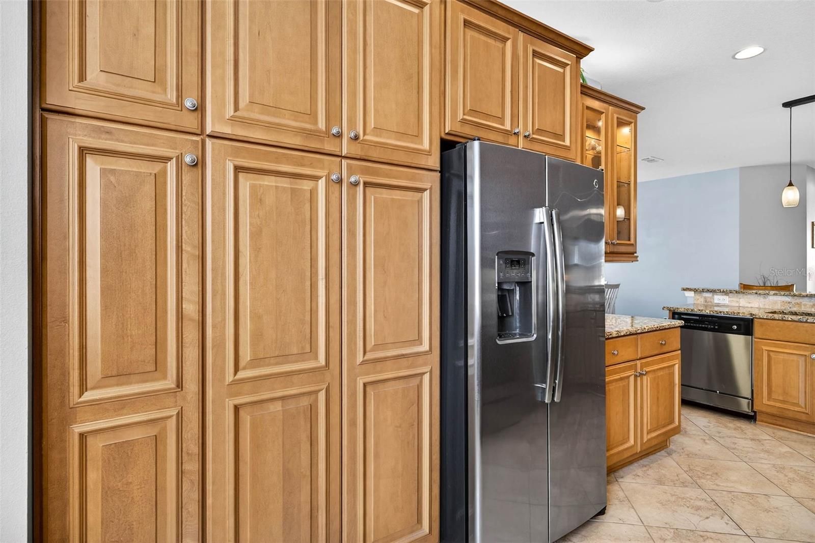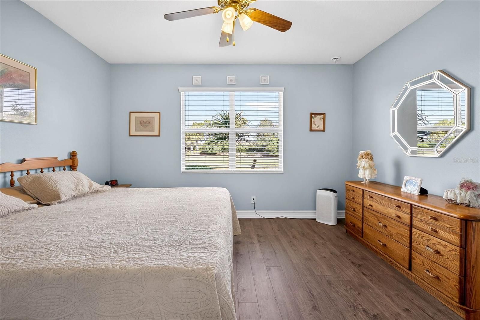 Enjoy serene pond views from this Popular Augusta Model; 2 BR plus Den (optional 3rd BR) residence featuring durable ceramic tile and luxury vinyl plank flooring throughout. The upgraded kitchen includes granite countertops, a tile backsplash, 42" upper cabinetry, an accent glass-door display cabinet, and both upper and lower cabinet lighting for an elegant finish. The primary suite, with a spacious bath featuring separate sinks and a large walk-in shower, offers excellent privacy thanks to the split-bedroom layout. Additional highlights include a tile roof, paved driveway and lanai, and stylish architectural details. A welcoming, low-maintenance home with modern upgrades and plenty of natural light—perfect for comfortable everyday living and entertaining. Start living the dream today in the Valencia Lakes community with amazing amenities like a 40,000 SF clubhouse, 24-hour fitness center, fitness classes, clubs, events, and concerts in the large social hall, game rooms, sauna/spa pools, and softball fields. The Magic of Orlando is only 88 miles away. Now is the Best Time to buy in Tampa Bay, Florida. Live where others dream to vacation.