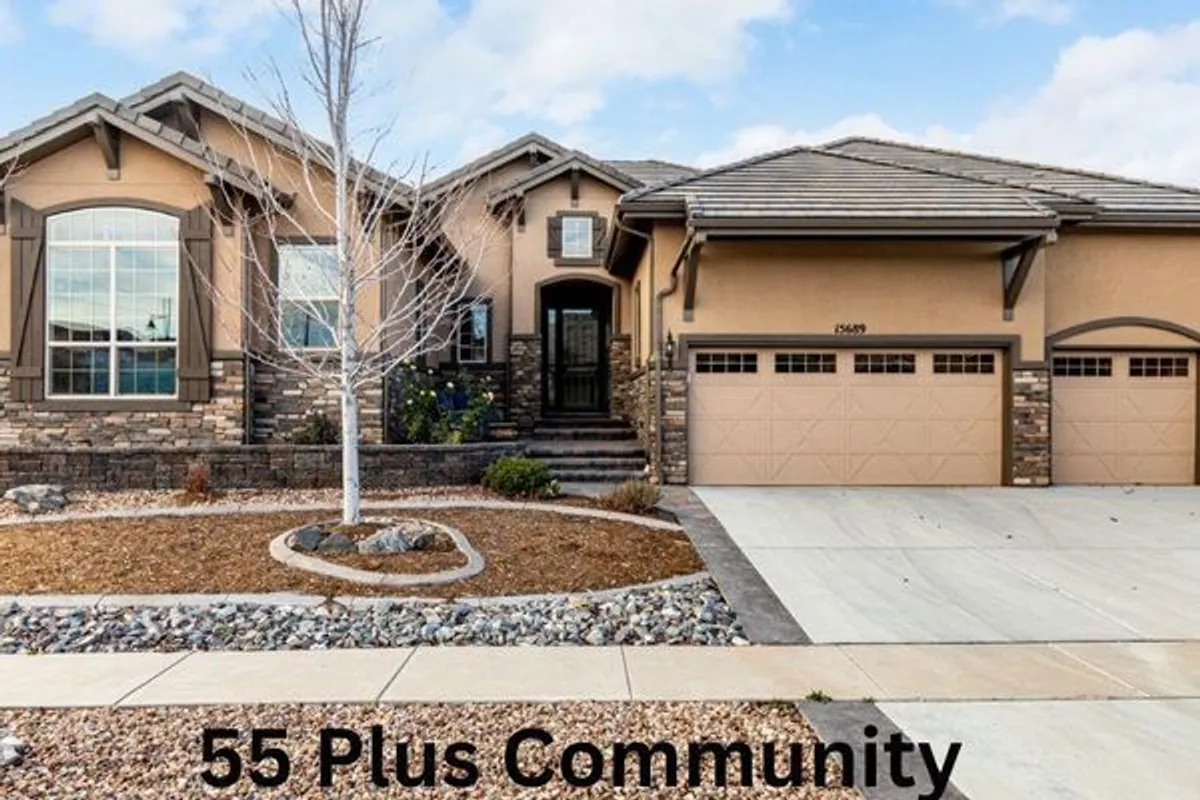 Rare opportunity to own a sought after Toll Brothers Montana Model — a spacious ranch layout with walk out basement on corner view lot! This remarkable 3-bedroom, 4-bath home showcases the largest main-floor plan in this 55 plus community and offers exceptional design, craftsmanship, and livability. A corner, fully landscaped lot with excellent views of the mountains that backs to open space. Step inside to find rich hardwood flooring, spacious rooms with tall beamed ceilings, and abundant natural light throughout. The gourmet kitchen impresses with a large center granite island featuring upgraded solid wood cabinetry with under cabinet lighting, a premium vent hood, and high-end stainless appliances. Enjoy casual meals in the sunny casual dining nook. The spacious family room, accented by wood beams and upgraded lighting, opens to a covered deck that offers panoramic mountain views. The luxurious main-floor primary suite and convenient main-level office make everyday living effortless. The finished walkout basement offers you the opportunity to customize to your needs and features a huge recreation and game area or family area, two large bedrooms, bath with walk in shower and a generous storage space. Additional highlights include a structural basement floor, large 3-car garage, xeriscaped yard, stamped concrete walkway, upgraded window coverings and drapes, and a full laundry area with washer, dryer and utility sink. The professionally landscaped yard has very little maintenance with hardscapwd areas, planting beds and ever green lawn turf. No mowing required. The lower level walkout basement patio even has a special fenced off area for the doggies to play and be secure. This Premier 55 plus community with rec center, pools, walking trails and ponds offers a serene lifestyle. Its like living in a resort, easy commute to Boulder, Erie or Denver. virtual tour https://www.homes.com/property/15689-columbus-mountain-dr-broomfield-co/d9egdjvk72k43/