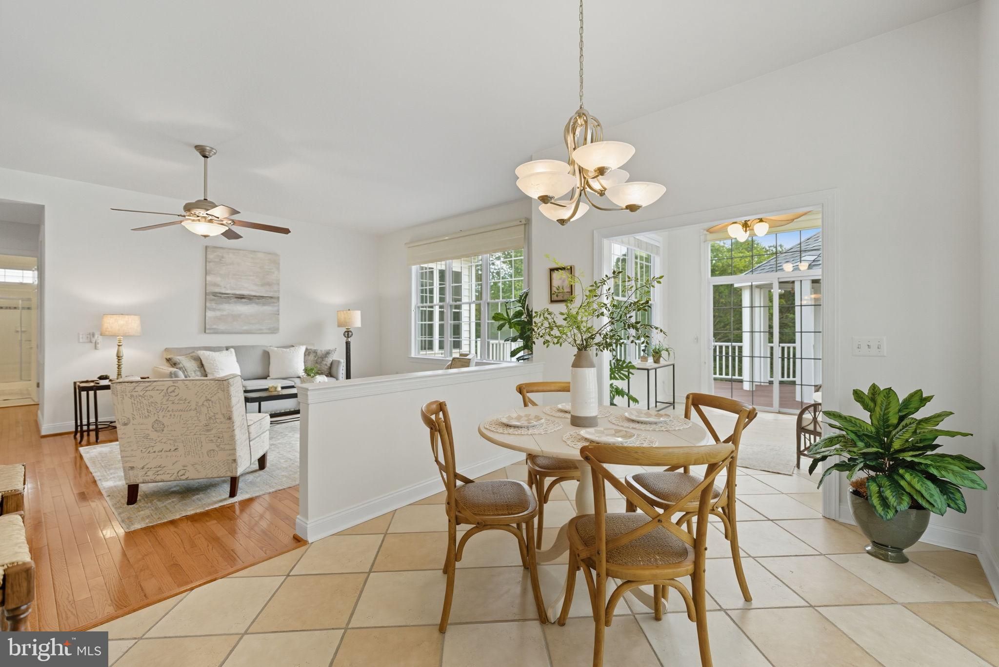 Are you ready to live in the sought-after community of Regency at Dominion Valley? This vibrant, active adult neighborhood offers an abundance of amenities, including indoor and outdoor pools, a state-of-the-art fitness center, scenic walking trails, social clubs, and an 18-hole championship golf course designed by Arnold Palmer. Step inside and you will immediately appreciate the 10-foot ceilings that enhance the spaciousness and natural light throughout the main level. Beautiful hardwood flooring and a fresh coat of paint create a warm and elegant atmosphere in every room. The kitchen features granite countertops, high-quality cabinetry with soft-close drawers and upgraded hardware, and a charming bay window that fills the space with light, perfect for your morning coffee. What truly sets this home apart are the thoughtful expansions designed with comfort and versatility in mind. The expanded family room serves as the heart of the home, offering an inviting, open layout for gatherings. A bright sunroom addition provides a serene retreat, ideal for relaxing or reading. Downstairs, the generously finished and expanded basement offers endless possibilities. The expanded garage adds convenience, with extra space for vehicles or storage. Outdoors, this home is set on a PREMIUM lot which backs to lush greenery, providing peaceful, scenic views and a true sense of privacy. The expansive outdoor deck is a true highlight of the home, built with Azek TimberTech tongue and groove composite flooring that offers a sleek look with minimal upkeep. Designed for both beauty and durability, this massive outdoor space also features a charming gazebo, perfect for relaxing in the shade, entertaining guests, or enjoying peaceful mornings surrounded by nature. A spiral staircase adds both style and function, connecting the elevated deck to the paved backyard patio, creating a seamless flow between indoor and outdoor living. Additional upgrades include a brand-new roof installed at the end of 2023, offering peace of mind and long-term value as well as the HVAC replaced in 2019 with a warranty until 2029. If you’re seeking a high-quality, thoughtfully upgraded and expanded home in the beautiful, amenity-rich community of Regency at Dominion Valley, don’t miss the opportunity to make this one yours!