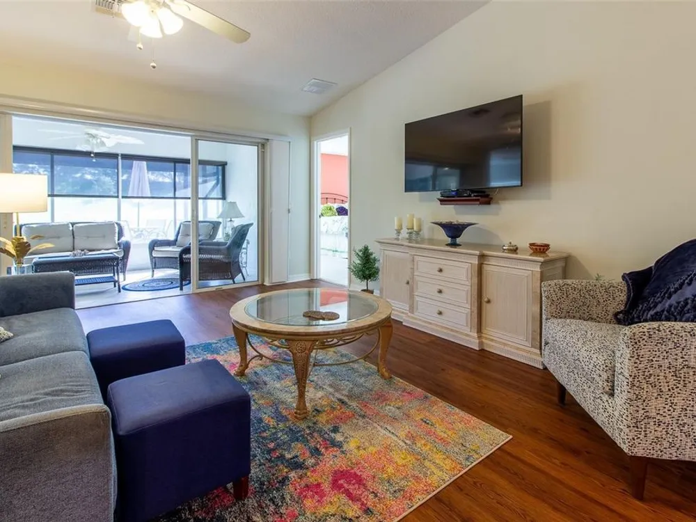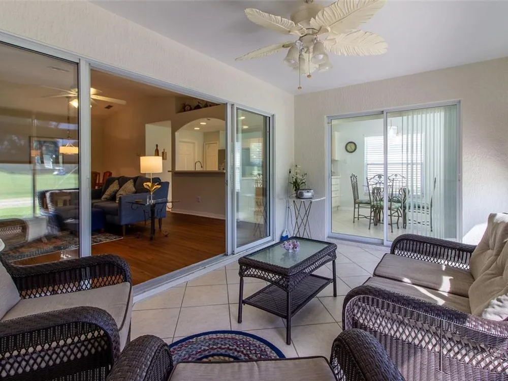 NEW PRICE!!! Welcome to this Melbourne model, turnkey home in the desirable, gated 55+ golf community of Summerglen—where comfort and lifestyle come together in perfect harmony. This beautiful property is an income-producing opportunity. The home is currently leased for the seasonal returning tenants this winter season, with a confirmed rental period from December 1st, 2025 through April 30th, 2026, offering the next owner immediate built-in income potential. From the moment you arrive, this beautifully landscaped property captivates with its striking curb appeal, enhanced by a welcoming screened front entry that invites you to step inside and experience all the warmth and charm of this home. Inside, you'll find an open and airy floor plan filled with natural light, soaring ceilings, and seamless flow from one living space to the next. The thoughtfully designed kitchen features abundant counter space, bar seating for casual gatherings, and a cheerful breakfast nook surrounded by windows, making every morning feel like a fresh start. The owner’s suite is a serene retreat with a generous walk-in closet and a luxurious ensuite bath featuring dual vanities and a spacious walk-in shower. Just beyond the living area, a peaceful screened-in lanai offers a private outdoor sanctuary, ideal for enjoying a morning coffee or winding down at the end of the day. Additional highlights include a spacious two-car garage and mature, meticulously maintained landscaping that enhances privacy and curb appeal. Located just moments from the community’s outstanding amenities—including a championship golf course, resort-style pool, fitness center, clubhouse, on-site restaurant, and year-round social events—this home delivers not just comfort, but an active lifestyle to love. The HOA fee includes cable, internet, lawn mowing, trash service, and gated security, giving you peace of mind and freedom to enjoy everything Summerglen features. Whether you're looking for your forever Florida home or a smart investment property with seasonal rental income already in place, this exceptional home is a rare find. Don’t miss your chance to own a slice of paradise in Summerglen, in this fully furnished home!