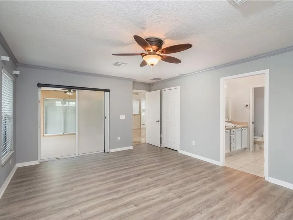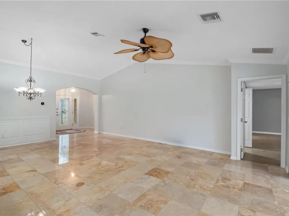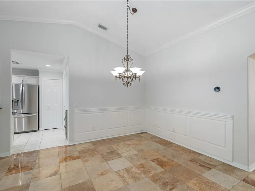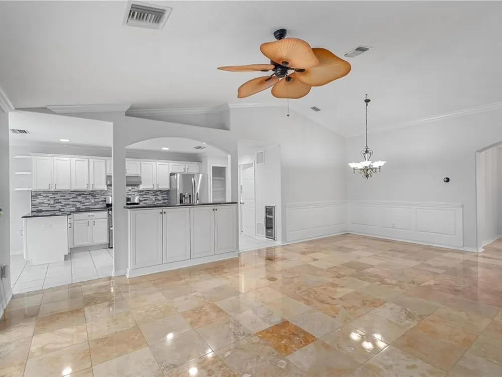 - Ceiling Fan(s), Crown Molding, Eat-in Kitchen, Living/Dining Room, Solid Surface Counters, Vaulted Ceiling(s), Walk-In Closet(s), Window Treatments