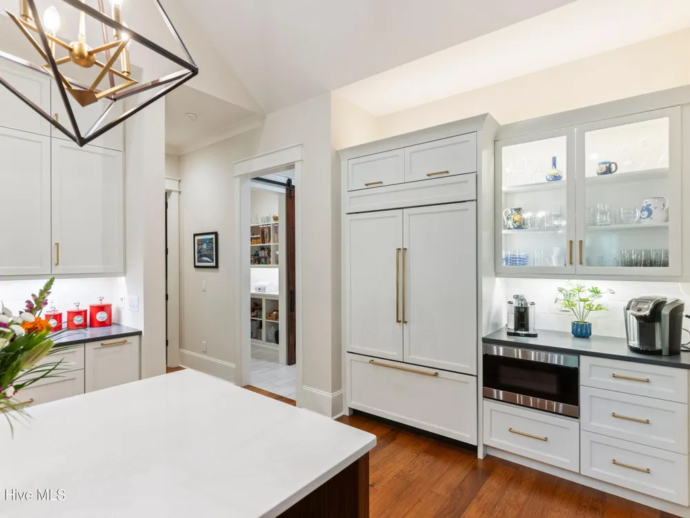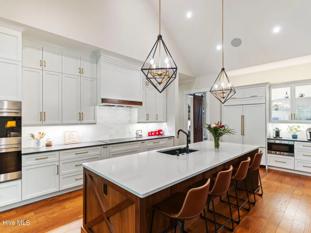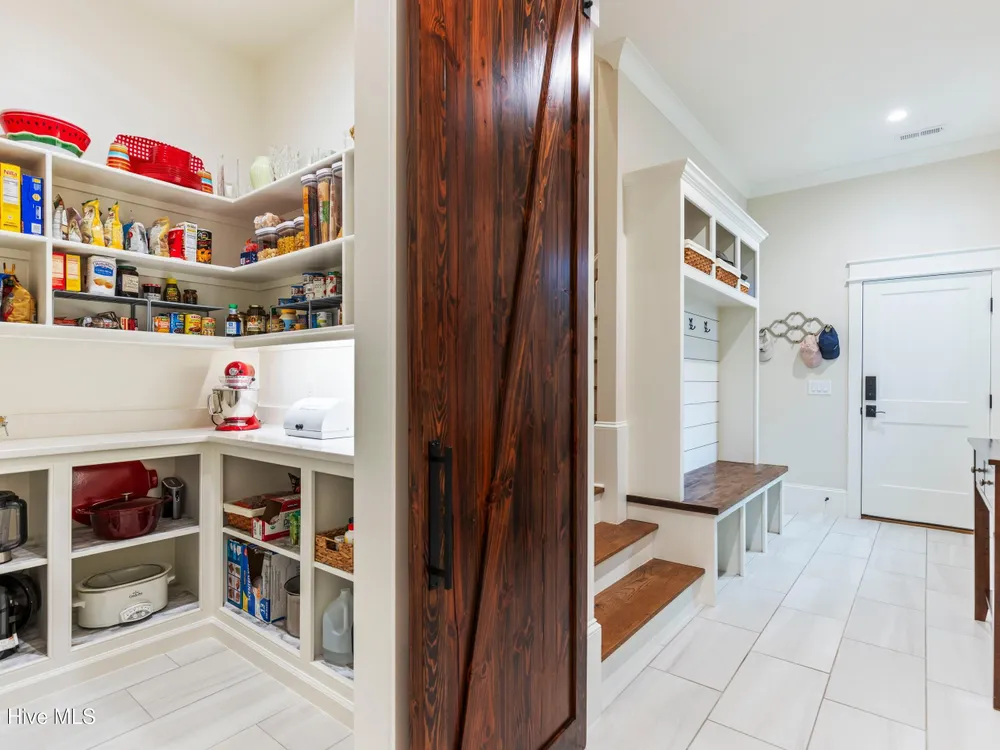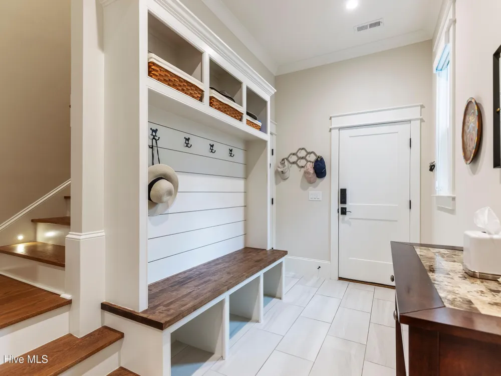- Blinds/Shades, Solid Surface, Whole-Home Generator, Walk-In Closet(s), Walk-in Shower, Vaulted Ceiling(s), Sound System, Entrance Foyer, Pantry, Mud Room, Master Downstairs, Kitchen Island, High Ceilings, Gas Log, Ceiling Fan(s), Bookcases