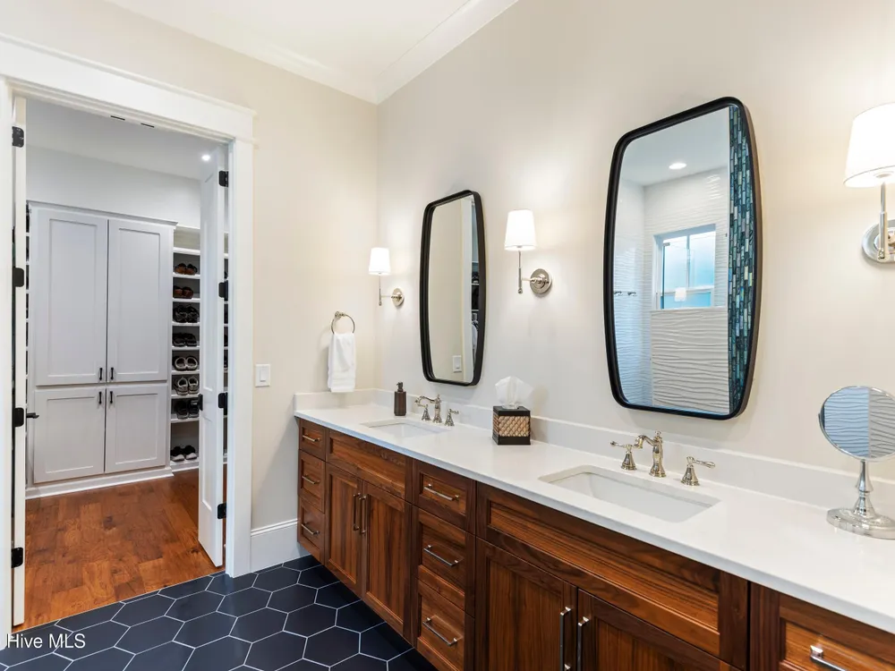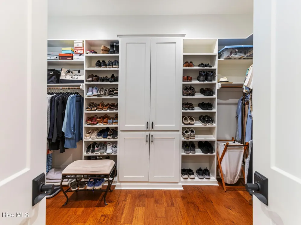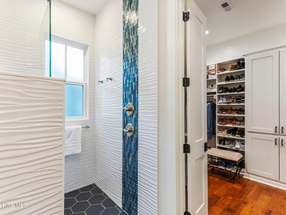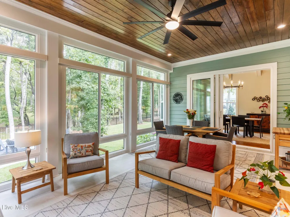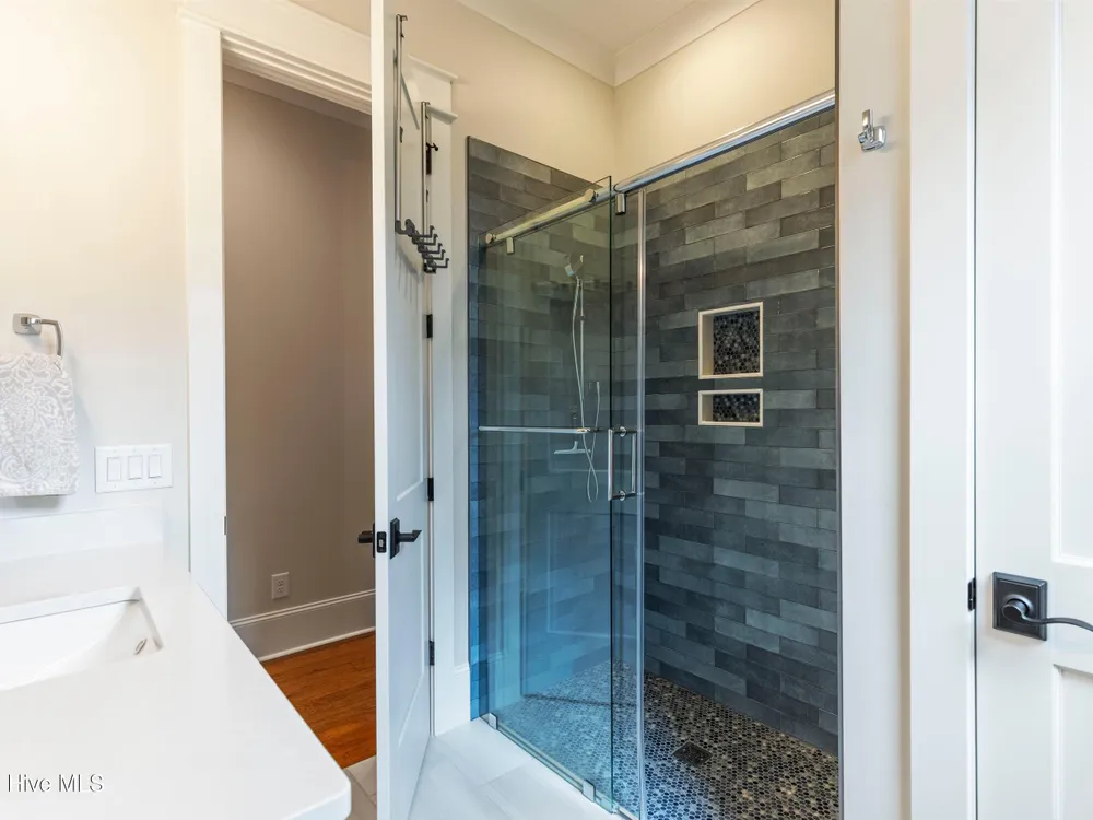 - Blinds/Shades, Solid Surface, Whole-Home Generator, Walk-In Closet(s), Walk-in Shower, Vaulted Ceiling(s), Sound System, Entrance Foyer, Pantry, Mud Room, Master Downstairs, Kitchen Island, High Ceilings, Gas Log, Ceiling Fan(s), Bookcases