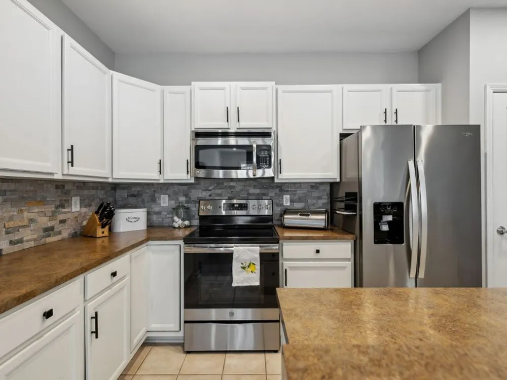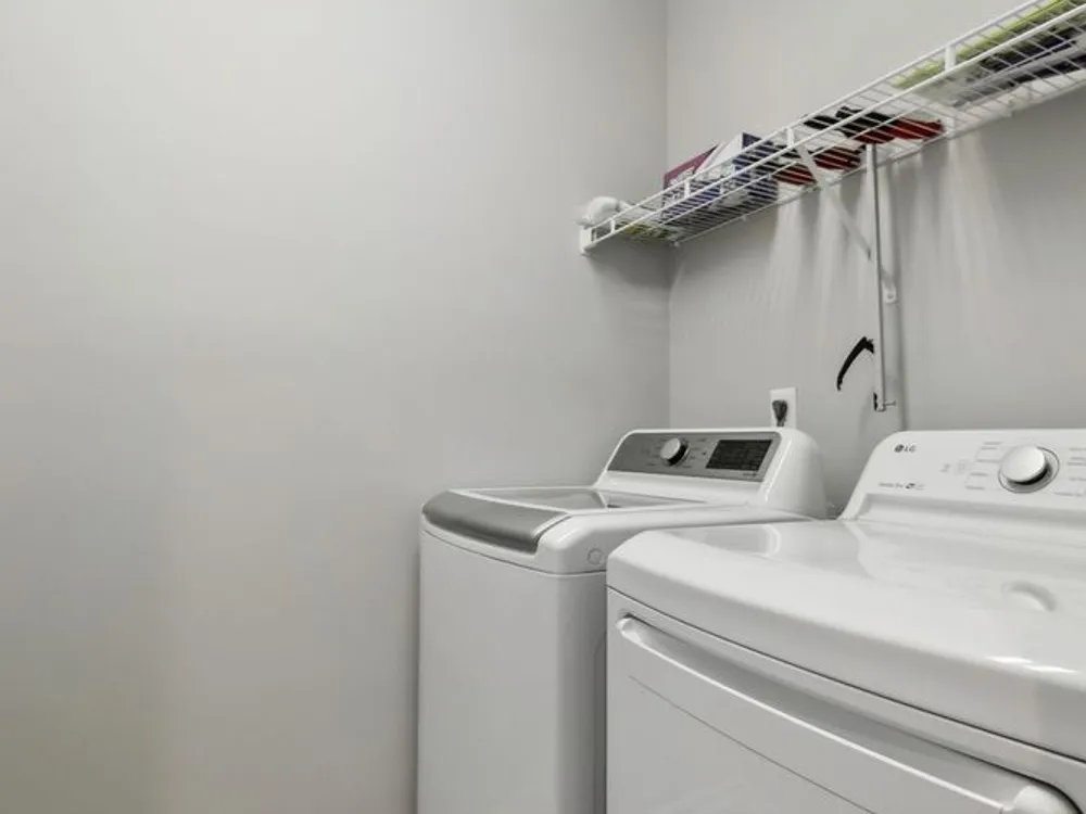 - Electric Oven, Electric Range, Dishwasher, Disposal, Dryer, Microwave, Refrigerator, Stainless Steel Appliance(s), Washer