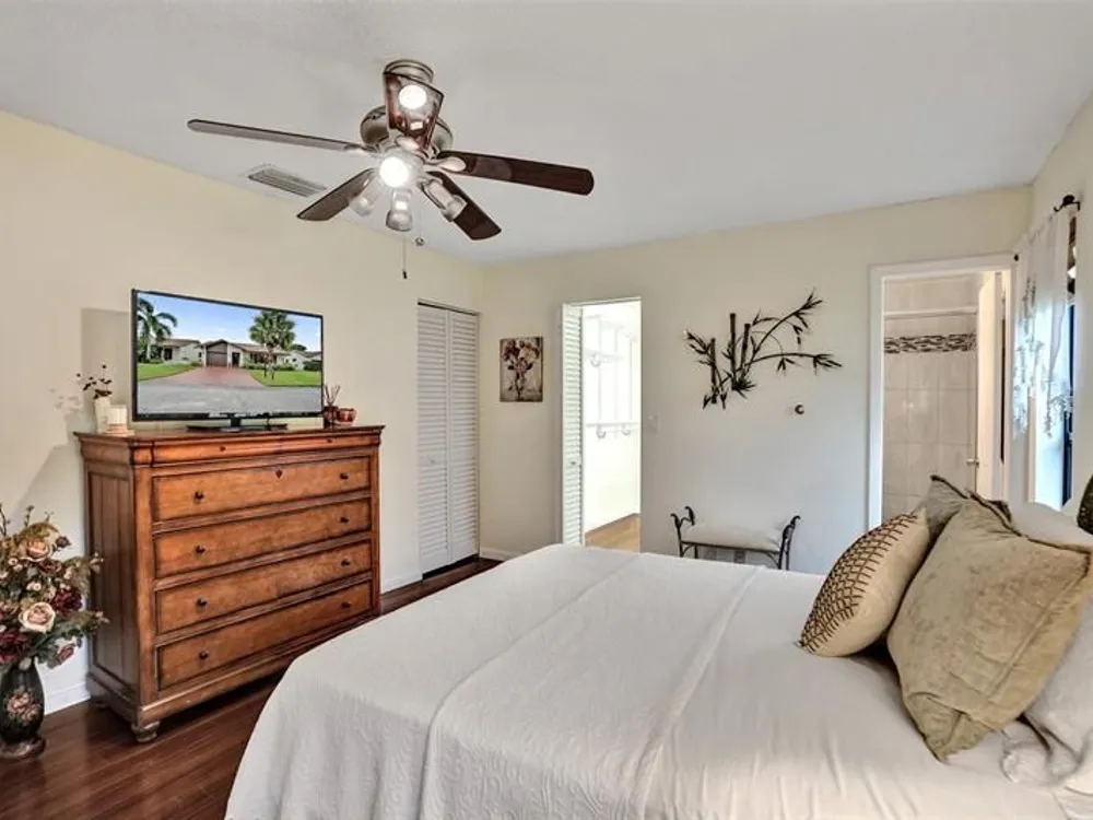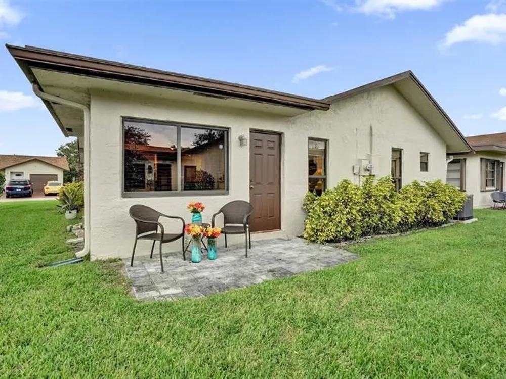 Welcome to your peaceful retreat in the sought after 55+ community at The Meadows of Crystal Lake. This updated 2 bedroom, 2 bathroom home is being offered fully furnished and turn key for an easy and seamless move in. Enjoy your morning coffee on the quiet back patio and watch the sunrise. This home features a split floor plan with formal and informal living areas, impact windows and doors, and the spacious primary offers en-suite bath and ample closet space for easy, organized living. AC is 2024 for peace of mind. Just steps to the clubhouse and pool where you can relax in the sun, grill at the outdoor kitchen, or challenge neighbors to a friendly tennis match.