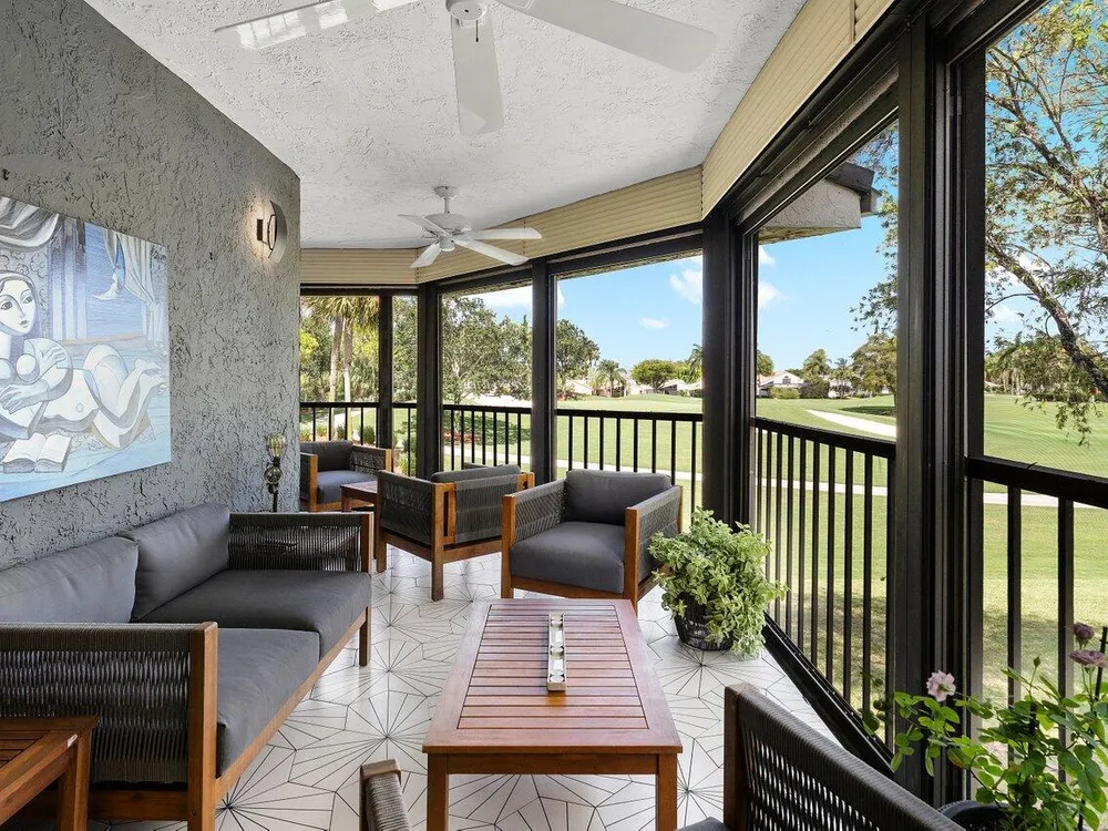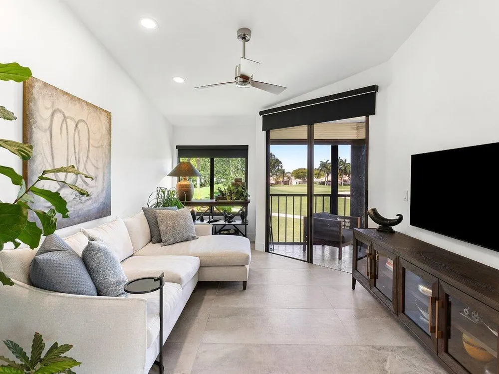 Experience exceptional living in this beautifully renovated 2nd-floor condo, perfectly positioned in the exclusive Gleneagles Country Club, one of Delray Beach's premier communities. Showcasing panoramic views of the Legends Golf Course's first green, this immaculate residence features soaring vaulted ceilings, sophisticated finishes, & an open-concept layout designed for both comfort and style. Offering 2BD + Den (easily convert to 3rd BD) 2 renovated bathrooms, the home blends contemporary upgrades with timeless appeal. Smart home technology includes Alexa-enabled lighting, a Nest thermostat, Ring doorbell, keyless entry, and security system. Additional enhancements such as hurricane-impact windows, updated copper plumbing, and designer touches throughout add to the appeal.
