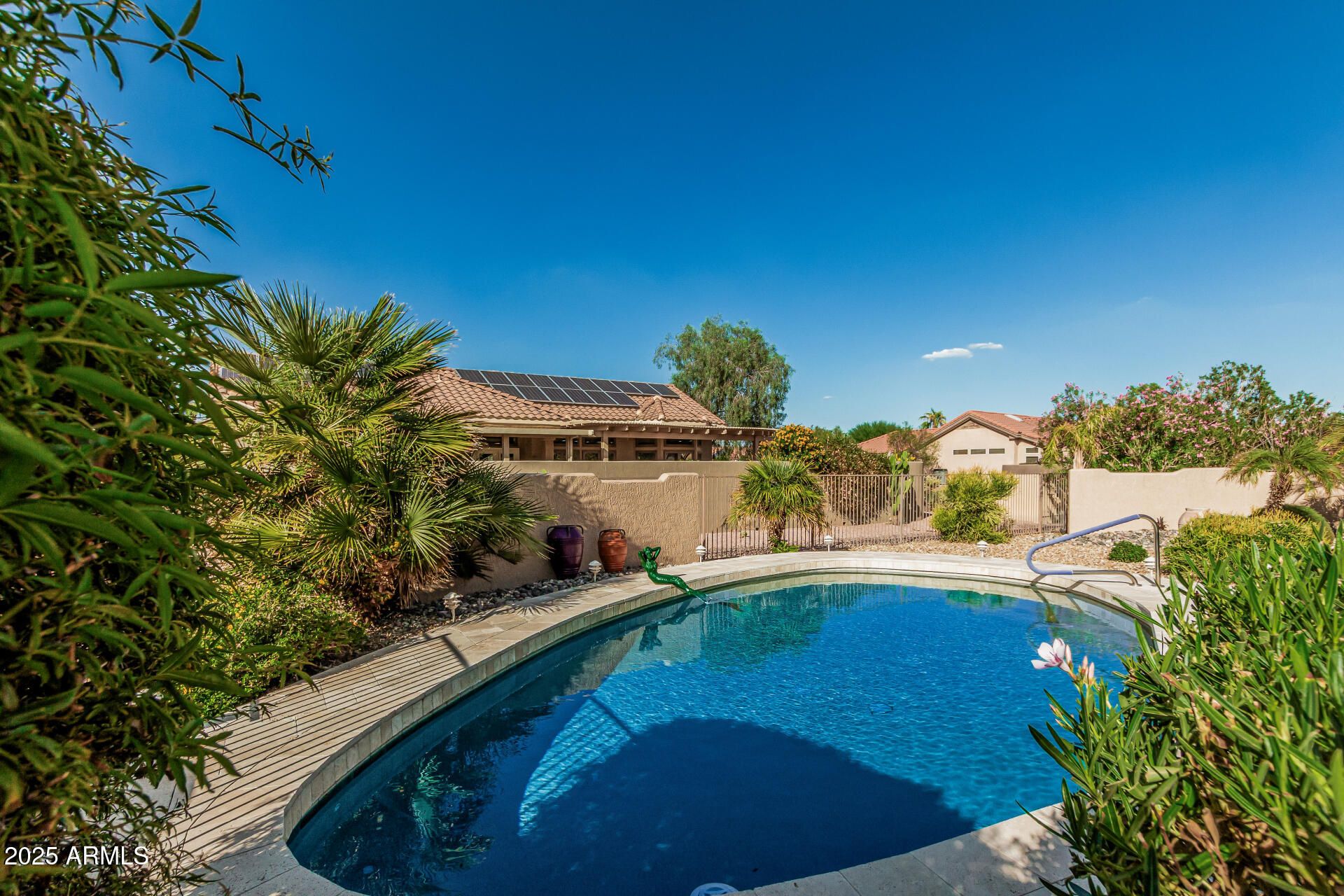 Don't miss a rare opportunity to own this beautiful Chandler home in Sun City West. This popular model sits on a quiet corner lot with tons of upgrades. Steel construction; New roof, new paint outside, stone front, new Anderson windows in the kitchen bay window, office and patio doors. Pavers on the driveway lead you into this dream of a home! Granite countertops throughout; painted cabinets with glass doors; large granite sink; laminate flooring in great room, carpet in bedrooms with designer tile walkways. Newer master shower. Enjoy the beautiful low maintenance 360 sq. ft. play pool with auto clean feature and travertine tile surrounding patio and pool area; wrought iron fencing for privacy. Utility room converted to an office; AC new in 2017. Solar on monthly lease. Shows beautifully