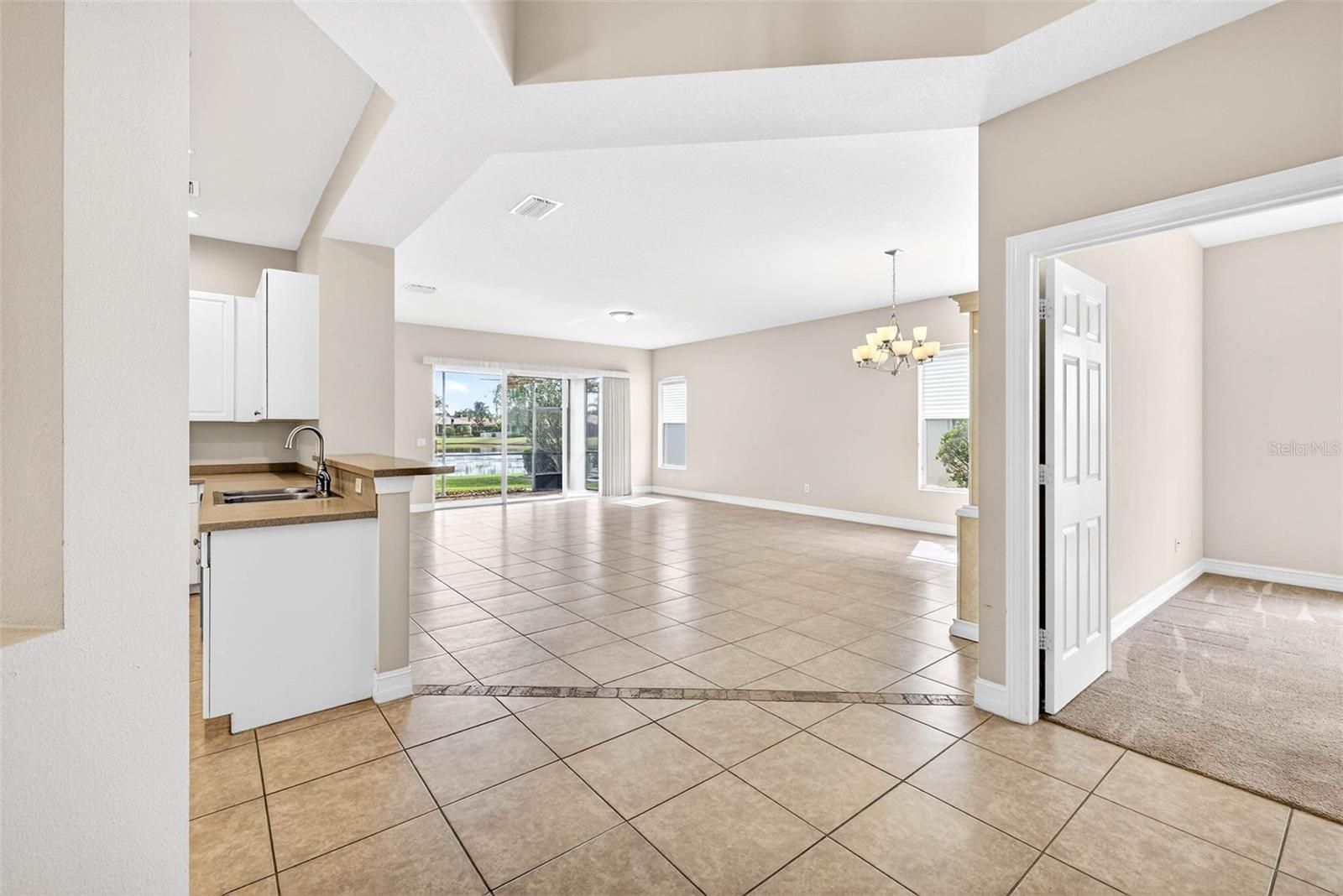 Welcome to this beautifully maintained 3-bedroom, 2-bath Positano model home, perfectly positioned on a lovely pond and featuring a large, screened lanai ideal for year-round Florida living. Offering exceptional versatility, the third bedroom doubles perfectly as a den or home office, while the open, spacious floor plan creates an inviting environment for both everyday comfort and effortless entertaining. The stylish kitchen is thoughtfully designed with stone countertops, a tile backsplash, stainless-steel appliances, and a pantry cabinet, all opening seamlessly to the main living areas. The light-filled primary suite features two walk-in closets and a tray ceiling, while the luxurious primary bath includes dual sinks, a Roman tub, and an expansive walk-in shower. Located in the sought-after 55+ community of Valencia Lakes, this home offers truly carefree living. HOA fees cover yard maintenance, mowing, irrigation, cable TV, high-speed internet, and a monitored security system. Just moments away is the newly renovated 40,000-square-foot clubhouse and lifestyle center, where residents enjoy an impressive array of amenities: three pools (resort-style, resistance, and lap), an outdoor hot tub, sauna and steam rooms, a ballroom, state-of-the-art fitness center, tennis, pickleball, bocce, softball, shuffleboard, basketball, scenic walking paths, and on-site RV and boat storage. A full calendar of clubs, crafts, and social activities ensures there’s always something to enjoy. The community is also home to the meaningful Veterans Memorial Park, known as the Circle of Honor. Conveniently located near shopping, dining, medical facilities, and everyday essentials, this home offers the perfect blend of comfort, convenience, and resort-style living. All that’s left to do is move in and start enjoying the lifestyle you’ve been waiting for.