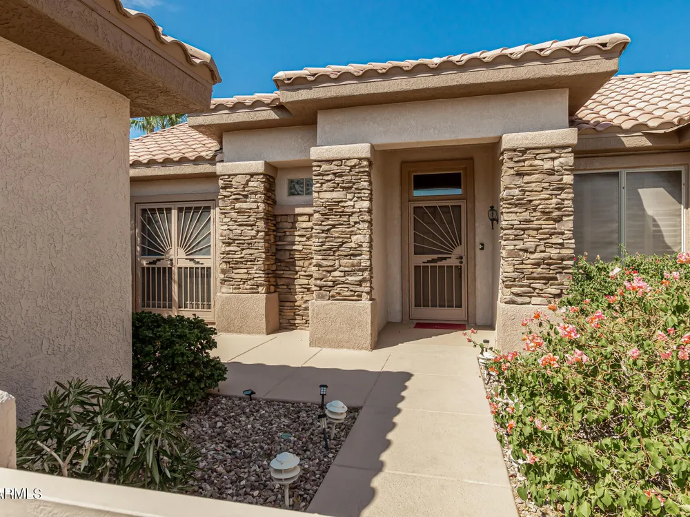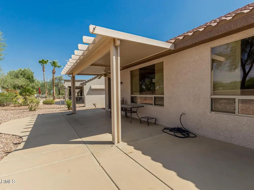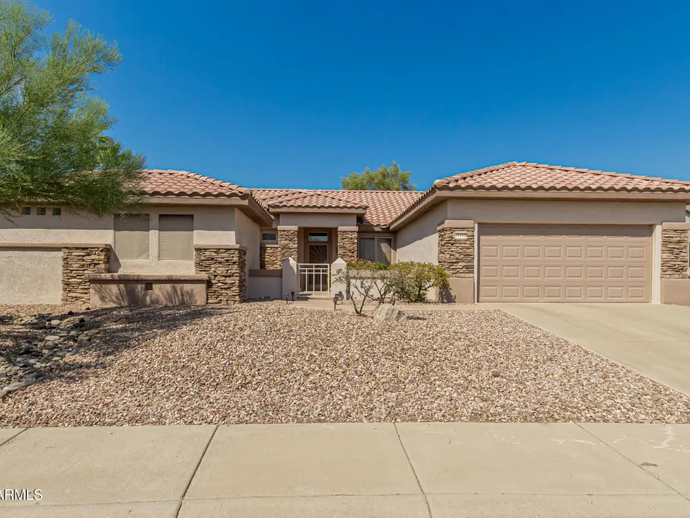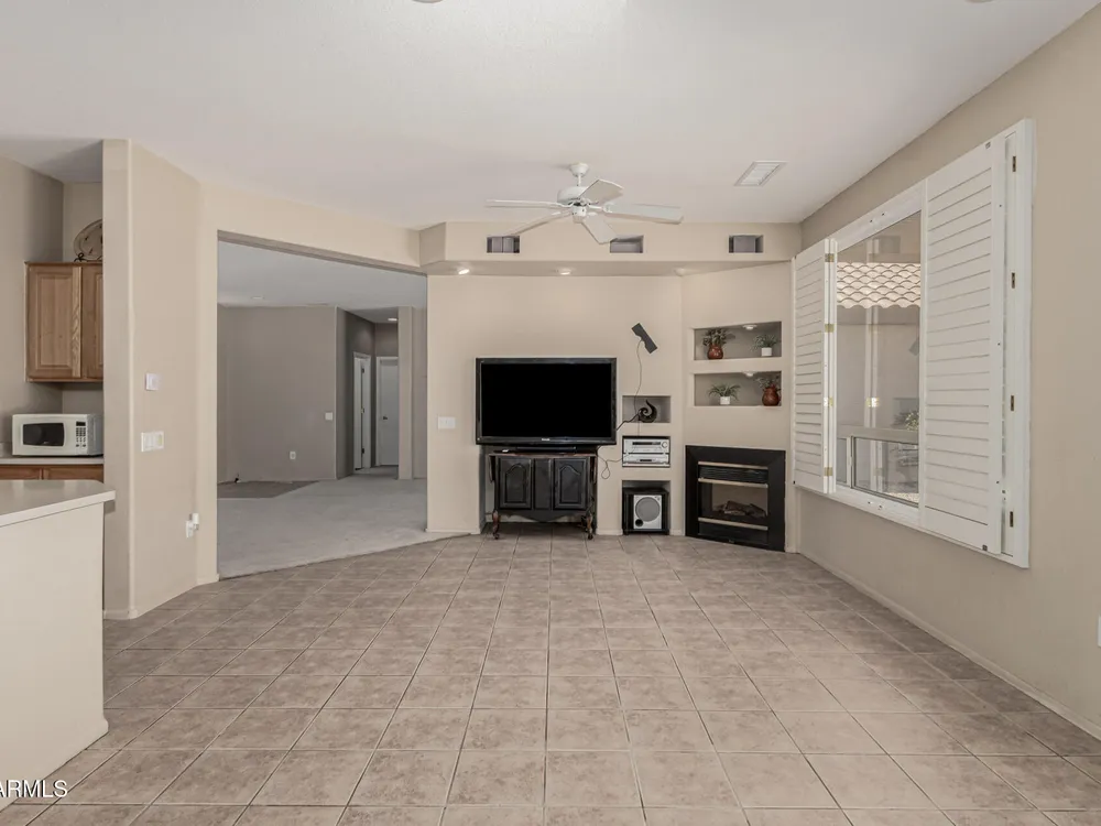 Discover this charming 3-bedroom home in Sun City Grand! All the space you need 3 bedrooms, 3 bathrooms & a 2-car garage with attached storage! Inside, you'll find spacious and bright living areas showcasing tile flooring, carpet in all the right places, plantation shutters, and neutral paint throughout. The family room features a fireplace and surround system, making it perfect for cozy movie nights. The impeccable kitchen boasts oak cabinetry, a peninsula, and built-in appliances for a seamless cooking experience. The primary bedroom has a lovely bay window, a bathroom with double sinks, and a closet. The third bedroom is ideal for guests or an office, as it has a separate exit and a built-in desk with shelves. The backyard is complete with a covered patio perfect for quiet evenings and weekend grills, and a low-care landscape for easy living! Come see it before it's too late!