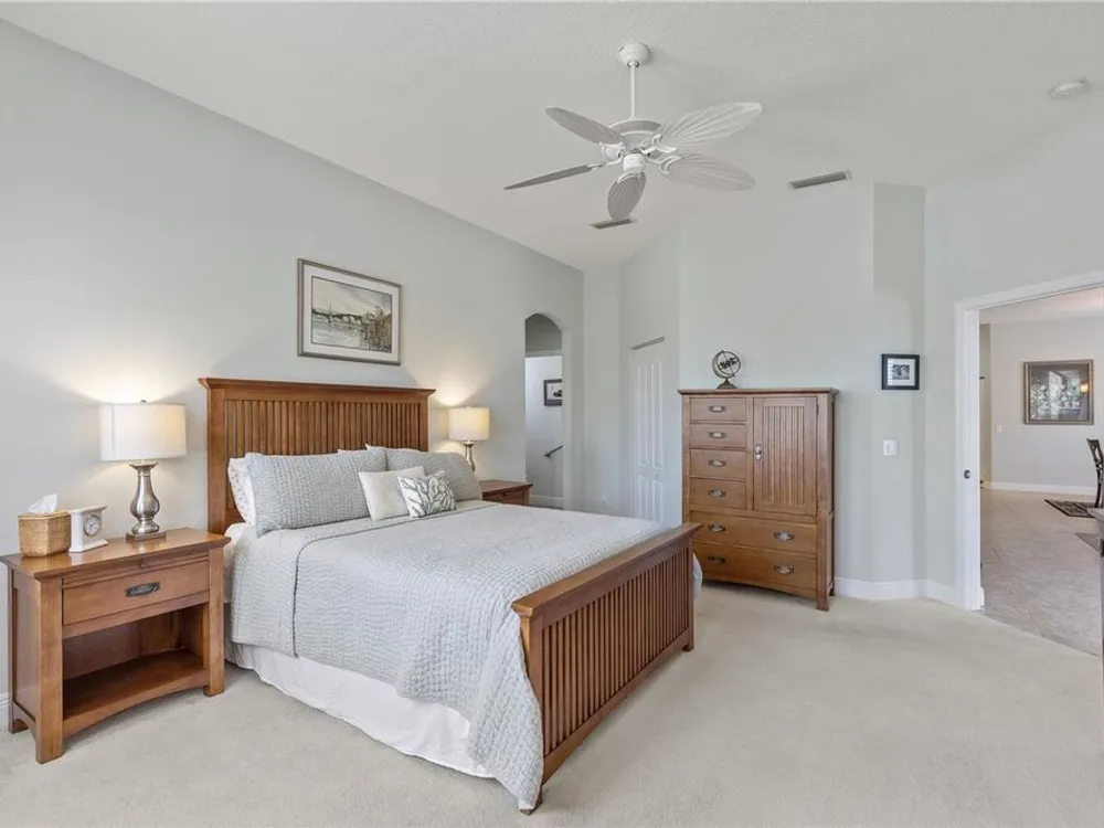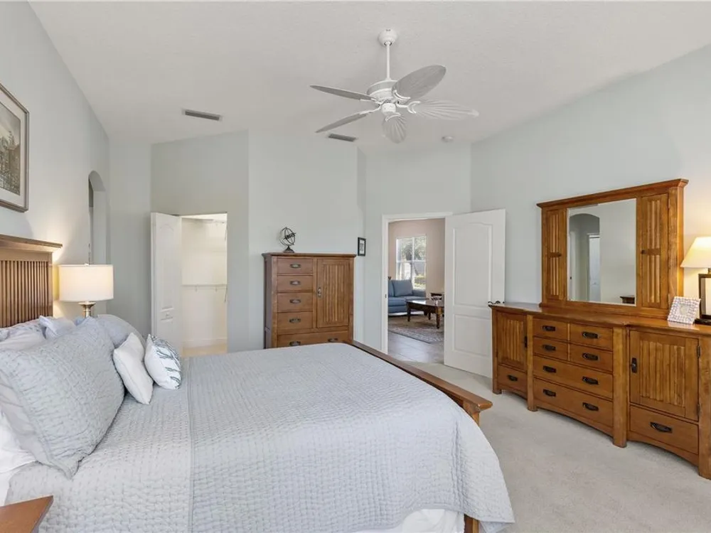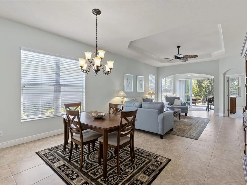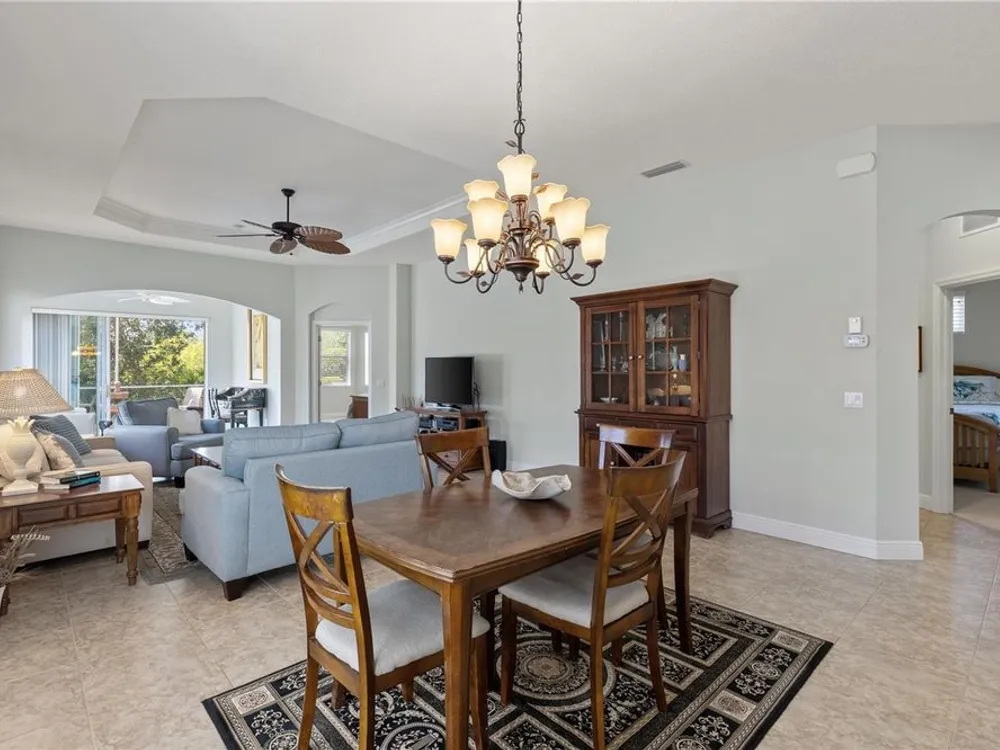 - Ceiling Fan(s), Chair Rail, Coffered Ceiling(s), Eat-in Kitchen, High Ceilings, Living/Dining Room, Open Floorplan, Main Level Primary, Solid Surface Counters, Split Bedrooms, Stone Counters, Thermostat, Tray Ceiling(s), Walk-In Closet(s), Window Treatments