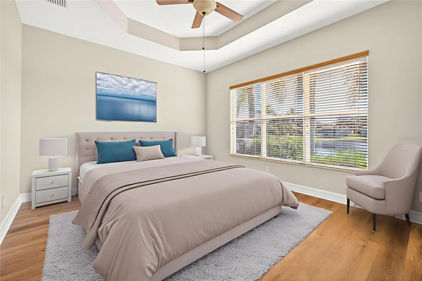 One or more photo(s) has been virtually staged. This popular Positano model offers 3rd bedroom/den and 2 baths with a serene pond view and a spacious, open floor plan ideal for comfortable living and entertaining. The home has been freshly painted throughout and features brand-new luxury vinyl plank flooring. The well-appointed kitchen includes stone countertops, a tile backsplash, upgraded appliances, and a pantry cabinet, opening seamlessly to the main living areas. The spacious primary suite is filled with natural light and features two walk-in closets and a tray ceiling. The primary bath offers dual sinks, a Roman tub, and a large walk-in shower. The AC was replaced in 2018 and is maintained under a service contract. Located in Valencia Lakes, HOA fees include yard maintenance, mowing, irrigation, cable TV, high-speed internet, and a monitored security system, allowing for truly carefree living. Just a short distance from the renovated 40,000-square-foot clubhouse and lifestyle center, residents enjoy three pools including a resort-style pool, resistance pool, and lap pool, an outdoor hot tub, sauna and steam rooms, ballroom, state-of-the-art fitness center, tennis courts, pickleball, bocce, softball, shuffleboard, basketball, recreation paths, RV and boat storage on premises, and a full calendar of clubs, crafts, and social activities. The community also features the Veterans Memorial Park, known as the Circle of Honor. Conveniently located minutes from shopping, dining, hospitals, and everyday conveniences, this home offers the best of resort-style, maintenance-free living—all that’s left to do is move in and enjoy.