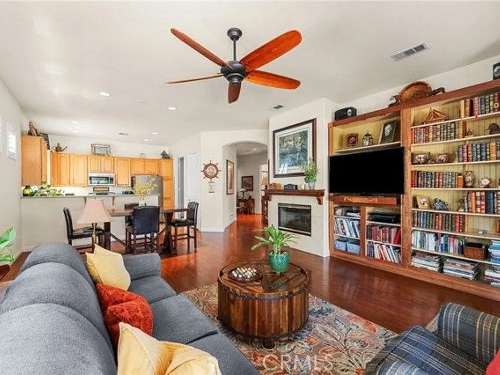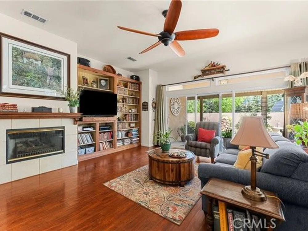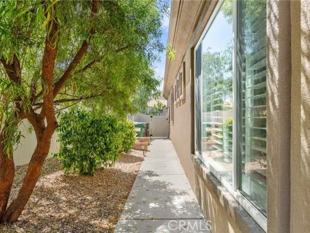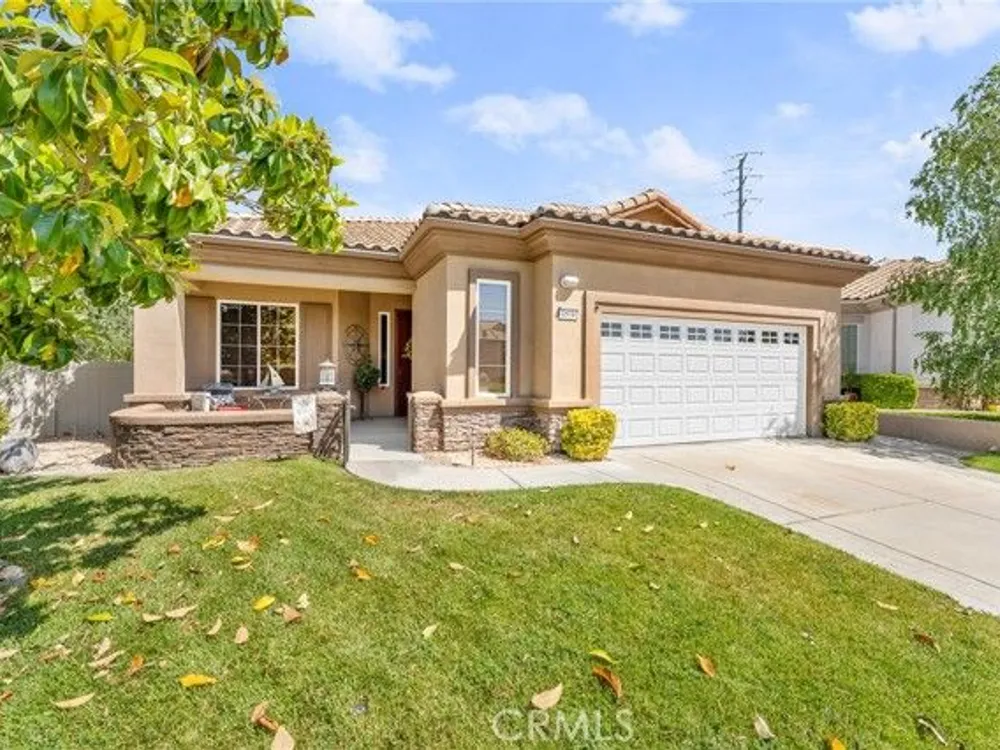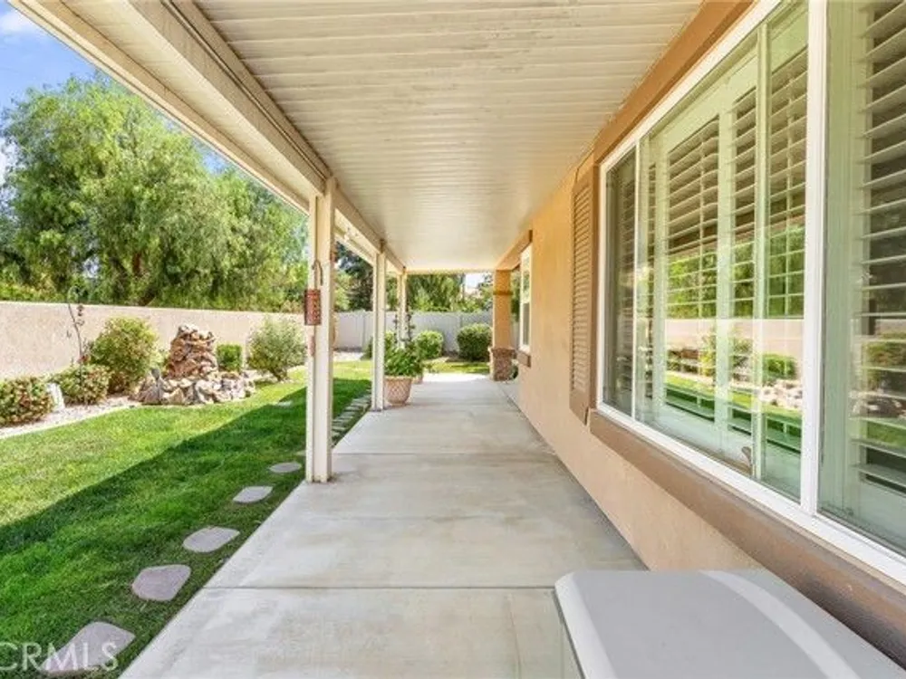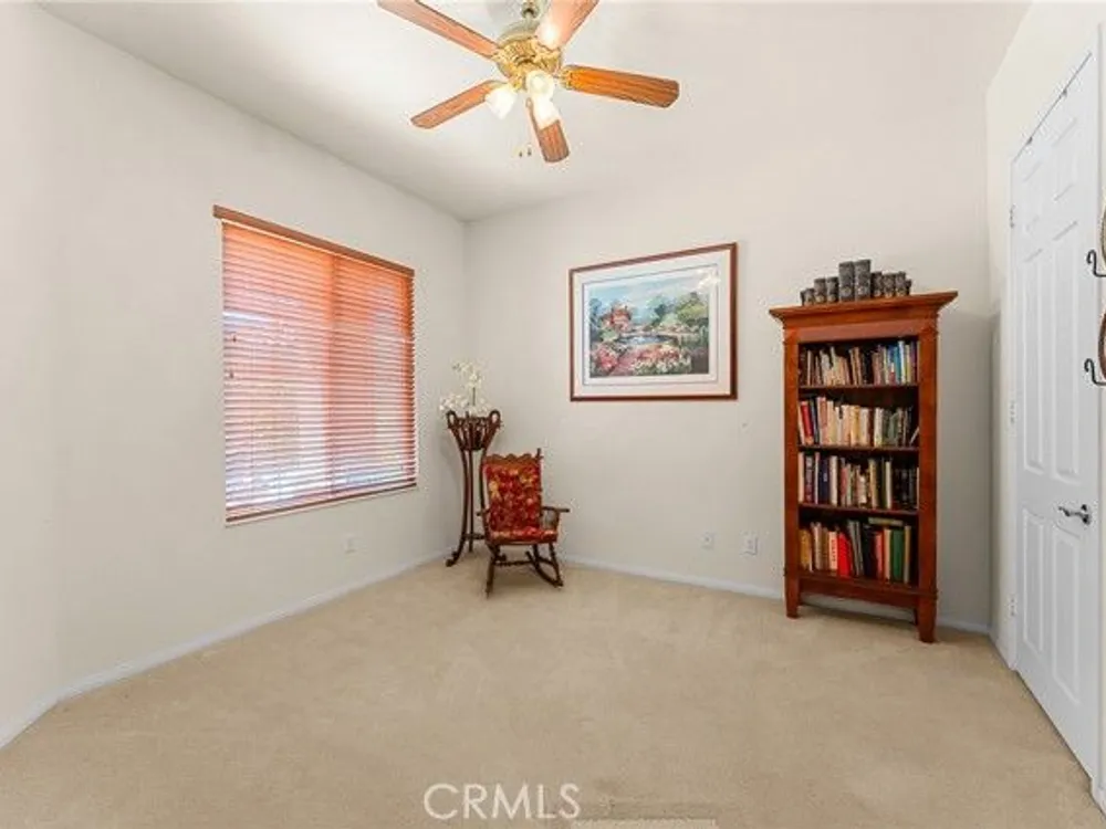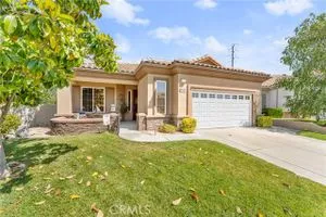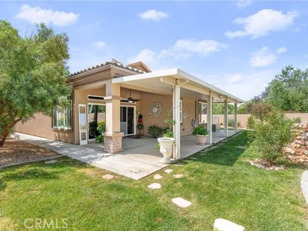 BACK ON THE MARKET, AT NO FAULT TO SELLER "AND" WITH A NEW PRICE IMPROVEMENT!! We are ready to work with a serious buyer! Please schedule an appointment to see this beautiful Trillion model home! Located in the highly desirable 55+ community of Sun Lakes in Banning! This well maintained 2-bedroom, 2-bath residence includes a versatile BONUS room- perfect as an office, den or optional third bedroom. Inside you'll find rich, dark laminate LVP flooring with new baseboards throughout, plantation shutters, and high ceilings. The living room features a custom wood craftsman built-in bookcase, a gas push start fireplace with a handsome mantle, and oversized sliders that lead to an extended covered patio—perfect for relaxing or entertaining. Enjoy an upgraded kitchen with Corian countertops, luxury tile flooring, ample cabinetry, 2 spacious pantries, and abundant natural light. The primary suite boasts dual sinks, a soaking tub, a separate shower, and a quaint shuttered window overlooking the tub! Both bathrooms include high toilets and grab bars for convenience. The secondary bedroom includes carpet flooring, a walk in closet and has direct access to the guest bathroom with a shower/tub combo. Additional highlights include a separate indoor laundry with a deep sink, generous storage, a newer A/C unit, a polarized media electronic air cleaner, and vinyl fencing for added privacy. The serene backyard features mature landscaping, persimmon and birch trees, drip irrigation, two storage sheds, a tranquil fountain, and mountain views. Best of all—this home includes all appliances plus a golf cart! Enjoy the vibrant Sun Lakes lifestyle with access to pools, golf, clubhouses, and more. Don’t miss out on this turn-key ready home close to the Cabazon outlets, Morongo casino, and Palm Springs!