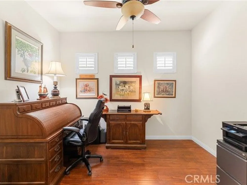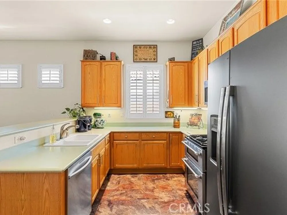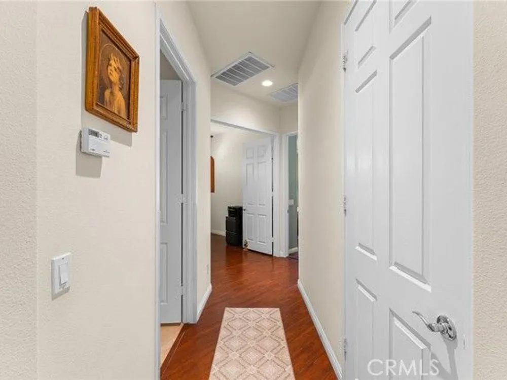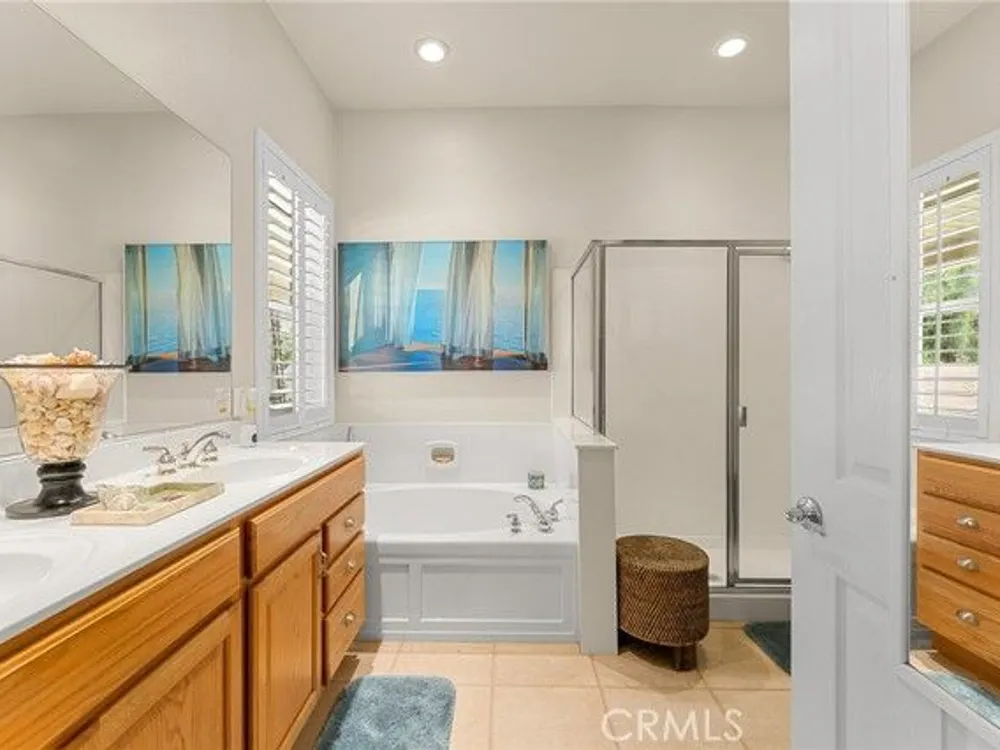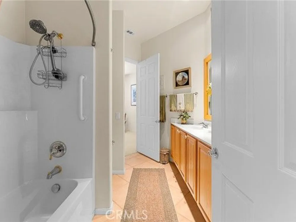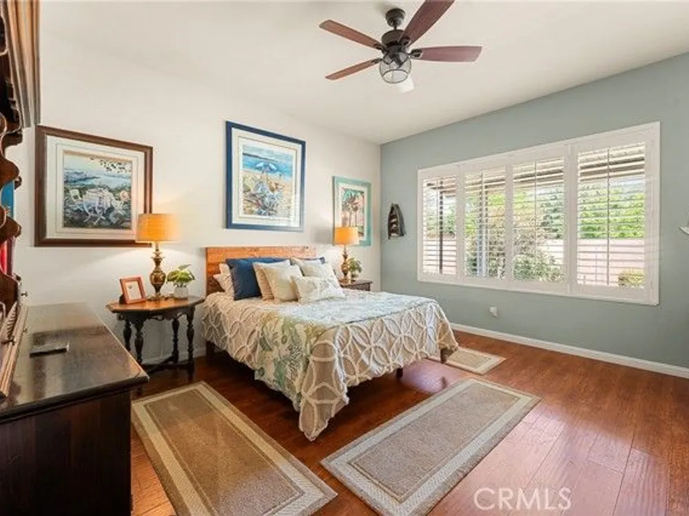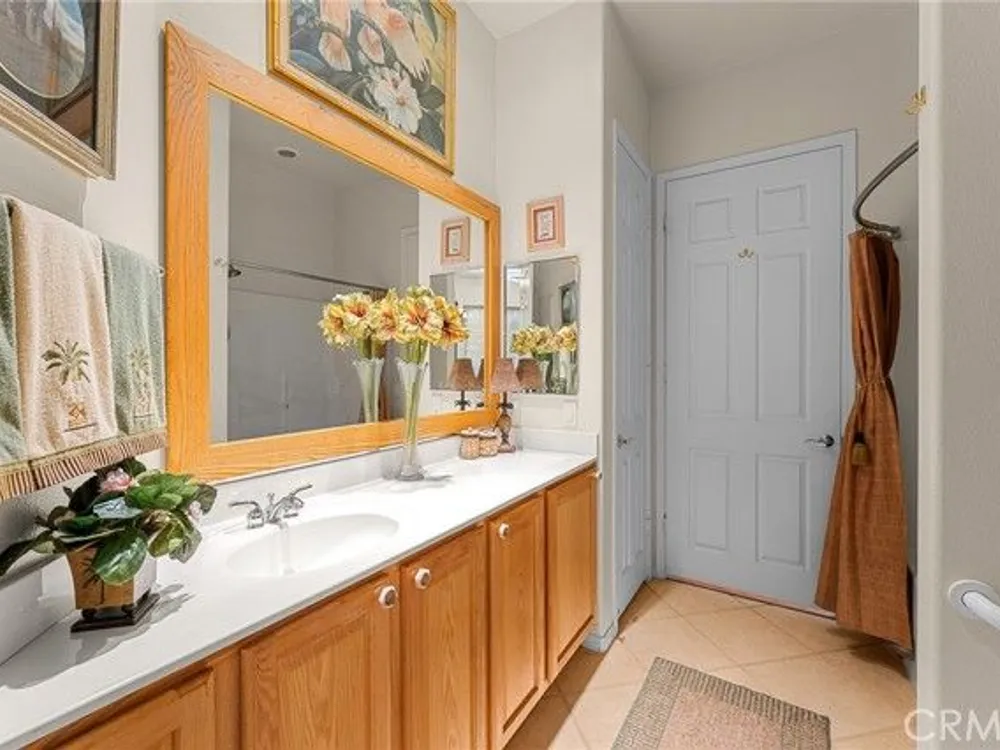 BACK ON THE MARKET, AT NO FAULT TO SELLER "AND" WITH A NEW PRICE IMPROVEMENT!! We are ready to work with a serious buyer! Please schedule an appointment to see this beautiful Trillion model home! Located in the highly desirable 55+ community of Sun Lakes in Banning! This well maintained 2-bedroom, 2-bath residence includes a versatile BONUS room- perfect as an office, den or optional third bedroom. Inside you'll find rich, dark laminate LVP flooring with new baseboards throughout, plantation shutters, and high ceilings. The living room features a custom wood craftsman built-in bookcase, a gas push start fireplace with a handsome mantle, and oversized sliders that lead to an extended covered patio—perfect for relaxing or entertaining. Enjoy an upgraded kitchen with Corian countertops, luxury tile flooring, ample cabinetry, 2 spacious pantries, and abundant natural light. The primary suite boasts dual sinks, a soaking tub, a separate shower, and a quaint shuttered window overlooking the tub! Both bathrooms include high toilets and grab bars for convenience. The secondary bedroom includes carpet flooring, a walk in closet and has direct access to the guest bathroom with a shower/tub combo. Additional highlights include a separate indoor laundry with a deep sink, generous storage, a newer A/C unit, a polarized media electronic air cleaner, and vinyl fencing for added privacy. The serene backyard features mature landscaping, persimmon and birch trees, drip irrigation, two storage sheds, a tranquil fountain, and mountain views. Best of all—this home includes all appliances plus a golf cart! Enjoy the vibrant Sun Lakes lifestyle with access to pools, golf, clubhouses, and more. Don’t miss out on this turn-key ready home close to the Cabazon outlets, Morongo casino, and Palm Springs!