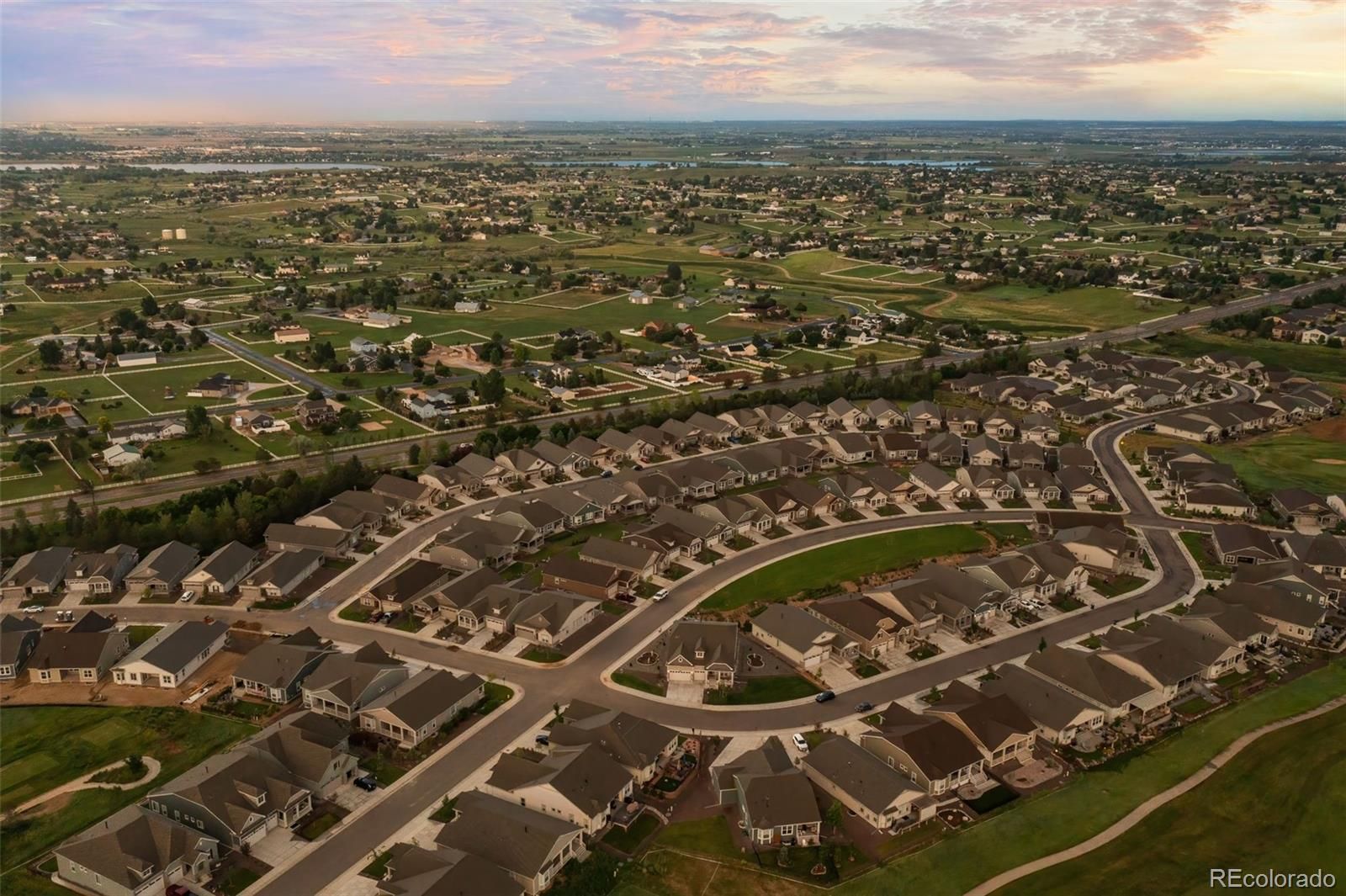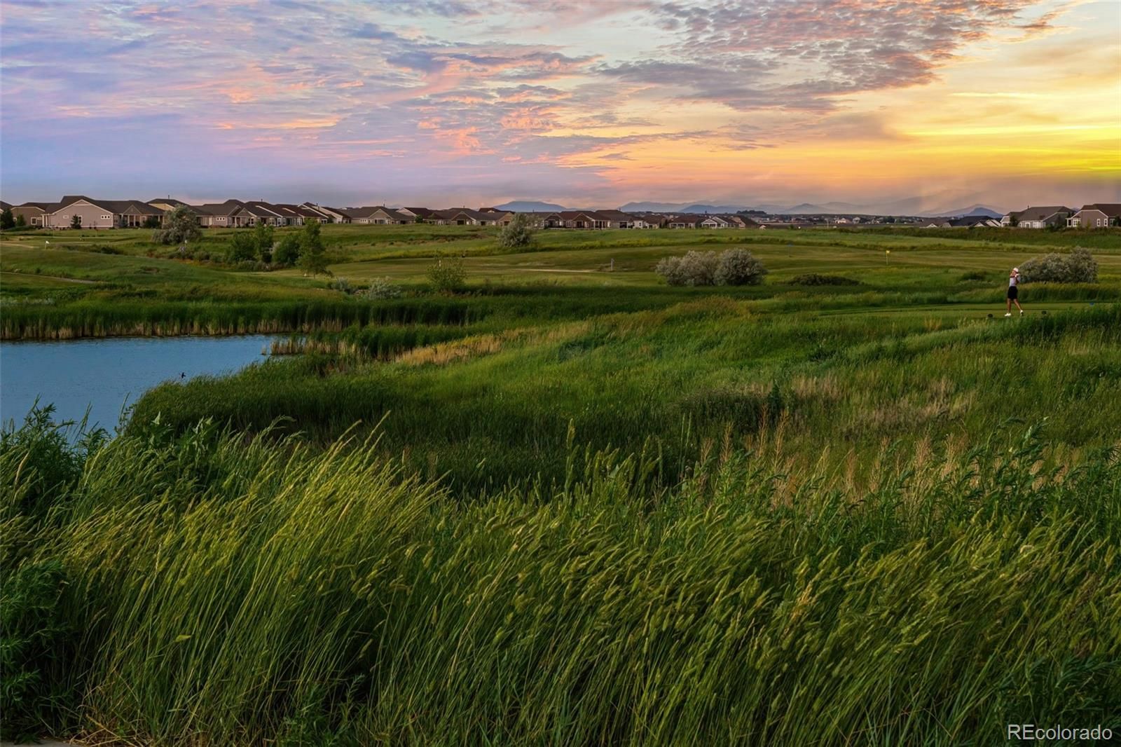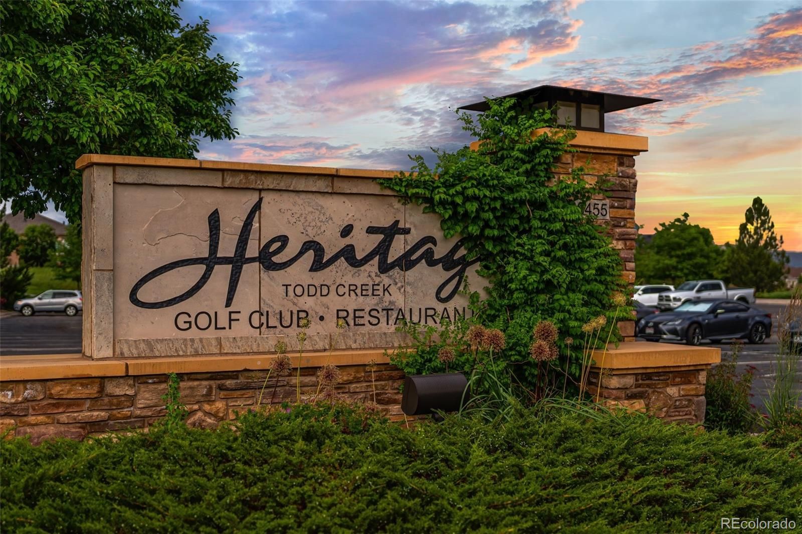 Todd Creek Golf Club • Corner Lot • Ranch Home • Finished Basement • Golf Course View Discover exceptional Colorado living in this 2022 Lennar ranch home tucked inside the gated, 55+ Heritage Todd Creek Golf Community. With 4 bedrooms, 4 full baths, an office, and nearly 4,723 finished sq ft, this spacious corner-lot property lives large and offers rare golf-course views from the covered front porch and beautiful sunset views from the backyard. Step inside to an open-concept layout featuring high ceilings, a generous great room with gas fireplace, and a chef’s kitchen appointed with granite and quartz surfaces, double ovens, cooktop, oversized island, walk-in pantry, and bright breakfast nook — perfect for entertaining or everyday living. The main-level primary suite offers a serene retreat with a five-piece bath, quartz countertops, dual vanities, soaking tub, and walk-in closet. A second main-level bedroom and full bath create ideal guest or multi-use flexibility. The fully finished basement expands your lifestyle options with a huge recreation area, two additional bedrooms, and a full bath — ideal for guests, hobbies, fitness, or multi-generational living. Enjoy year-round comfort with central air, forced air heat, and energy-efficient construction. The 3-car attached garage provides abundant storage. Outside, the 0.30-acre corner lot features a covered patio, landscaped yard, and inviting front porch. Just 0.4 miles from the clubhouse, residents enjoy resort-style amenities: fitness center, indoor/outdoor pool, spa, tennis & pickleball courts, on-site restaurant, walking paths, and the championship Todd Creek Golf Course. HOA covers grounds maintenance, snow removal, and trash. This is the perfect blend of comfort, convenience, and low-maintenance living in one of Northern Colorado’s premier active-adult golf communities.
