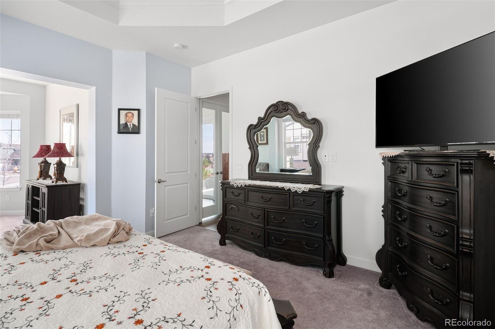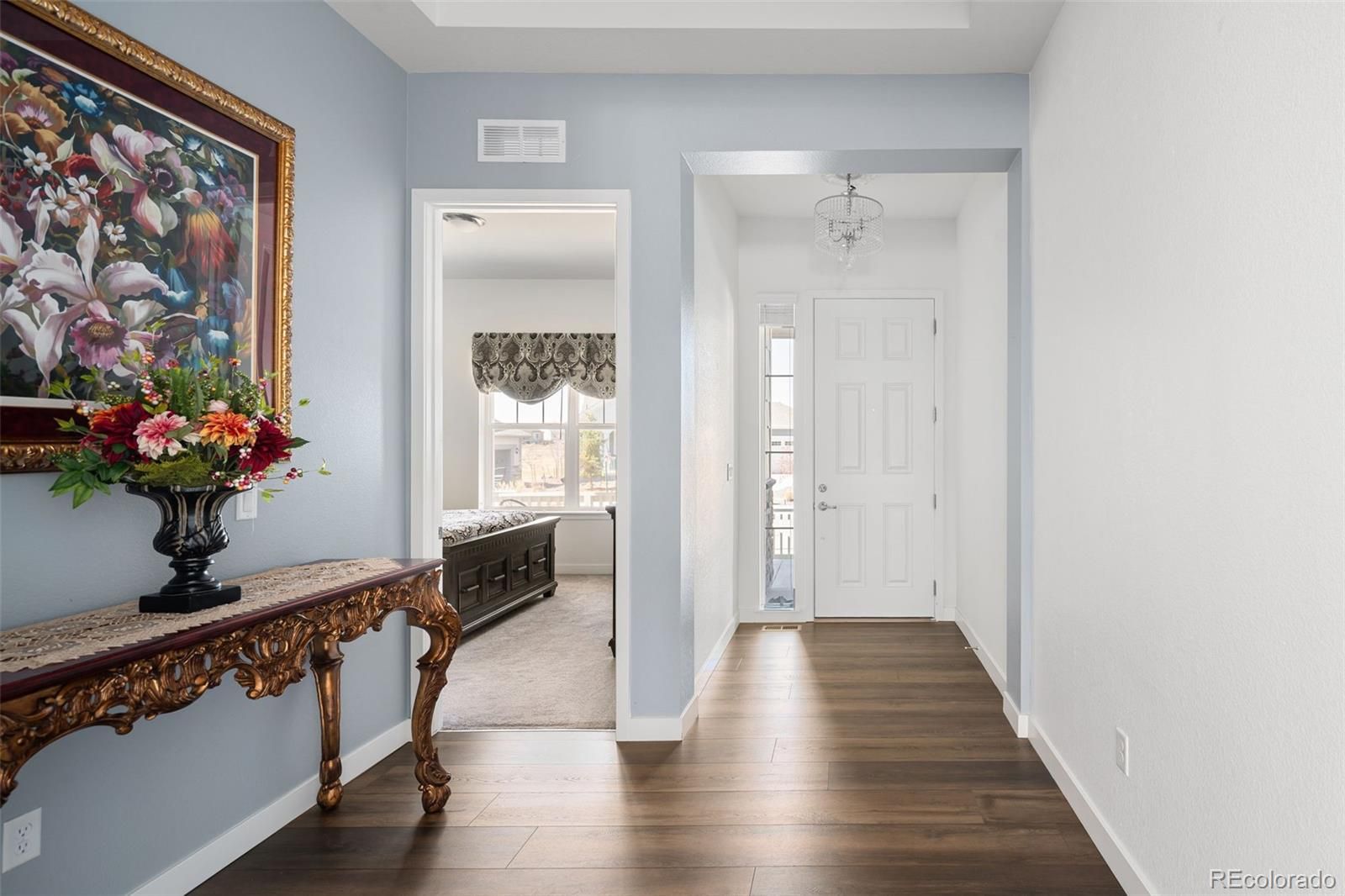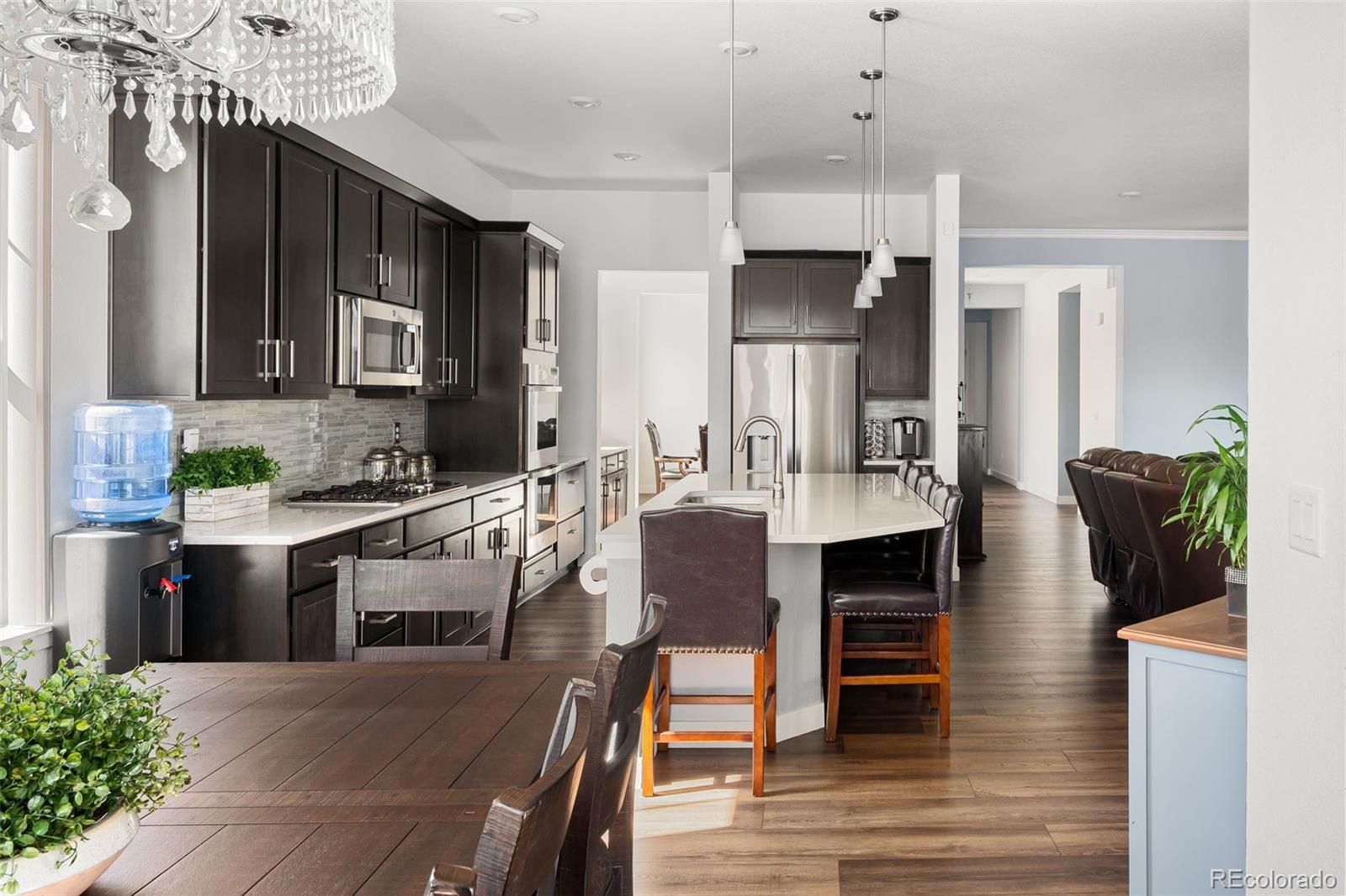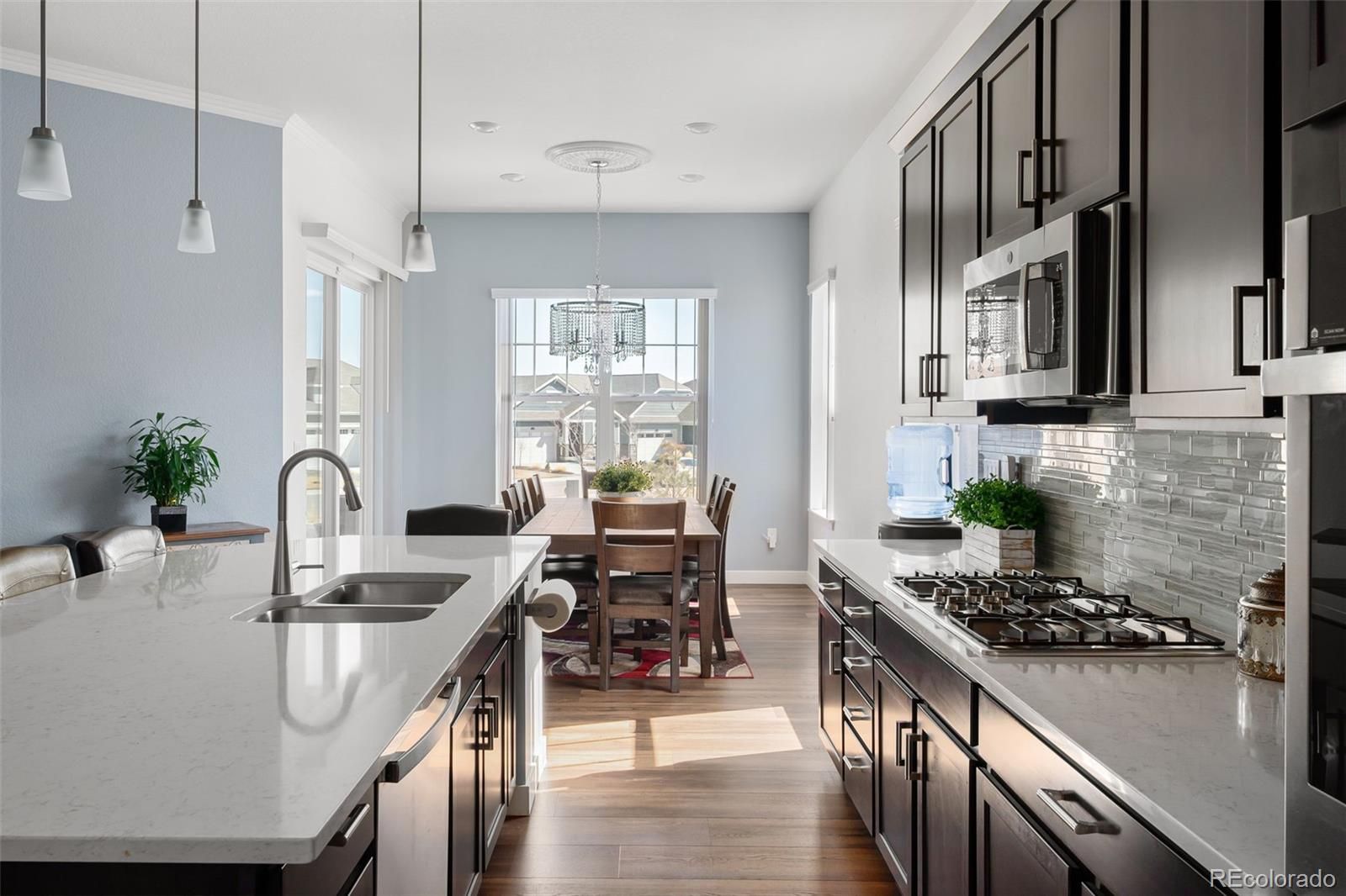 Todd Creek Golf Club • Corner Lot • Ranch Home • Finished Basement • Golf Course View Discover exceptional Colorado living in this 2022 Lennar ranch home tucked inside the gated, 55+ Heritage Todd Creek Golf Community. With 4 bedrooms, 4 full baths, an office, and nearly 4,723 finished sq ft, this spacious corner-lot property lives large and offers rare golf-course views from the covered front porch and beautiful sunset views from the backyard. Step inside to an open-concept layout featuring high ceilings, a generous great room with gas fireplace, and a chef’s kitchen appointed with granite and quartz surfaces, double ovens, cooktop, oversized island, walk-in pantry, and bright breakfast nook — perfect for entertaining or everyday living. The main-level primary suite offers a serene retreat with a five-piece bath, quartz countertops, dual vanities, soaking tub, and walk-in closet. A second main-level bedroom and full bath create ideal guest or multi-use flexibility. The fully finished basement expands your lifestyle options with a huge recreation area, two additional bedrooms, and a full bath — ideal for guests, hobbies, fitness, or multi-generational living. Enjoy year-round comfort with central air, forced air heat, and energy-efficient construction. The 3-car attached garage provides abundant storage. Outside, the 0.30-acre corner lot features a covered patio, landscaped yard, and inviting front porch. Just 0.4 miles from the clubhouse, residents enjoy resort-style amenities: fitness center, indoor/outdoor pool, spa, tennis & pickleball courts, on-site restaurant, walking paths, and the championship Todd Creek Golf Course. HOA covers grounds maintenance, snow removal, and trash. This is the perfect blend of comfort, convenience, and low-maintenance living in one of Northern Colorado’s premier active-adult golf communities.
