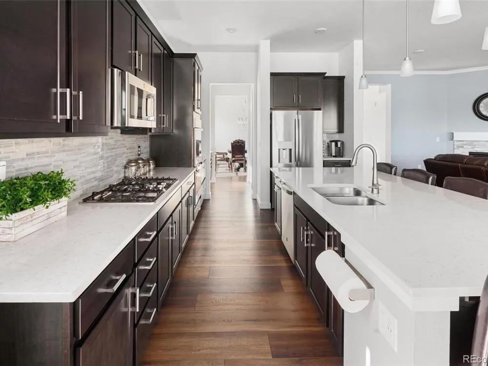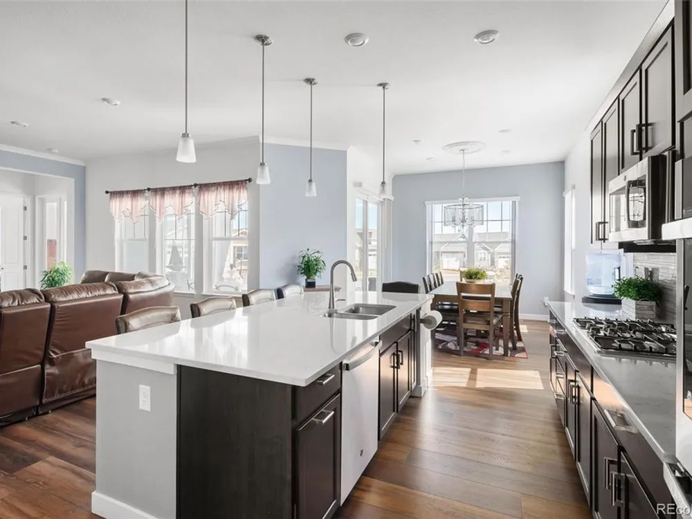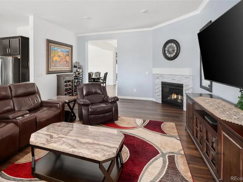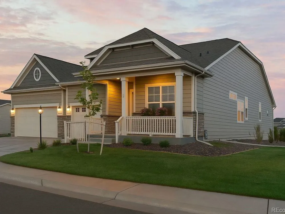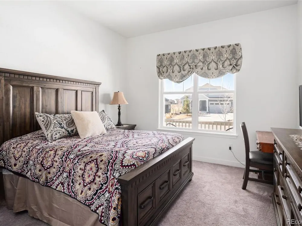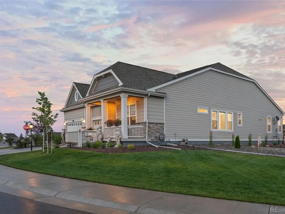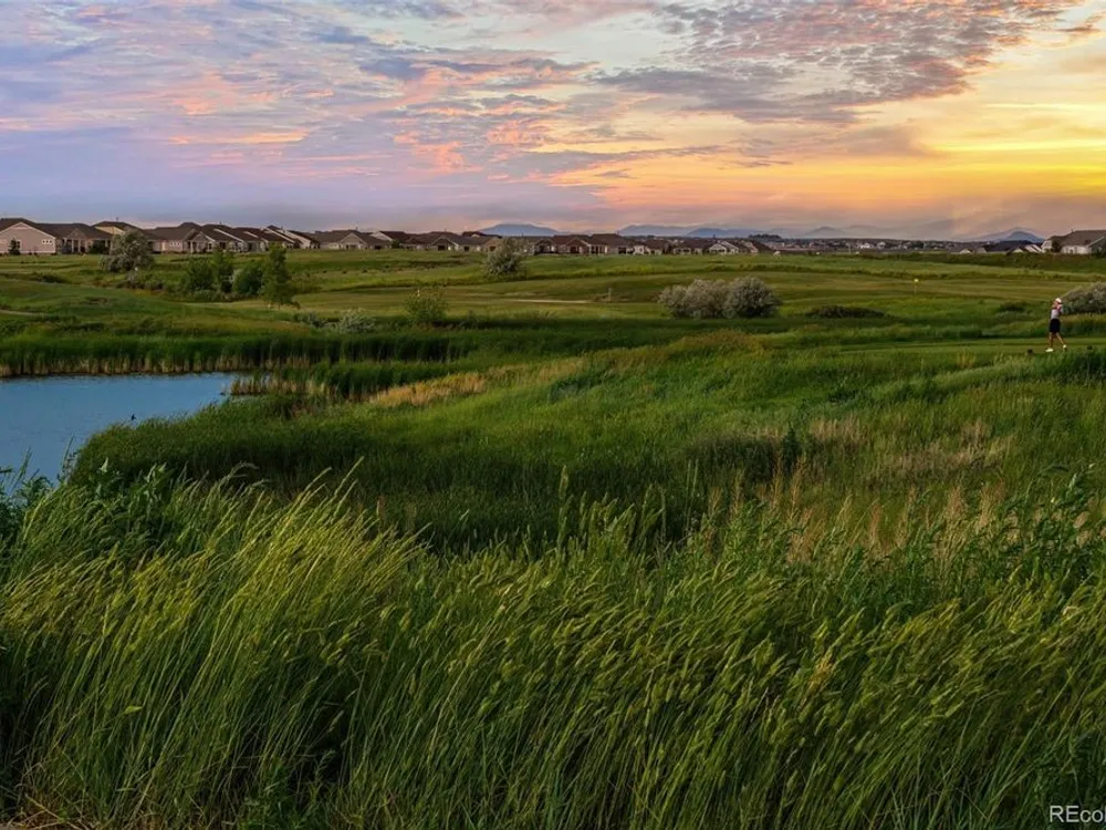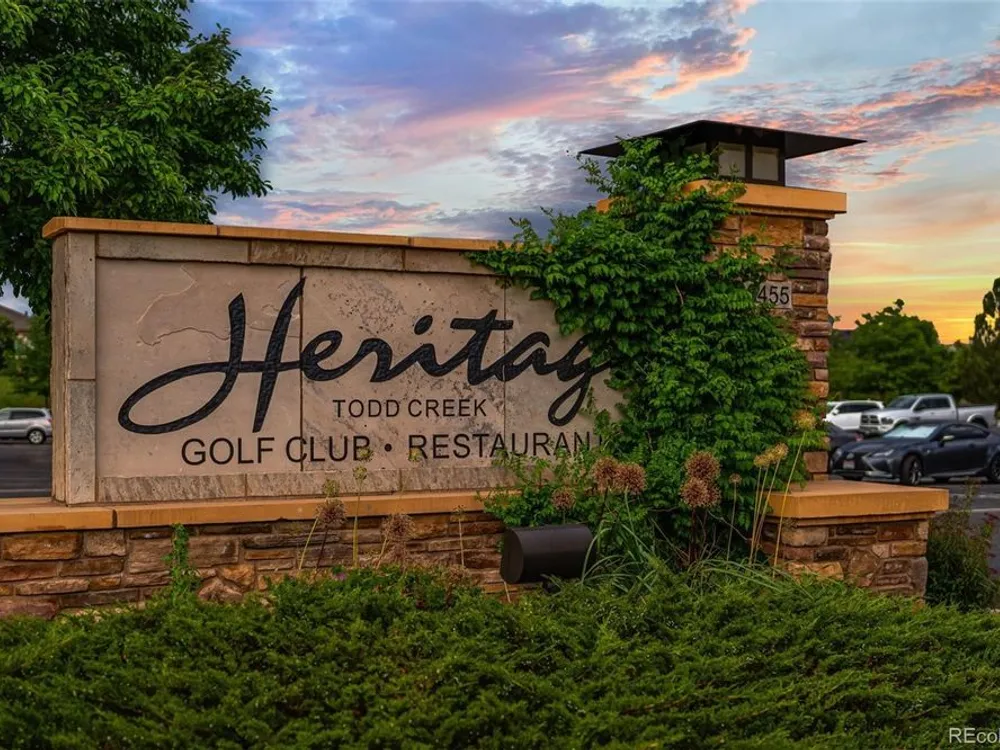 Todd Creek Golf Club • Corner Lot • Finished Basement • Golf Course View Located in the gated, 55+ Heritage Todd Creek Golf Community, this 2022 Lennar-built residence offers 4 bedrooms, 4 full baths, an office, and nearly 4,723 finished Sq ft. including a fully finished basement. Positioned on a 0.30-acre corner lot, the home captures golf-course views from the covered front porch and sunset views from its covered patio and landscaped yard. The open-concept floor plan includes high ceilings, a spacious great room with gas fireplace, and a chef’s kitchen with granite and quartz surfaces, double ovens, cooktop, large island, pantry, and breakfast nook. The main-level primary suite features a five-piece bath, dual vanities, quartz counters, and walk-in closet. A second main-level bedroom and full bath provide flexible living or guest space. The finished basement expands living options with a large great room, two additional bedrooms, and a full bath — ideal for hosting or multi-generational use. Enjoy year-round comfort with central air, forced-air heat, and energy-efficient construction. A three-car attached garage provides ample parking and storage. The landscaped exterior includes garden accents and a covered front porch for outdoor relaxation. Residents enjoy resort-style amenities just 0.4 mi away: clubhouse, fitness center, pool, spa, tennis and pickleball courts, on-site restaurant, and championship golf course. HOA includes grounds maintenance, snow removal, and trash service. Convenient to CO-7, E-470, shopping, and dining. Experience elevated Colorado living in Heritage Todd Creek — where comfort, convenience, and community come together.
