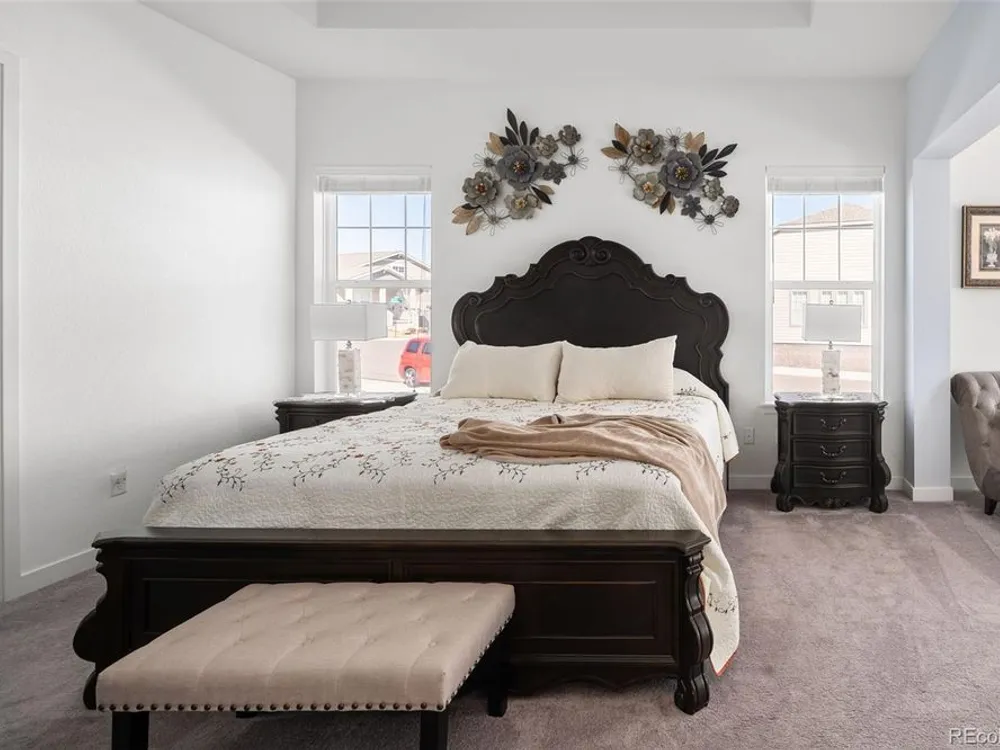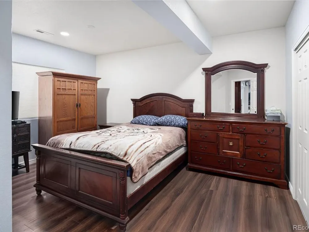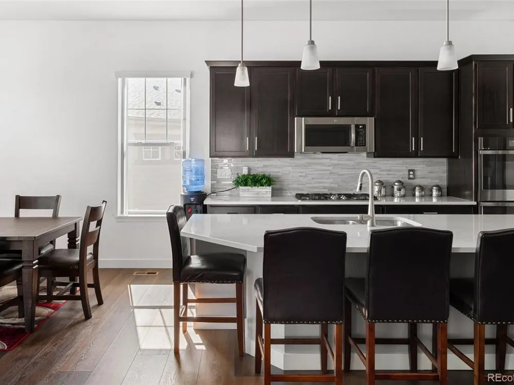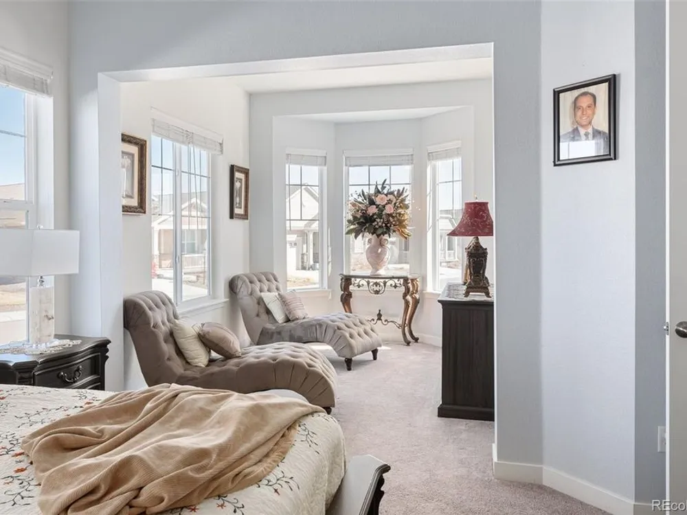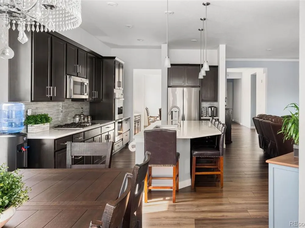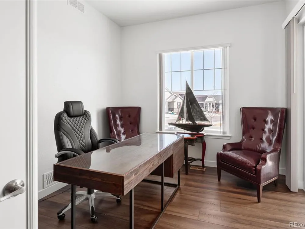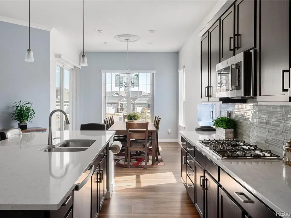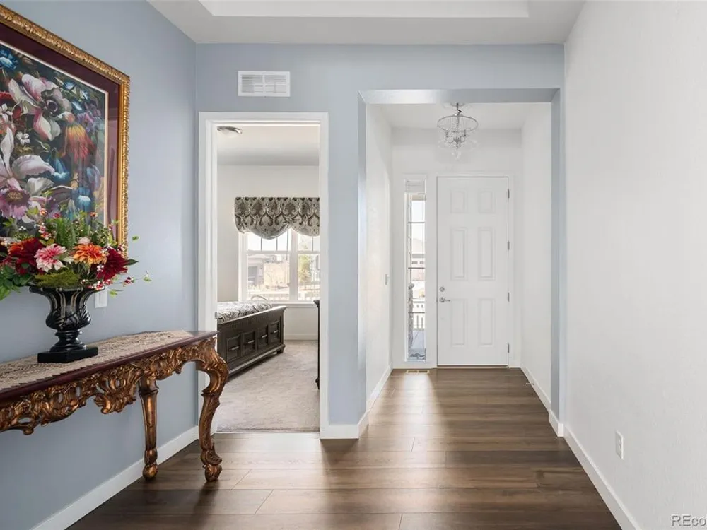 Todd Creek Golf Club • Corner Lot • Finished Basement • Golf Course View Located in the gated, 55+ Heritage Todd Creek Golf Community, this 2022 Lennar-built residence offers 4 bedrooms, 4 full baths, an office, and nearly 4,723 finished Sq ft. including a fully finished basement. Positioned on a 0.30-acre corner lot, the home captures golf-course views from the covered front porch and sunset views from its covered patio and landscaped yard. The open-concept floor plan includes high ceilings, a spacious great room with gas fireplace, and a chef’s kitchen with granite and quartz surfaces, double ovens, cooktop, large island, pantry, and breakfast nook. The main-level primary suite features a five-piece bath, dual vanities, quartz counters, and walk-in closet. A second main-level bedroom and full bath provide flexible living or guest space. The finished basement expands living options with a large great room, two additional bedrooms, and a full bath — ideal for hosting or multi-generational use. Enjoy year-round comfort with central air, forced-air heat, and energy-efficient construction. A three-car attached garage provides ample parking and storage. The landscaped exterior includes garden accents and a covered front porch for outdoor relaxation. Residents enjoy resort-style amenities just 0.4 mi away: clubhouse, fitness center, pool, spa, tennis and pickleball courts, on-site restaurant, and championship golf course. HOA includes grounds maintenance, snow removal, and trash service. Convenient to CO-7, E-470, shopping, and dining. Experience elevated Colorado living in Heritage Todd Creek — where comfort, convenience, and community come together.