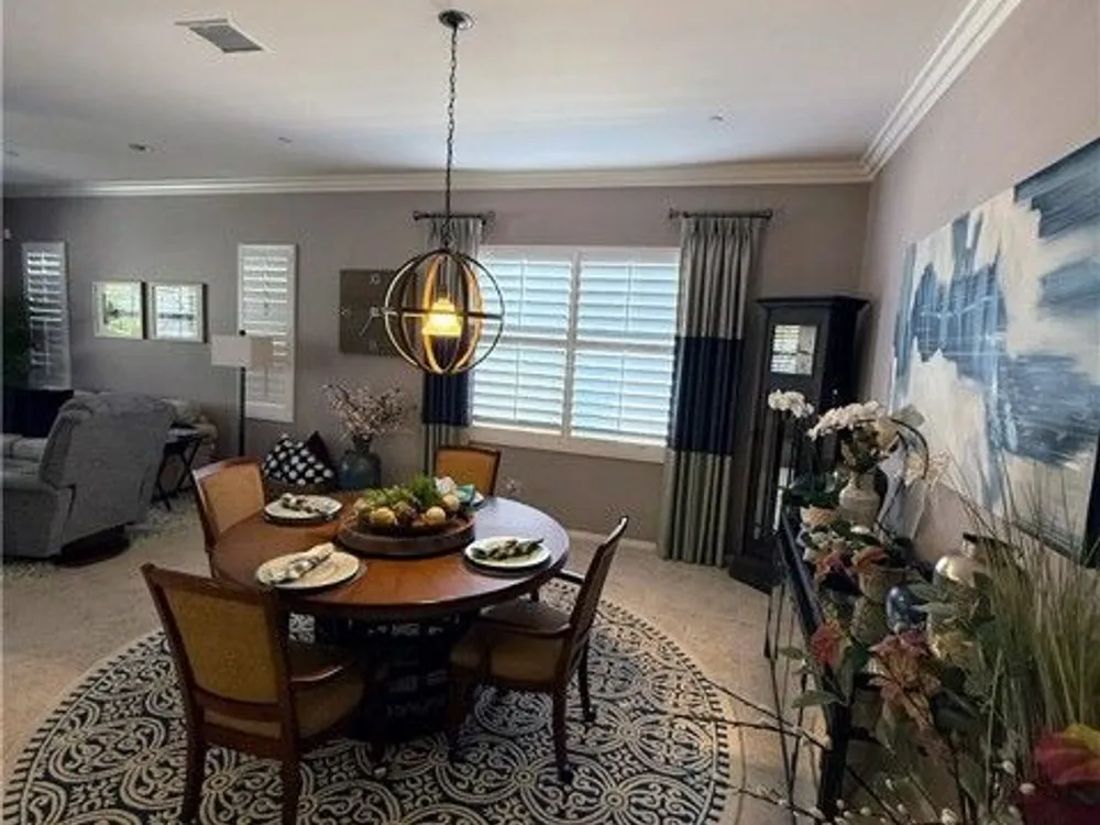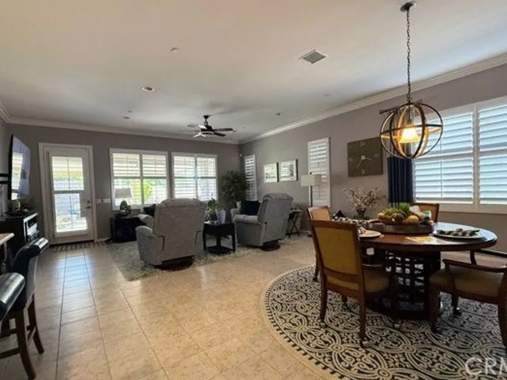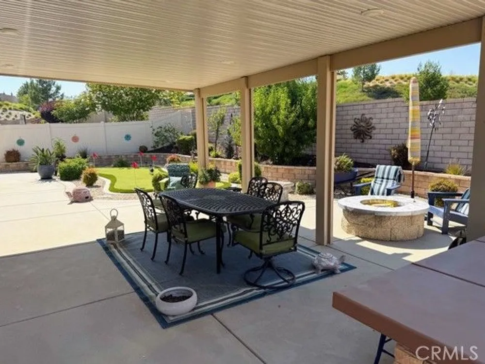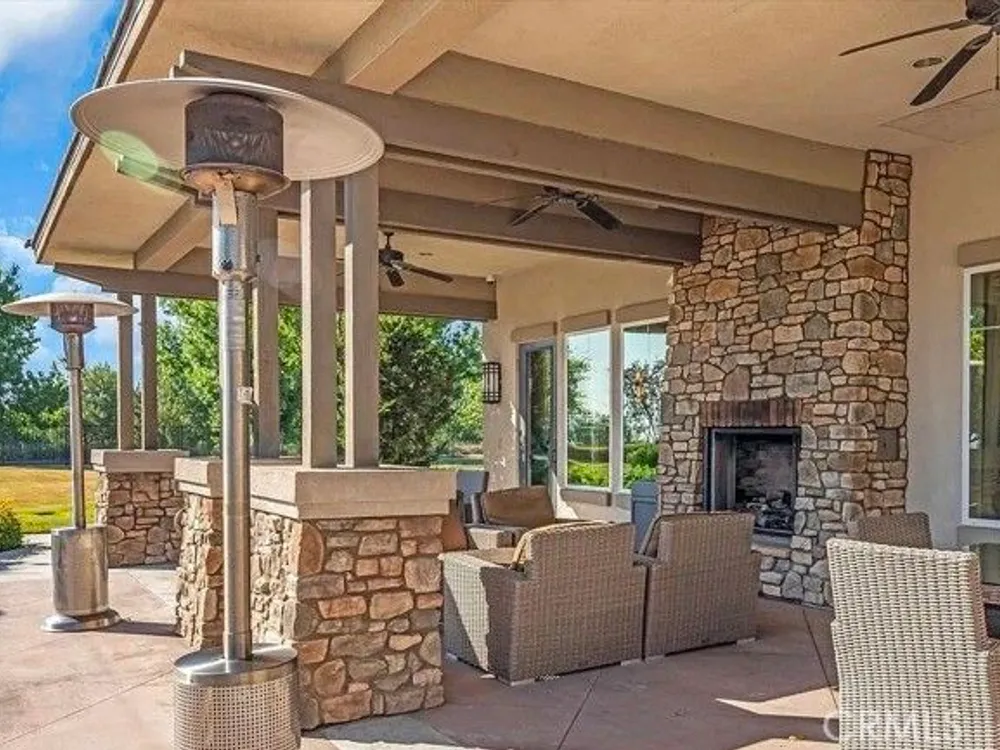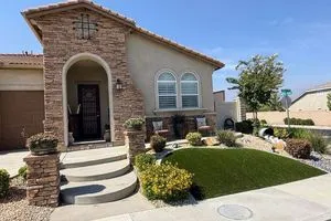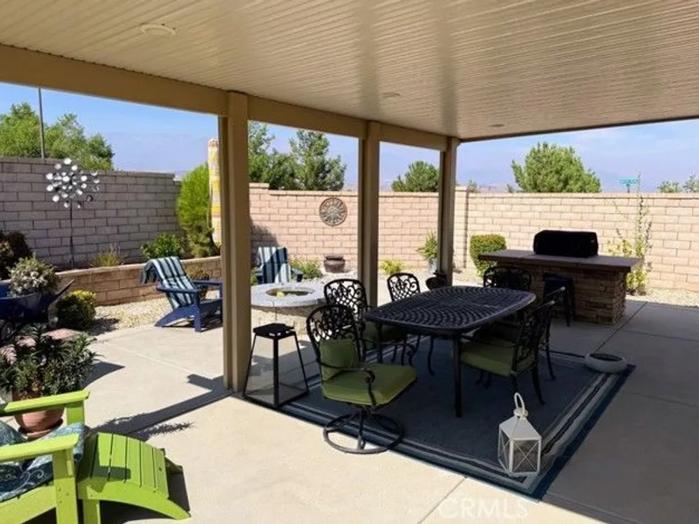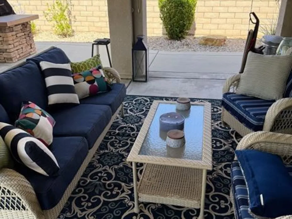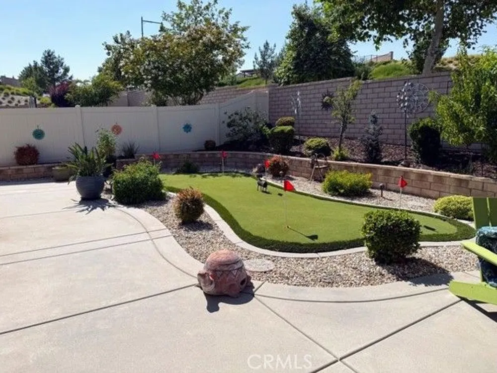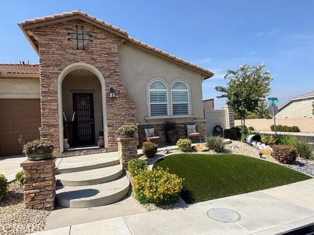 Welcome to one of the Four Seasons 55+ gated community’s premier residences – the exceptional Rosette model! Nestled in a serene cul-de-sac, this 2,700 sq. ft. single-story stunner offers exceptional curb appeal with stamped concrete, leaf-lined landscaping, decorative rock pathways, and a beautiful wrought iron entry gate. Step inside to a versatile office/den, elegant formal dining room, and a chef’s kitchen featuring rich cherry oak cabinetry, an oversized quartz island, custom tile backsplash, premium range hood, and upgraded lighting. The open-concept living area is adorned with beautiful custom fit shutters, upgraded ceiling fans, and flows seamlessly to the outdoor living space. The luxurious primary suite includes patio access, an expansive bath, and a walk-in shower & closet. The generous guest suite offers its own private bath for visiting family or friends. Wood and tile flooring run throughout, complemented by a large laundry room with sink and cabinetry, plus a 2-car garage Plus a Golf Car Garage with EV charging for both Tesla and non-Tesla vehicles. Step outside to your private resort-style backyard with a covered patio, built-in BBQ, and your very own golf putting green. Low-maintenance landscaping, artificial turf, and multiple seating areas create the perfect setting for entertaining or relaxing year-round. This home includes 25 solar panels with one inverter and backup battery pack, producing 7.25 kW of DC solar power under the grandfathered NEM 2.0 program. Enjoy energy savings, EV charging, and full backup protection with transferable solar loan options available. Four Seasons residents enjoy unmatched amenities: three clubhouses, three pools (two indoor, one outdoor), spa, bistro, movie theater, fitness centers, salon, library, tennis, pickleball, shuffleboard, horseshoes, dog park, and over six miles of scenic nature trails. Located just 30 miles from Palm Springs, with shopping, dining, Cabazon Outlets, casinos, and top medical facilities nearby. This move-in-ready home offers luxury, comfort, and community; select furnishings may be available. Don’t miss the chance to make it yours!