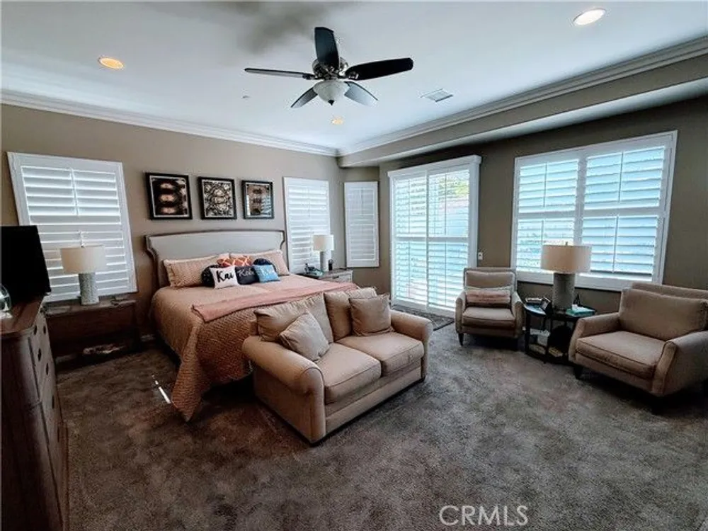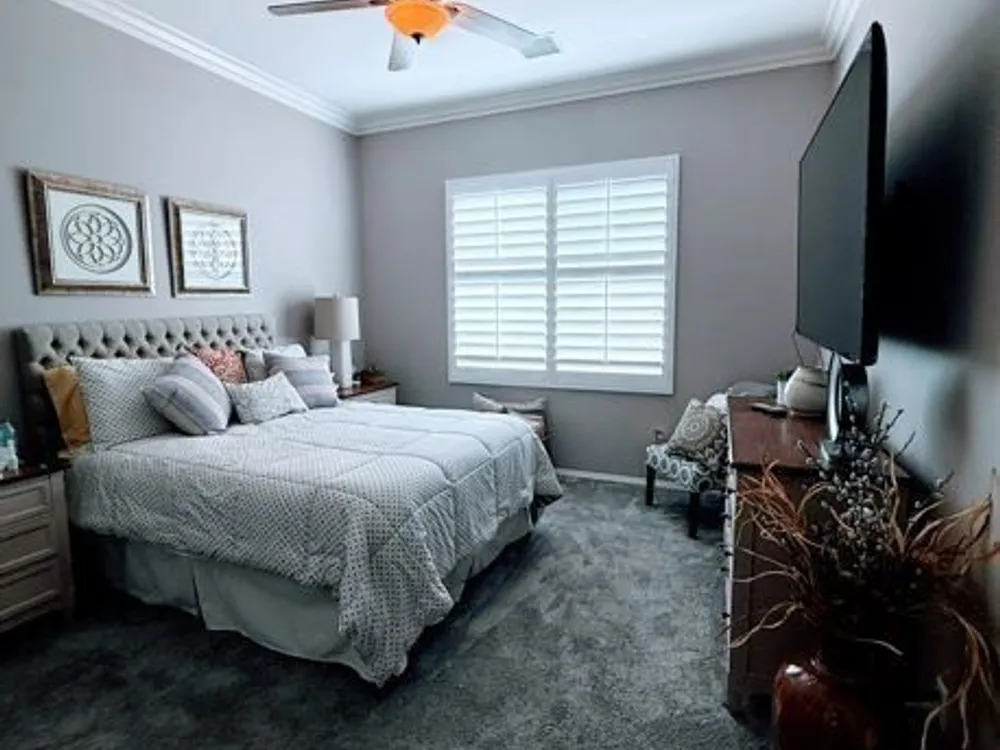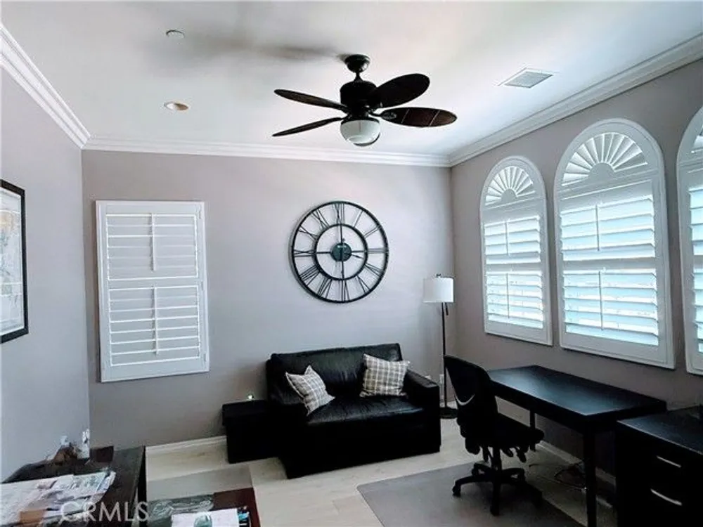 - Ceiling Fan(s), Crown Molding, High Ceilings, Living Room Deck Attached, Open Floorplan, Pantry, Quartz Countertops, All Bedrooms on Lower Level, Den, Formal Entry, Kitchen, Laundry Facility, Living Room, Bedroom on Main Level, Main Level Primary, Primary Suite, Home Office, Walk-In Closet(s), Butler Pantry