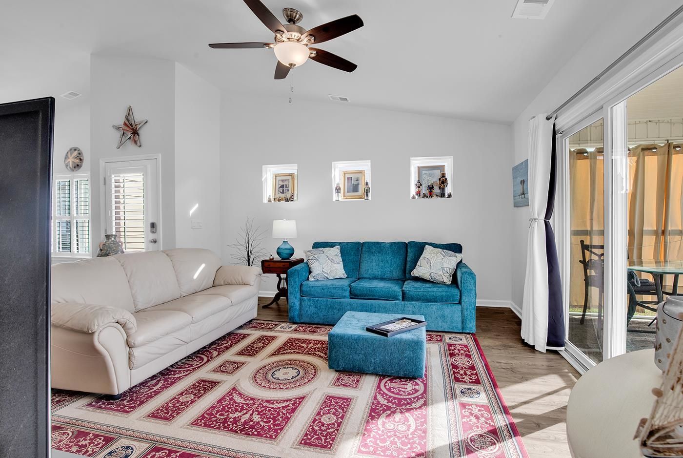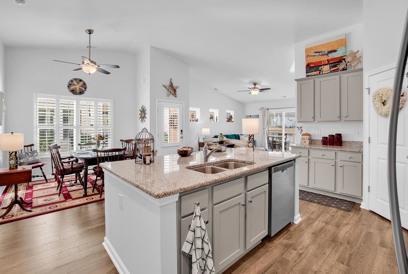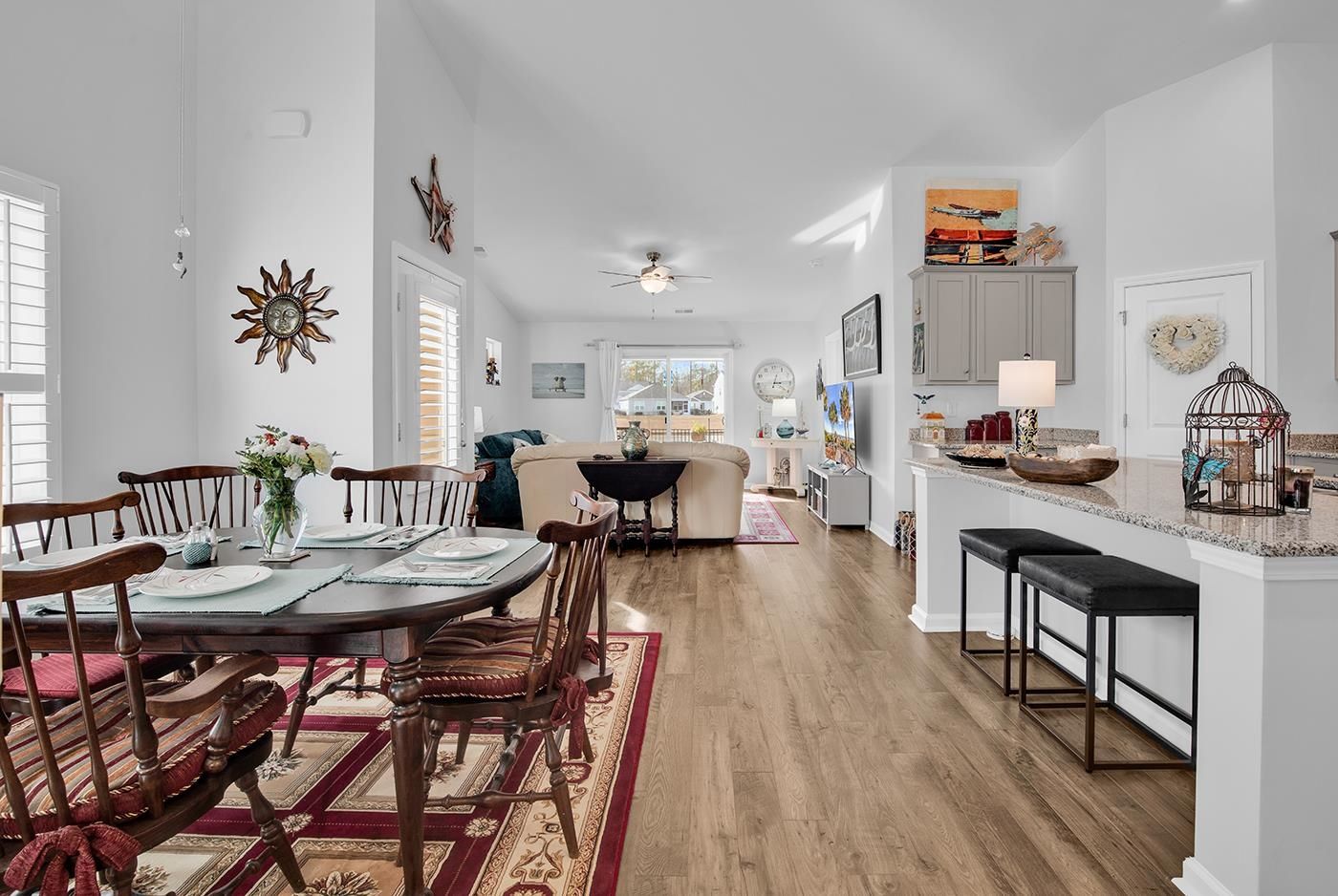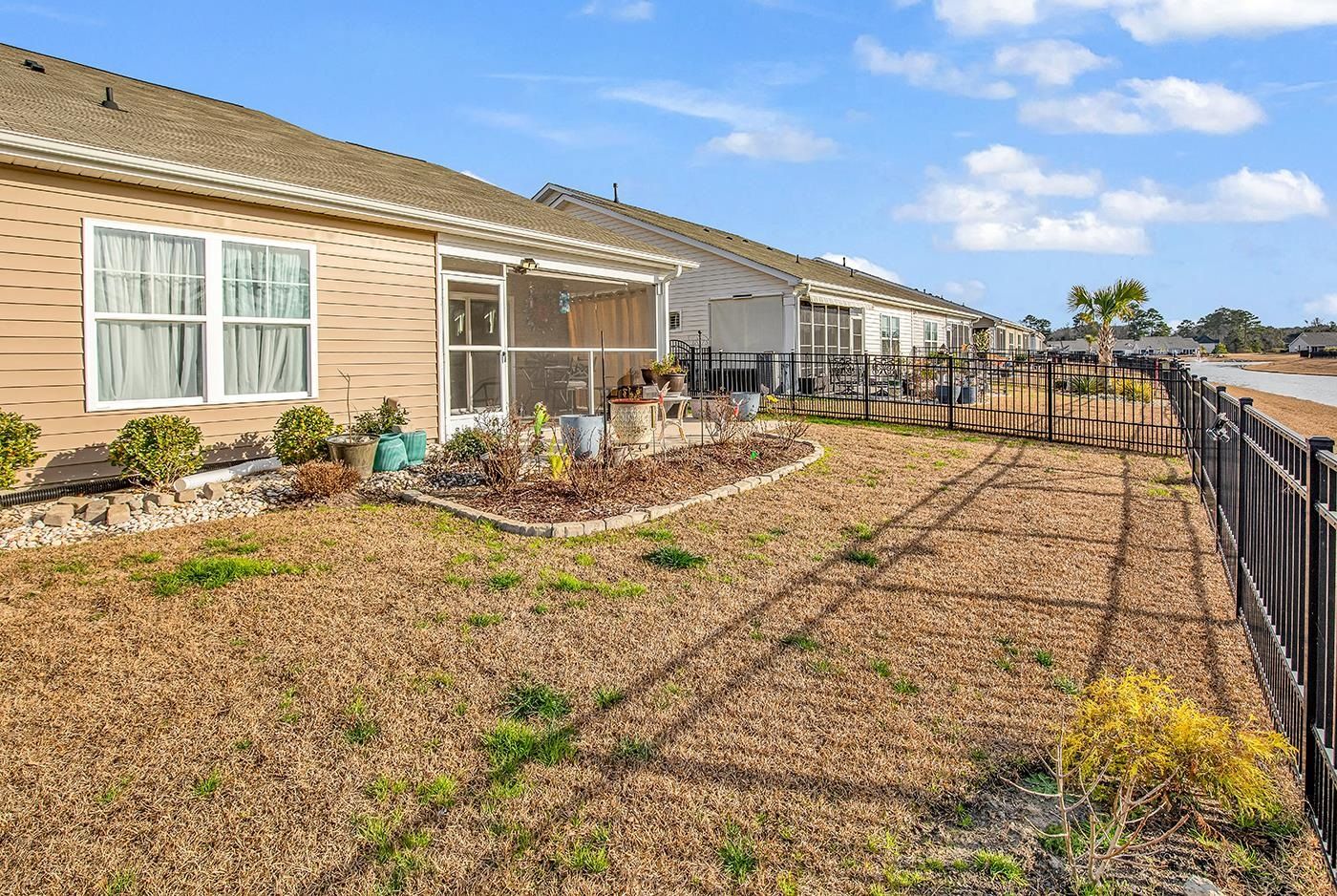 Welcome to this exquisite patio home nestled in the sought after community of The Townes at Heather Glen in Little River. With three spacious bedrooms and two beautifully appointed bathrooms, this residence boasts an inviting open living area that flows seamlessly into a screened Carolina room, perfect for enjoying serene views of the pond front lot. The allure of granite countertops elevates the modern kitchen, complemented by luxurious vinyl plank flooring throughout. A fenced backyard with meticulously crafted stoned flowerbeds provides a private oasis, while a patio invites you to bask in the sun. The primary bedroom features a generous walk-in closet. The plantation shutters add both style and function. Residents can indulge in resort-style amenities, including a sparkling pool, a well-equipped clubhouse, and a gym for active lifestyles. Enjoy the convenience of lawn maintenance and irrigation, allowing you to relish the lush surroundings. Just minutes away from the sandy shores of Cherry Grove Beach and a plethora of dining and golfing options, this property promises a vibrant coastal lifestyle filled with leisure and recreation