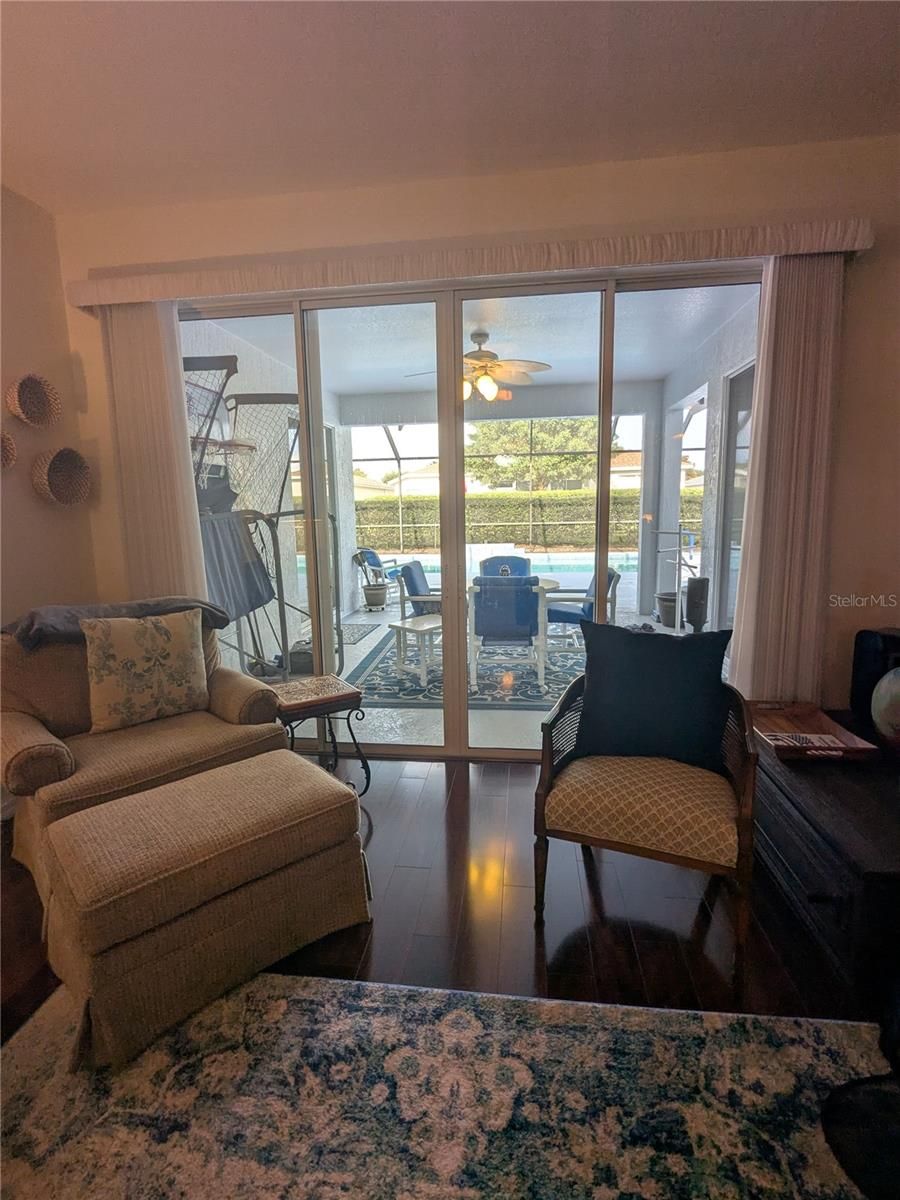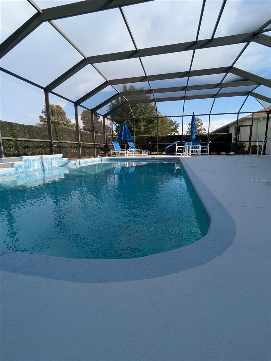 Welcome to Your Florida Oasis. Located in the highly desirable 55+ gated community of SummerGlen, this expanded Bal-Harbor model exudes elegance, comfort, and thoughtful design throughout. From the moment you arrive, the Custom driveway design and sidewalk paired with lush, meticulously maintained landscaping create an inviting first impression. Step inside to discover 9'4" ceilings, rich laminate wood flooring, and an open, light-filled floorplan designed for effortless living and entertaining. The chef’s kitchen is the heart of the home—offering dark wood cabinetry, quartz countertops, miles of counter space, and a massive center island perfect for meal prep, entertaining, or baking. A formal dining area adds an elegant touch for hosting gatherings. Enjoy the serenity of a spacious primary suite featuring a split walk-in closet and a spa-inspired ensuite bathroom with a walk-in shower. Two additional bedrooms plus a den/flex space provide plenty of room for guests or hobbies. Closets are thoughtfully placed throughout the home for abundant storage. Step outside and relax in your private 15x30 nearly maintenance-free, electric-heated pool with screen enclosure and covered lanai—a perfect space for both quiet mornings and lively gatherings. Additional features include: Oversized 2-car garage Inside laundry room Multiple walk-in closets Tastefully appointed finishes throughout SummerGlen offers resort-style living with access to an 18-hole championship golf course, clubhouse, community pool, fitness center, dog park, pickleball, tennis, basketball, and more. Enjoy peaceful walks, vibrant social life, and the tranquility of a beautifully maintained neighborhood. All just minutes from shopping, dining, medical, and highway access. This home truly reflects pride of ownership and offers the perfect blend of luxury, functionality, and relaxation. Don’t miss your chance to call this exceptional property home!