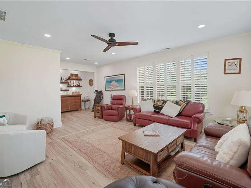 Absolutely STUNNING, complete top to bottom remodel with expansion of this Soleil cottage on a massive, private lot - very hard to find a lot like this in Soleil. Owners spared no expense making this home a true show-stopper. From the moment you open the front door, the floor to ceiling windows in the sunroom will render you speechless, it's just gorgeous!! Kitchen features NEW real wood cabinets, NEW Taj Mahal Quartzite counters with a chiseled edge and matte leather finish, high-end stainless steel Bosch appliances including BRAND new induction stove and convection microwave, stainless steel vent hood, stone island and backsplash, pull-out drawers, pot-filler, oversized stainless steel sink, instant hot water tap at the sink, plus huge walk-in pantry with cabinets for extra storage. Open concept so the kitchen flows seamlessly into the dining area and living room. Living room features a cedar mantle and fireplace. Jaw-dropping 22x14ft sunroom addition features floor-to-ceiling windows, cedar beams, shiplap walls and tongue and groove ceiling. Sunroom overlooks 50-ft tree buffer in the back and opens to side courtyard patio and massive side yard - property extends all the way to the pink stake. Gorgeous LVP floors throughout home, all new fixtures and ceiling fans plus plantation shutters. Master suite with trey ceiling, walk in closet and totally renovated bathroom including walk-in shower. Bedroom/office area off living room is perfect for the grandkids. Front 2nd bedroom (with closet) was expanded and made into an incredible 16x28ft office, den, and bar area. The sellers love having this extra living and work space. Epoxy floor and built-in cabinets in the garage - MOST cabinets will remain but a few lower unattached ones will go. Lastly, the side yard and greenspace adds privacy no other home in Soleil has. Enjoy privacy all year round with no neighbor 2 sides. This home is unlike anything else you will find "behind the gate" in Soleil, and is perfect for those who aren't ready to downsize their living space. Soleil offers a "lock and leave" lifestyle with HOA covering 24 hour gate, lawn maintenance, and amenities galore including 30,000sf clubhouse, indoor and outdoor pools, gardens, tennis / pickle ball, commercial catering kitchen, over 50 active clubs, fitness center, walking trails, plus 18 hole golf is also available. Show today!!